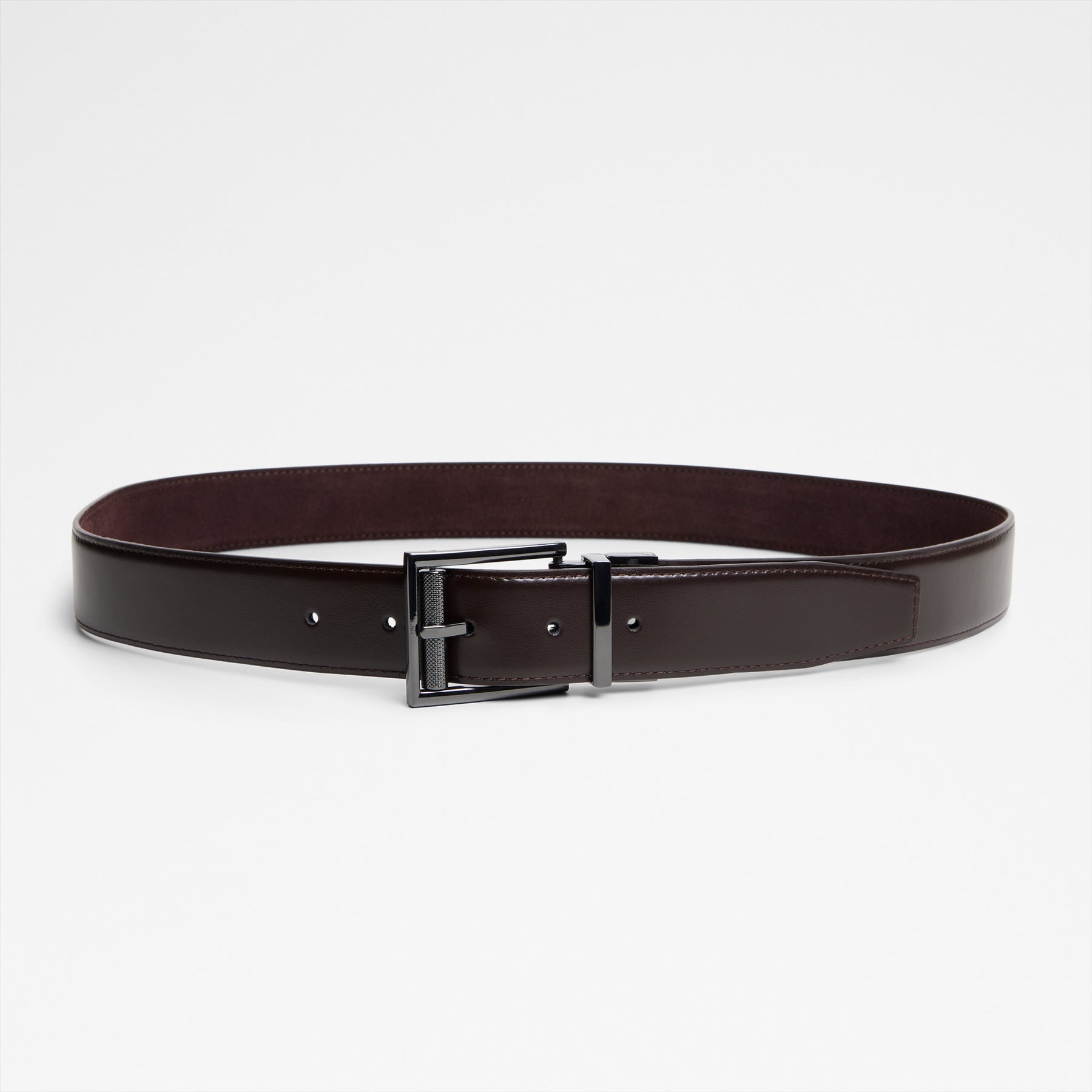 Cinto BENJJAMIN para homem, em pele, em castanho e com fecho de fivela metálica ajustável em prateado. Reversível: com diferentes texturas.
