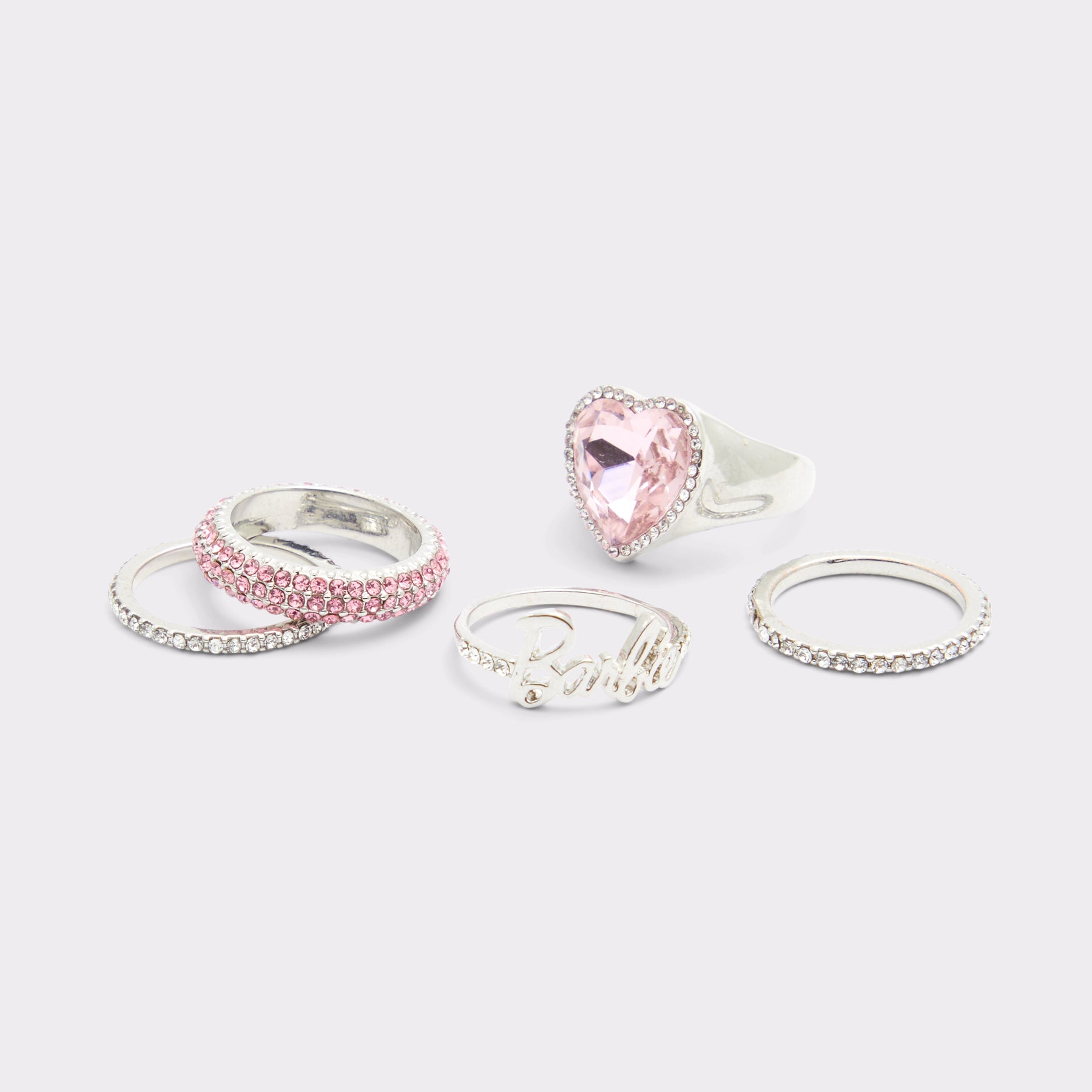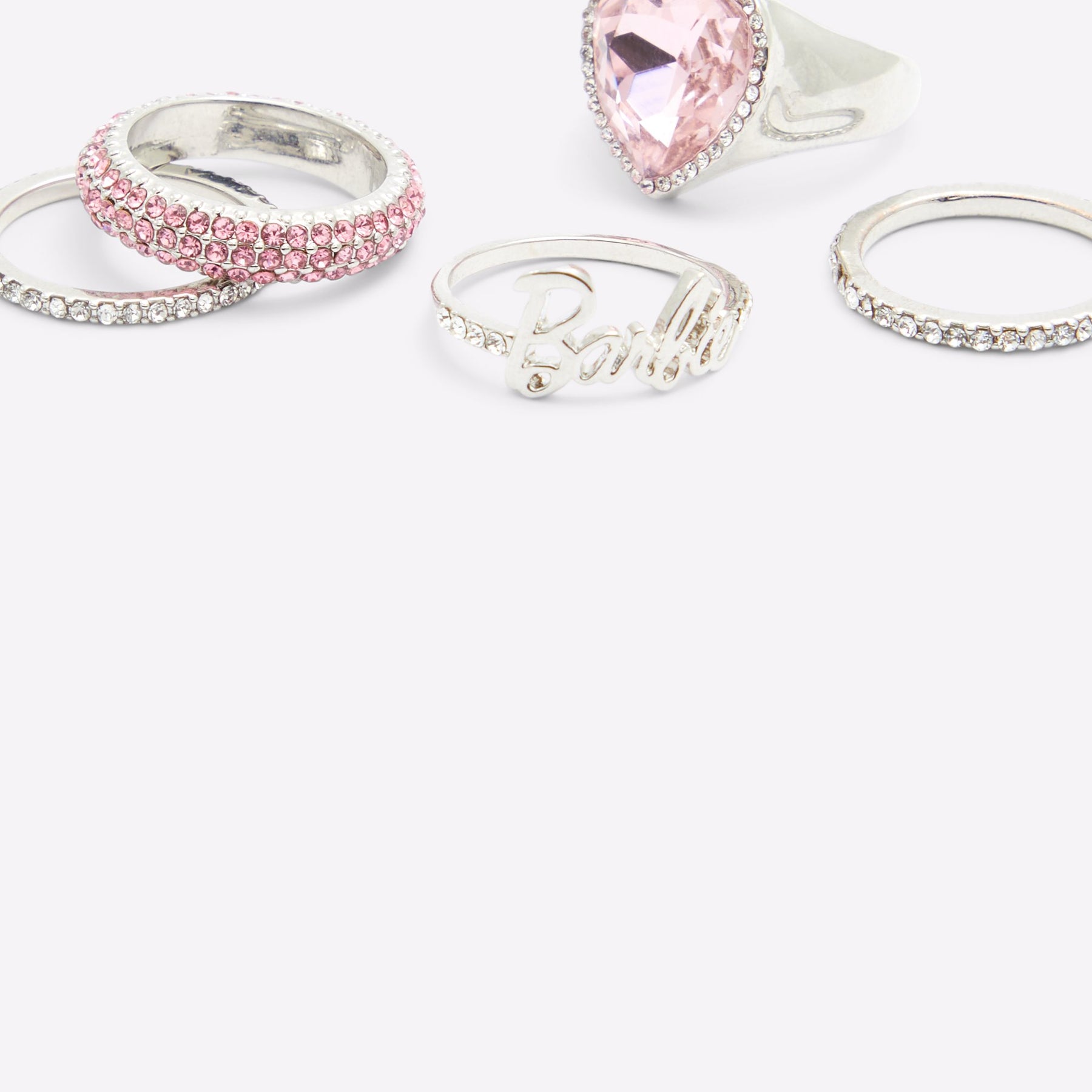 Anéis BARBIERINGS para mulher, em rosa claro, com pedras brilhantes. Coleção exclusiva Barbie x ALDO.