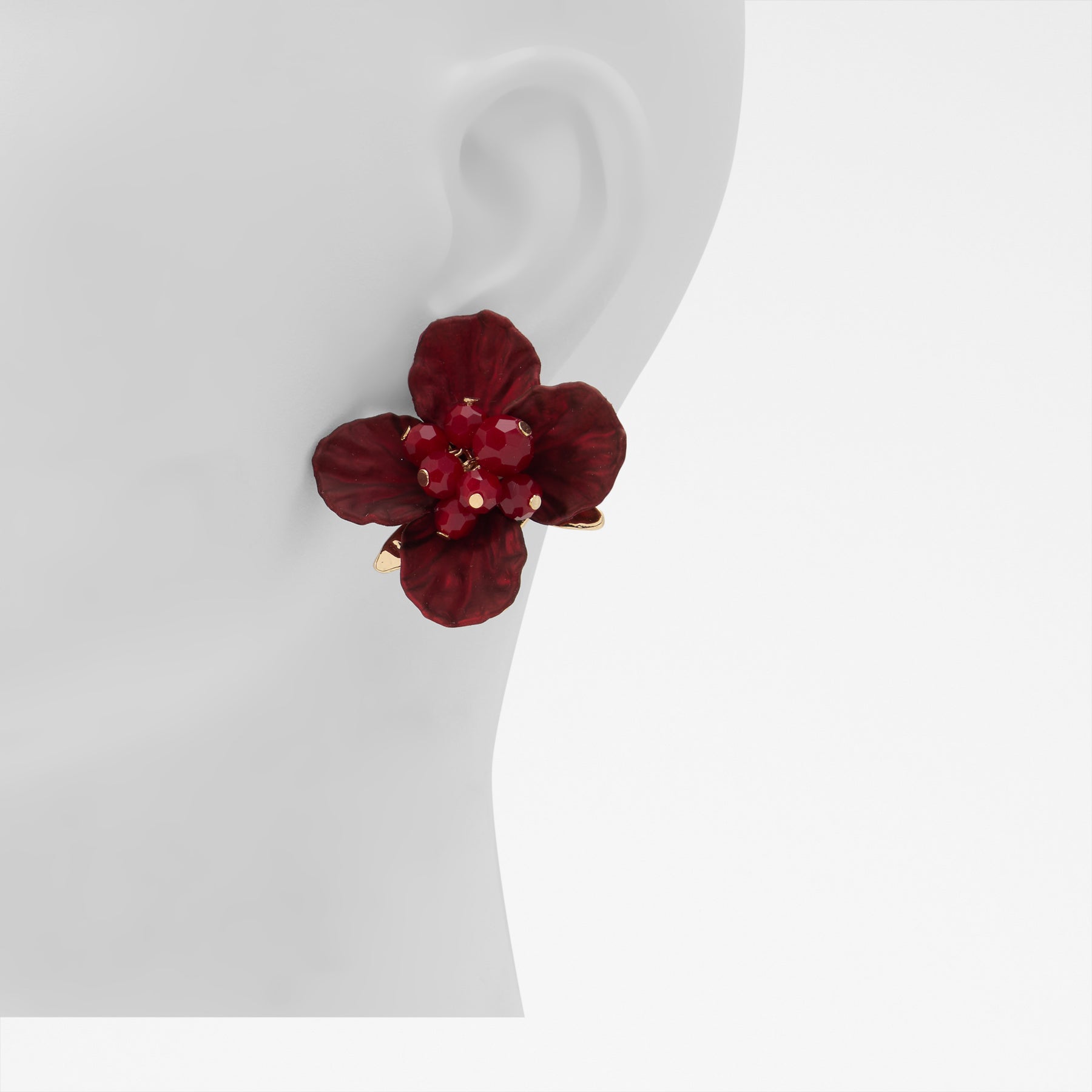 Brincos longos BAMEY para mulher, em bordô, em forma de flor.