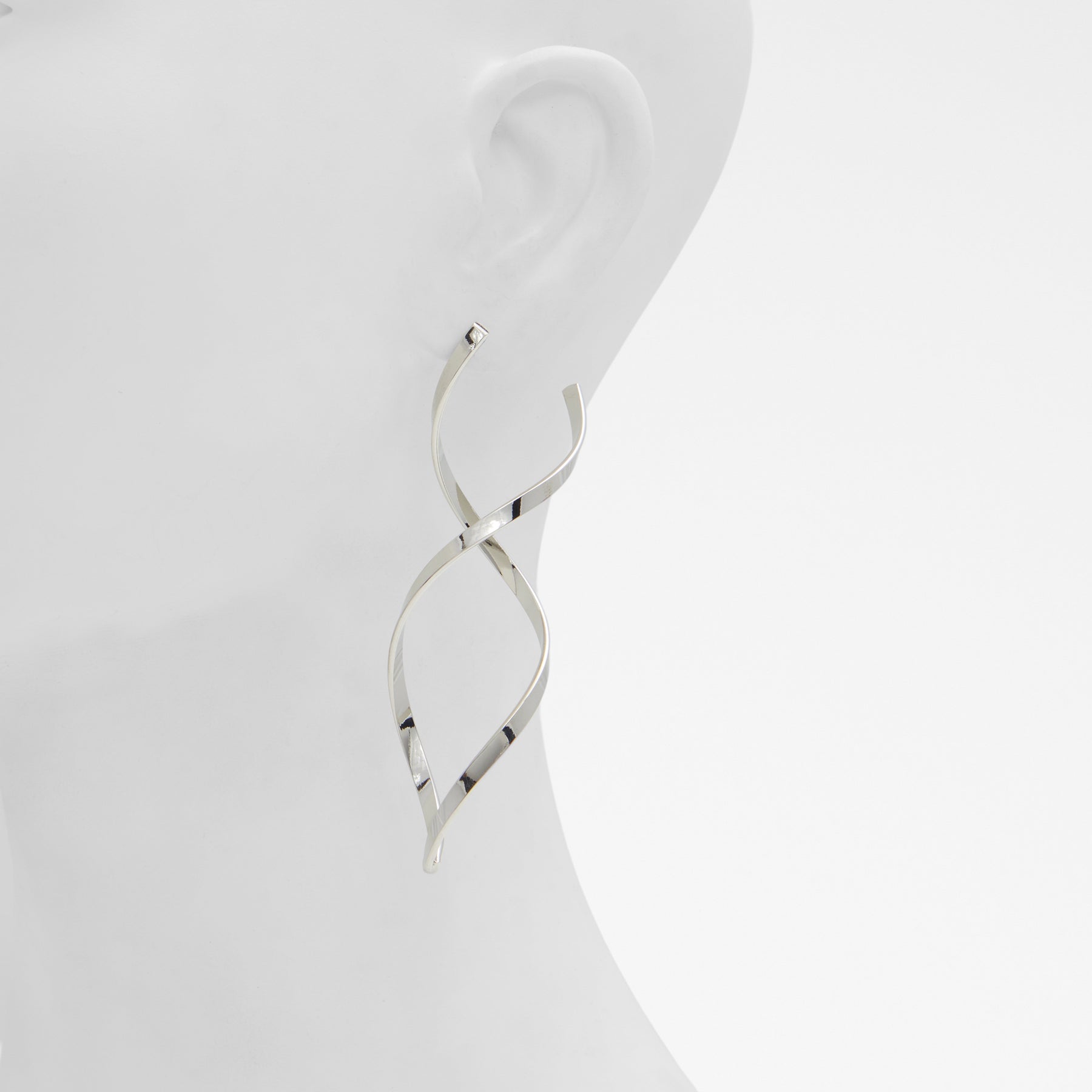 Brincos longos ANNAH para mulher, em prateado, com formato espiral.