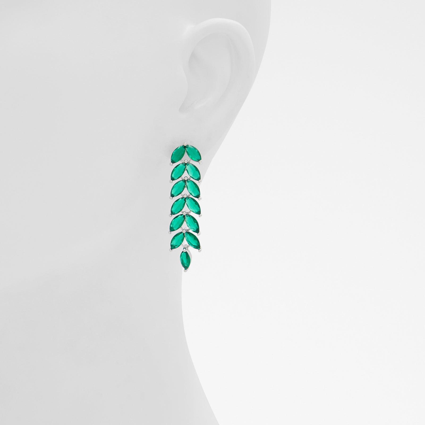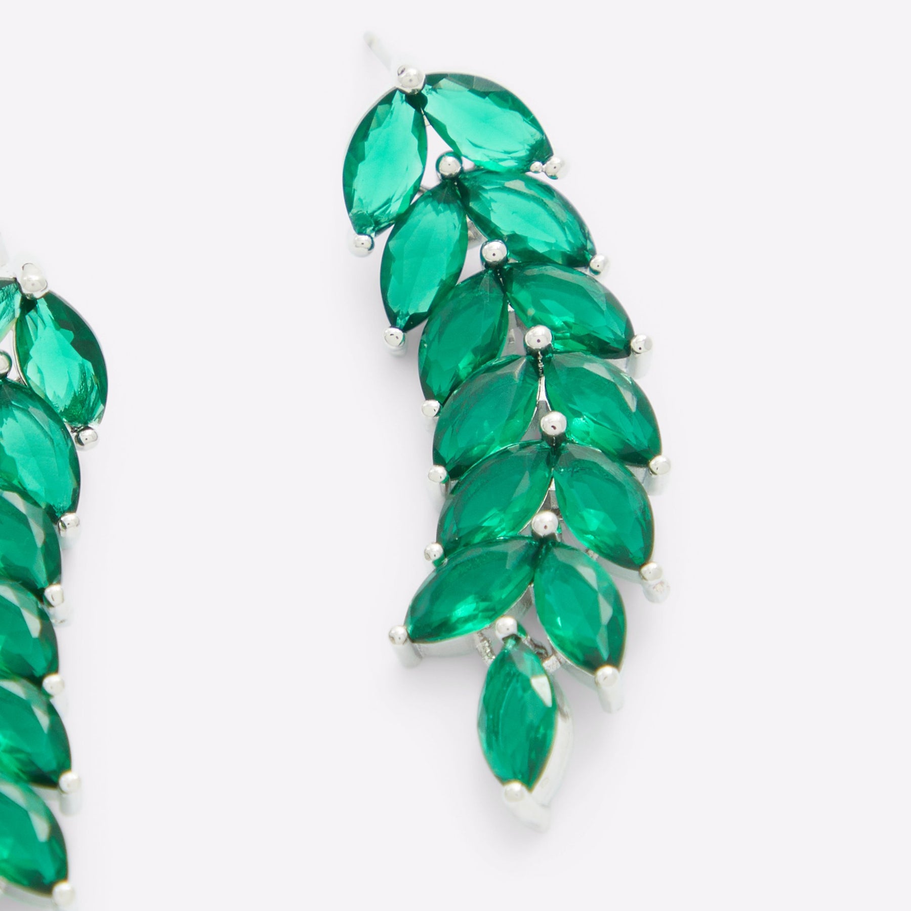 Brincos longos ELITSAII para mulher, em verde, com pedras brilhantes em formato de lágrima.