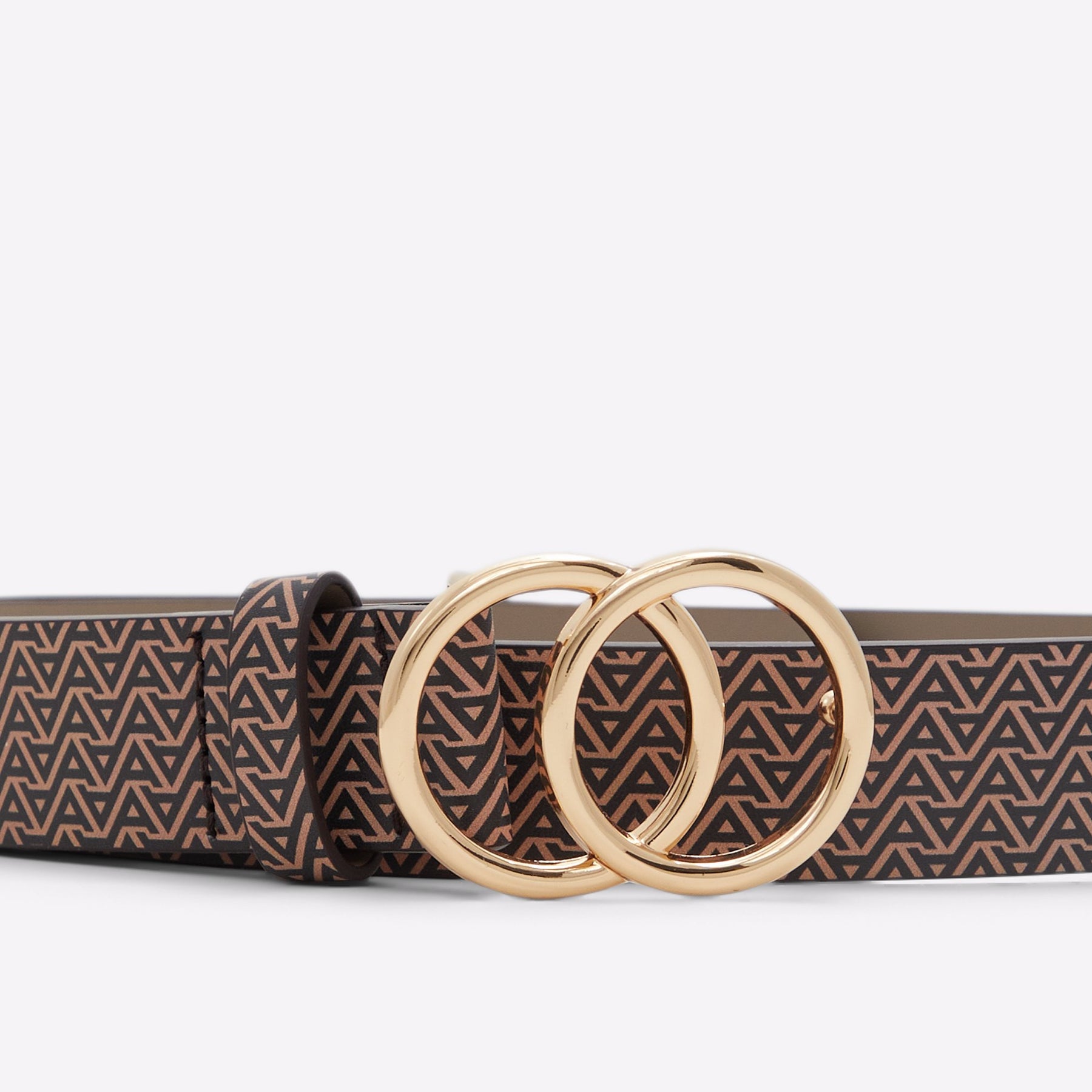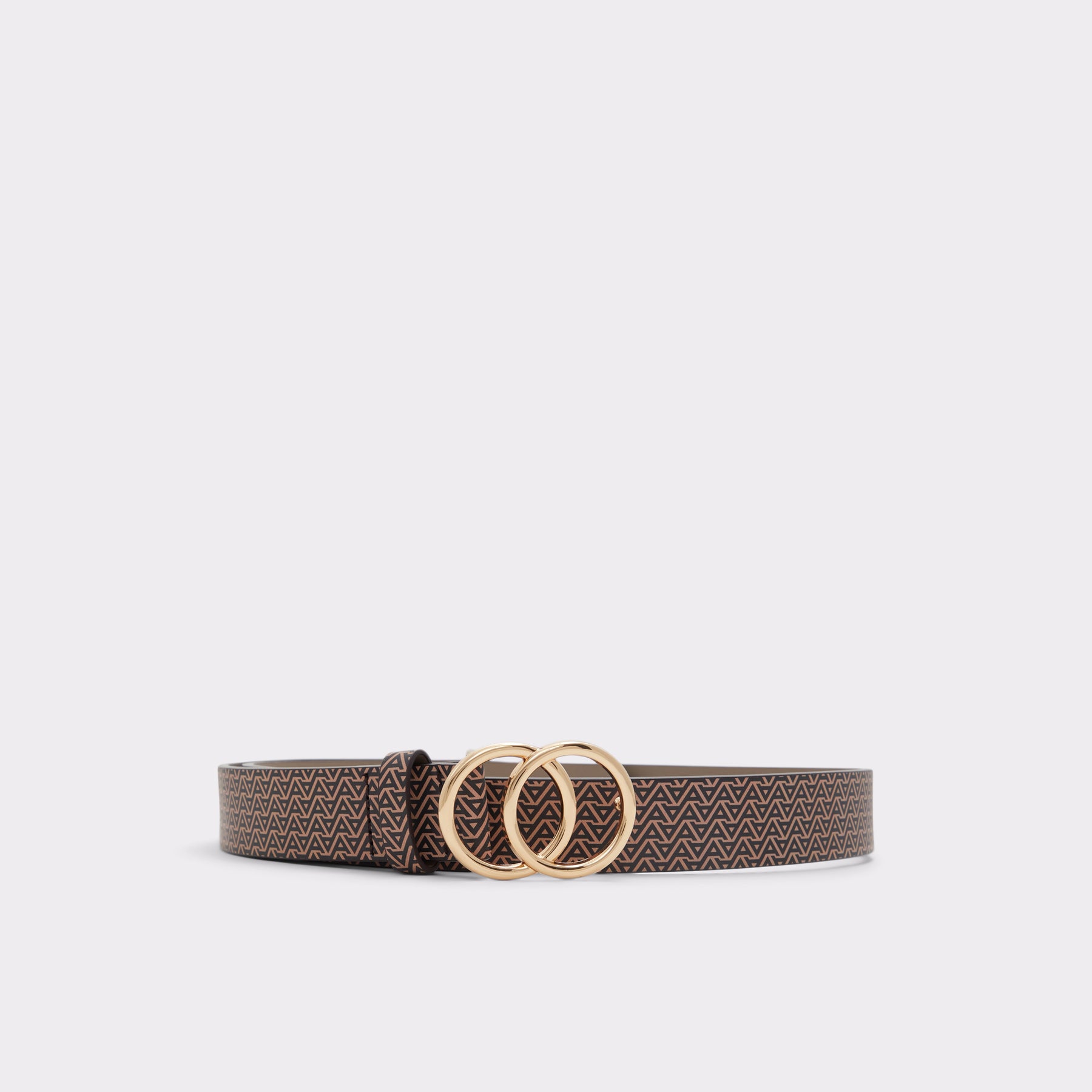 Cinto VALELADAR para mulher, em castanho e com fecho de fivela metálica ajustável. Monograma ALDO estampado.