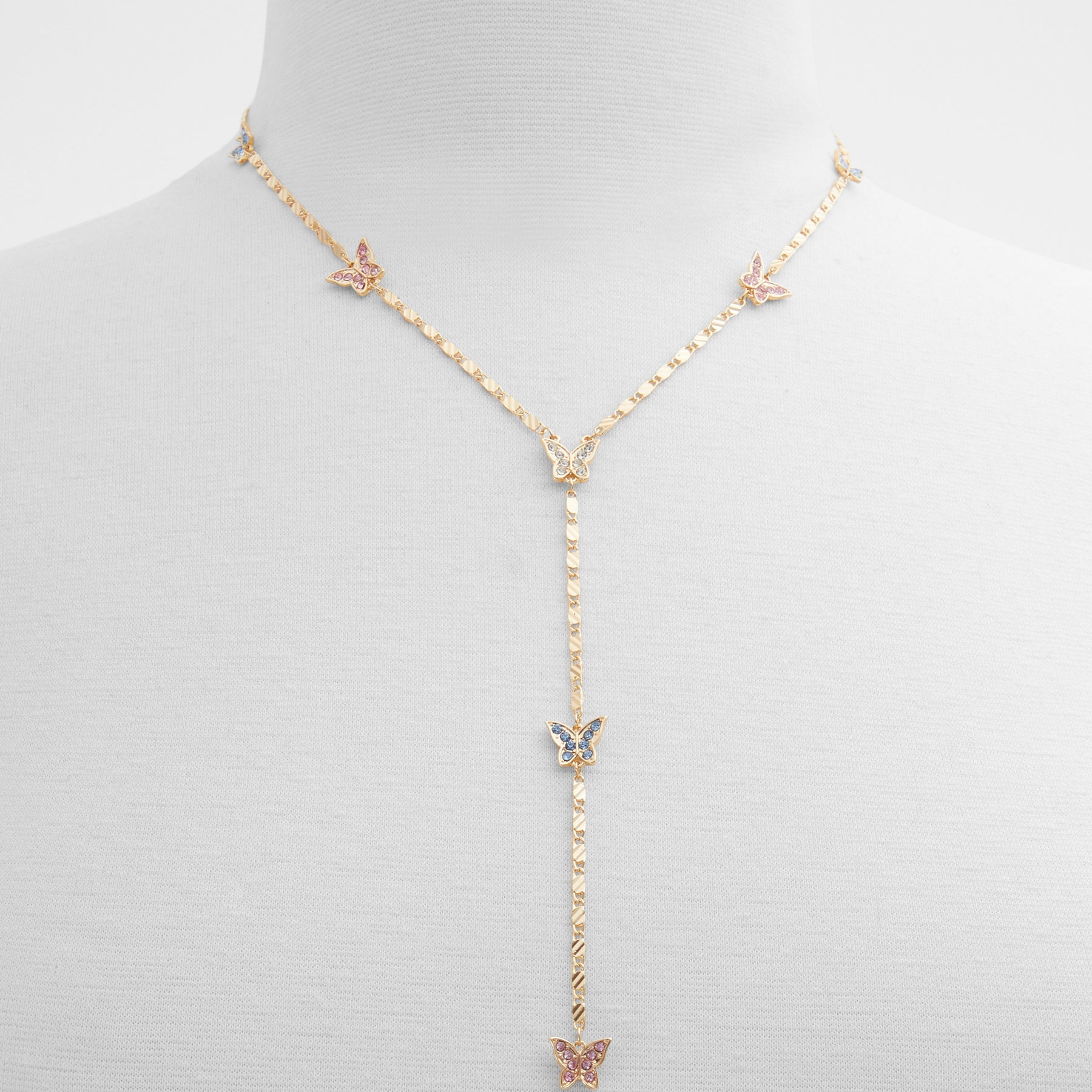 Colar TAHNEERA para mulher, em dourado, com pedras brilhantes em formato de borboletas.