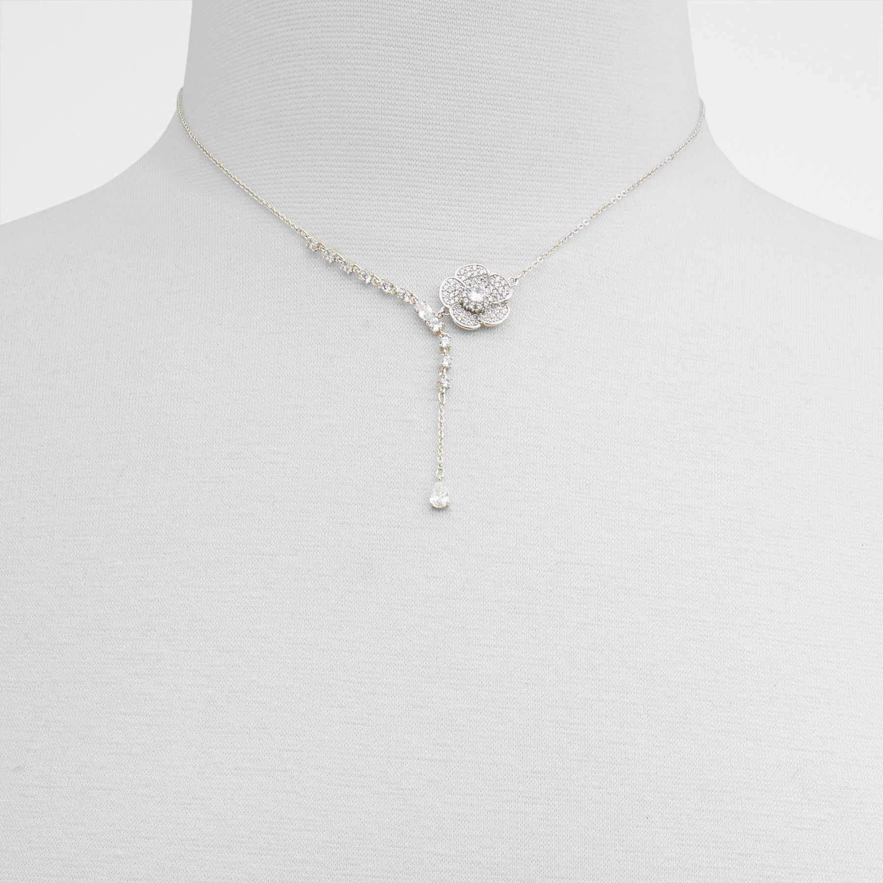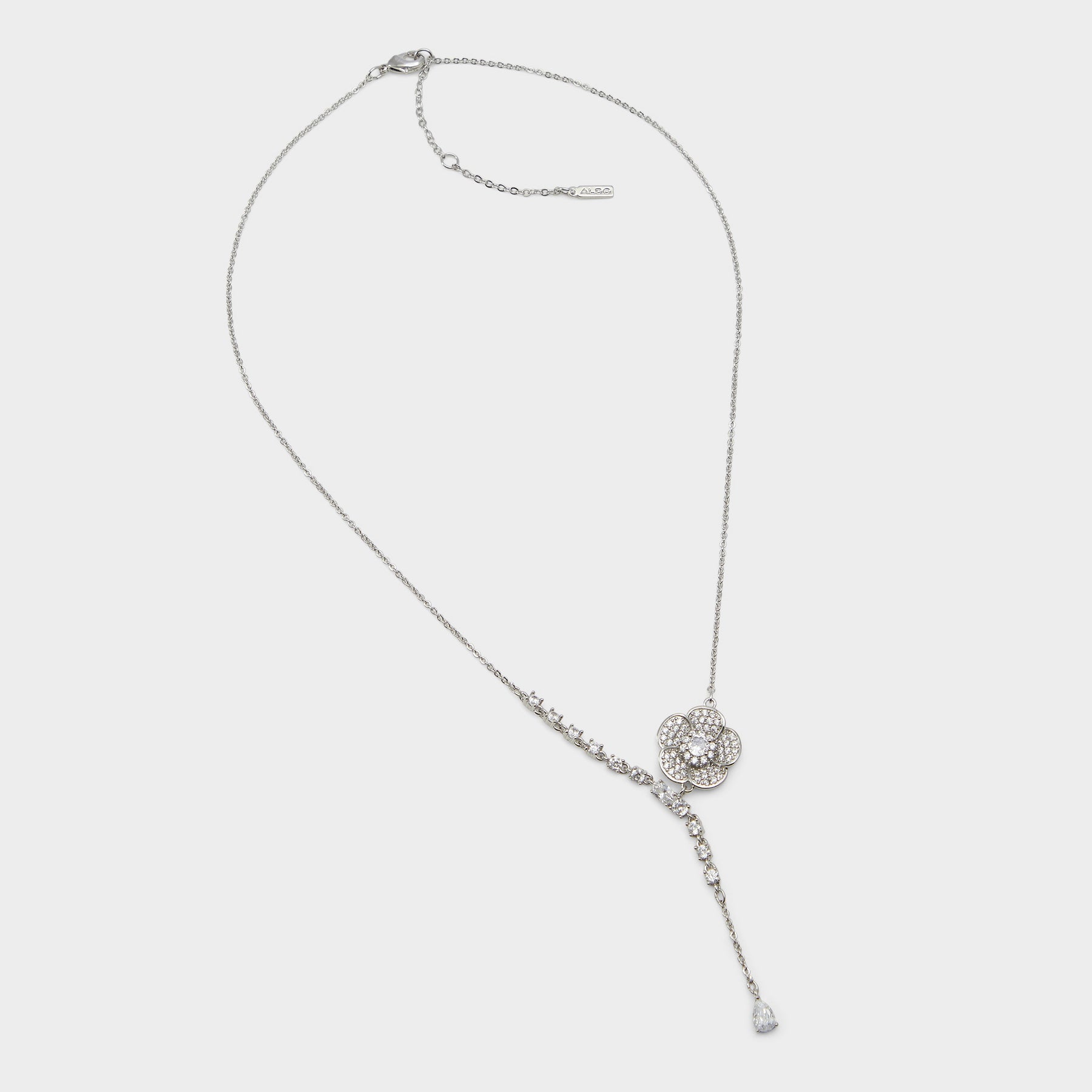 Colar FLOWERTEAR para mulher, em prateado, com flor e pendente brilhantes.