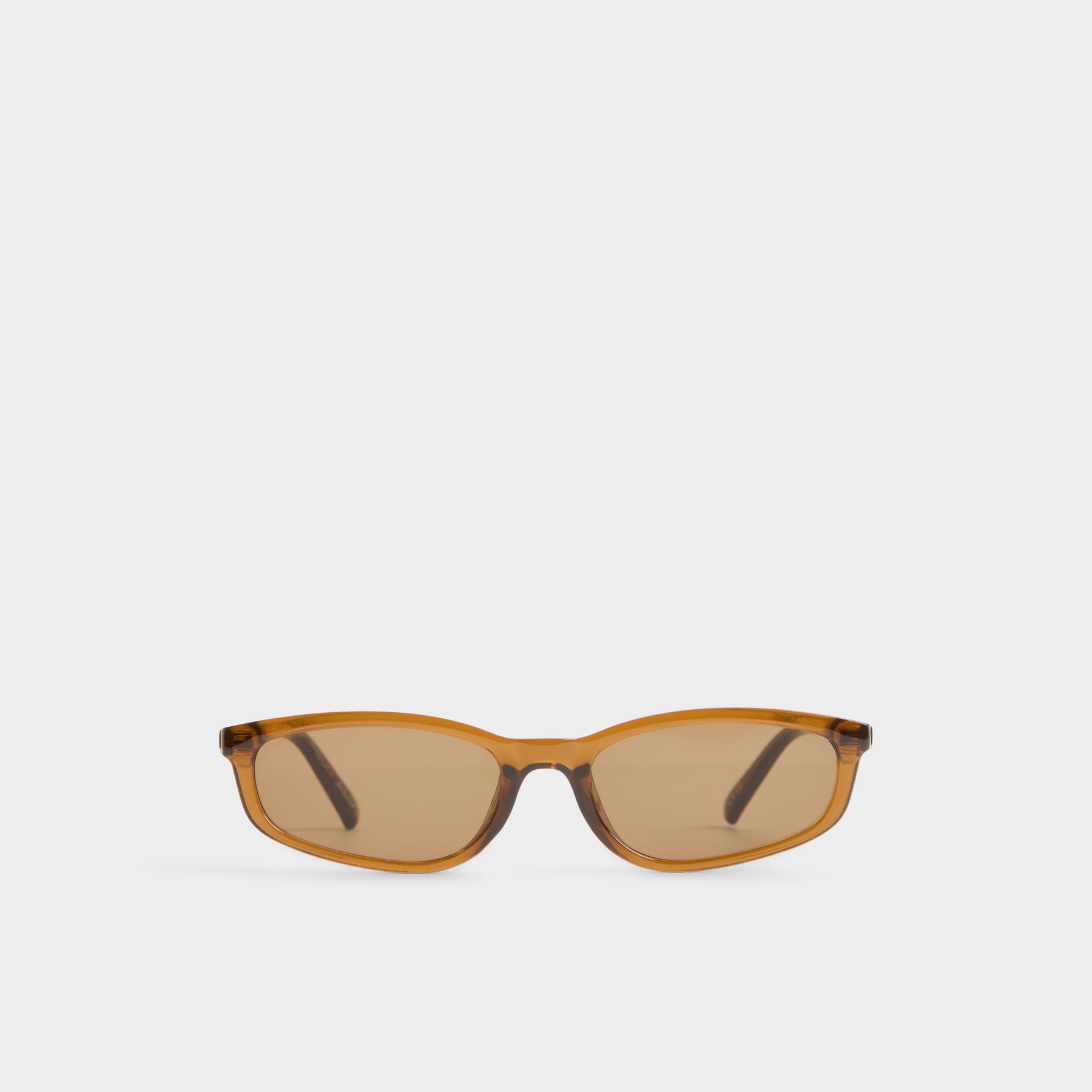 Óculos de sol FREYYAA para mulher, com armação em massa em cognac e lentes coloridas.