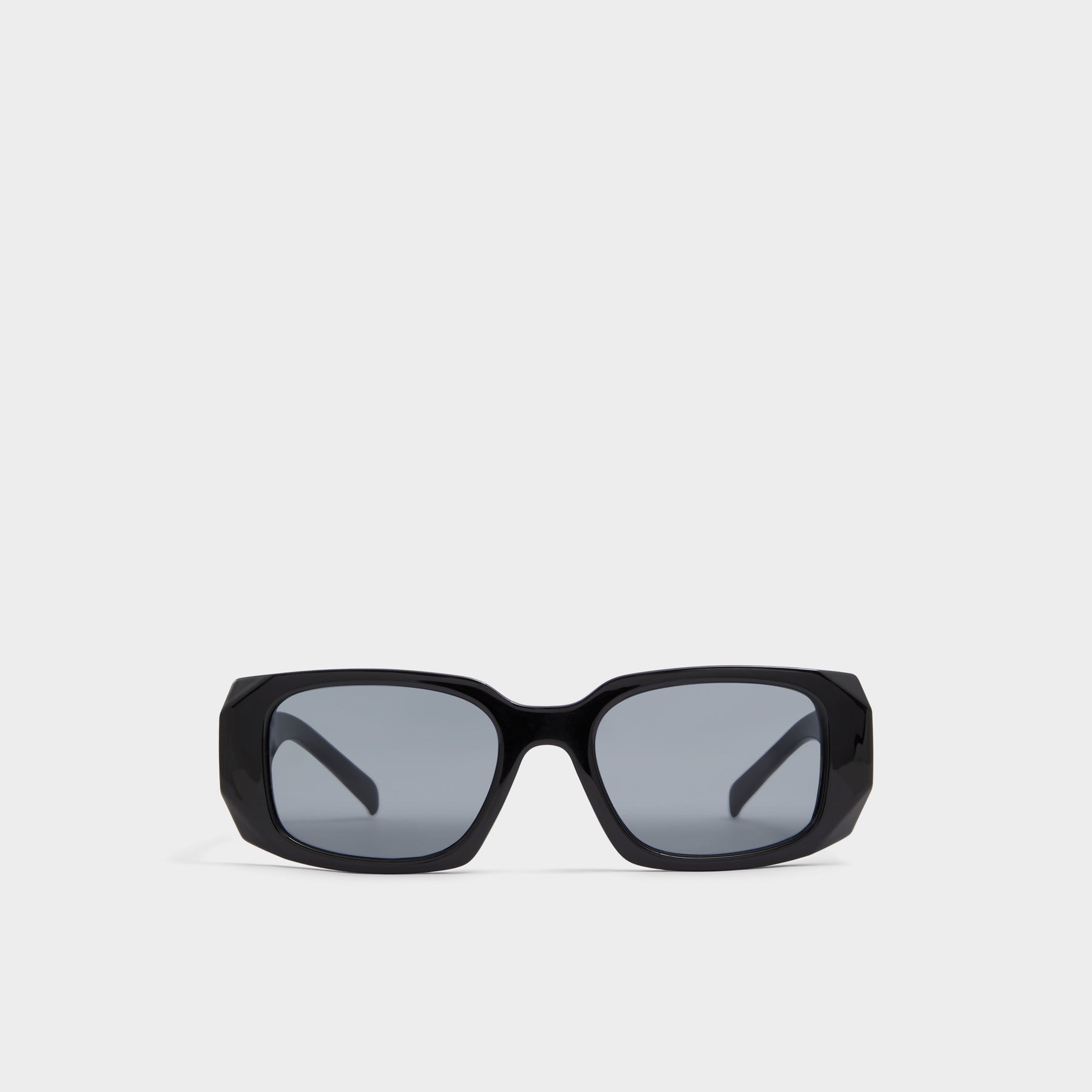 Óculos de sol MANENTARIEL para mulher, com armação em massa em preto e lentes escurecidas. Com haste metálica em dourado.