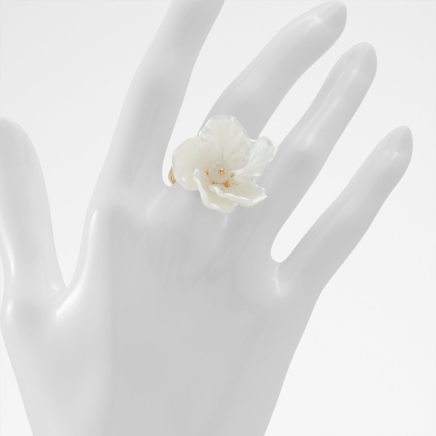 Anel FOIWIA para mulher, em branco, em forma de flor.