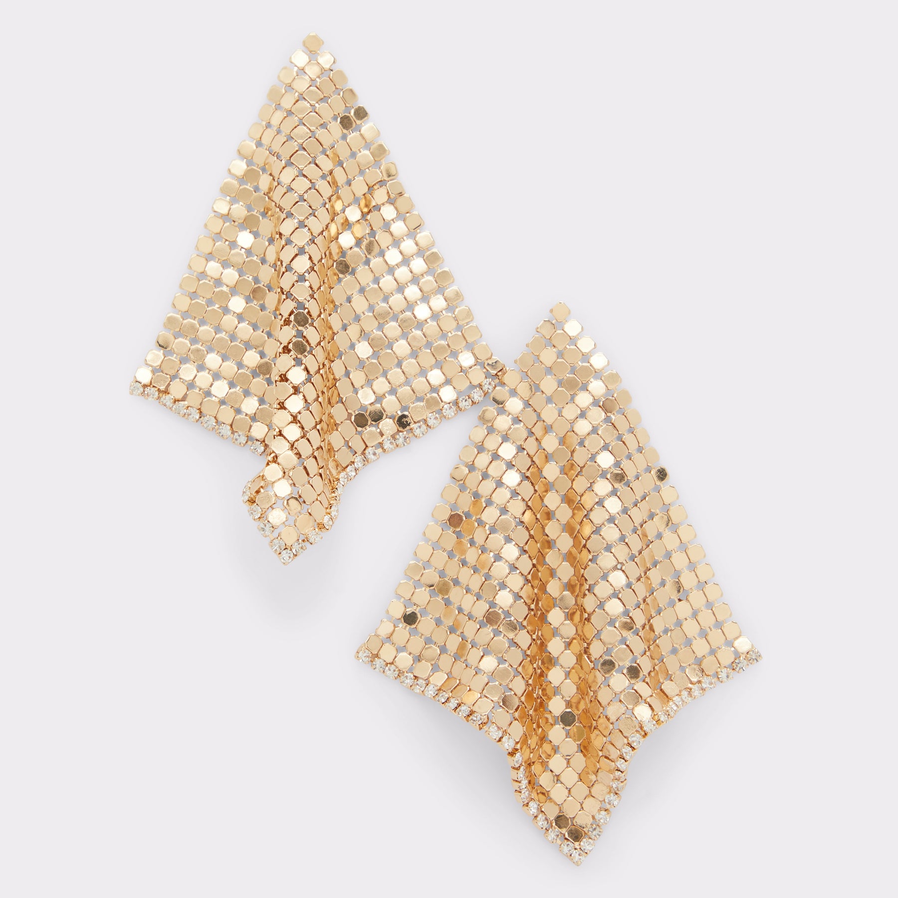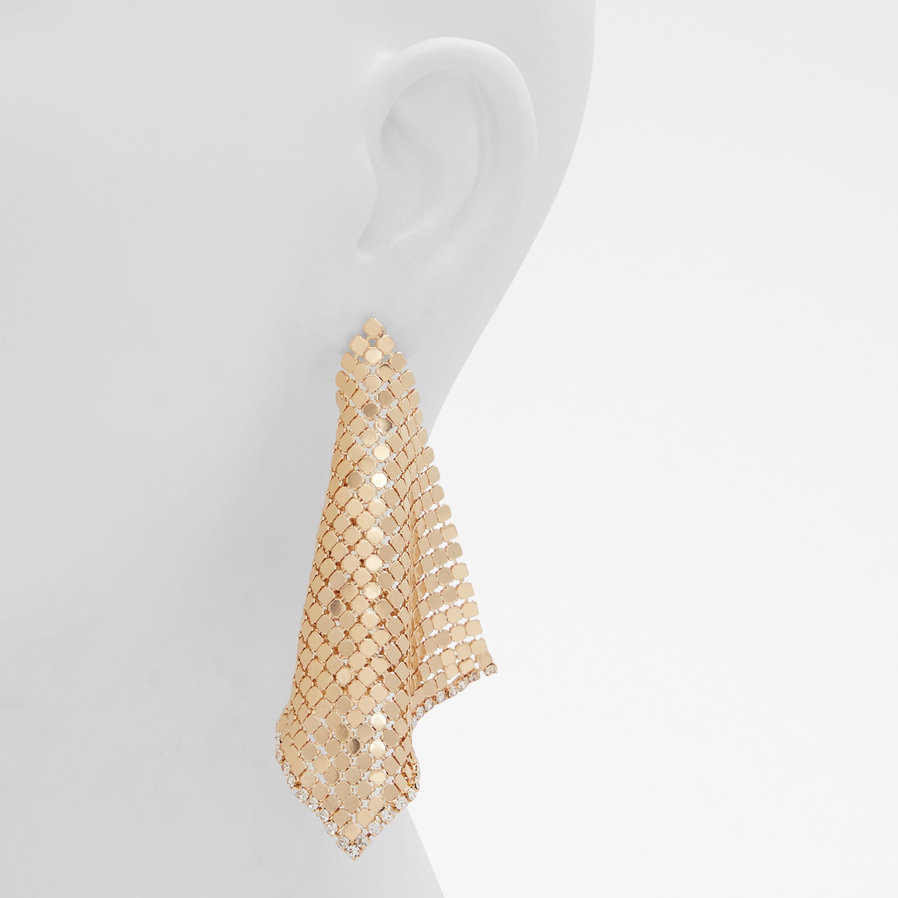 Brincos longos DOREDE para mulher, em dourado, com pedras brilhantes.