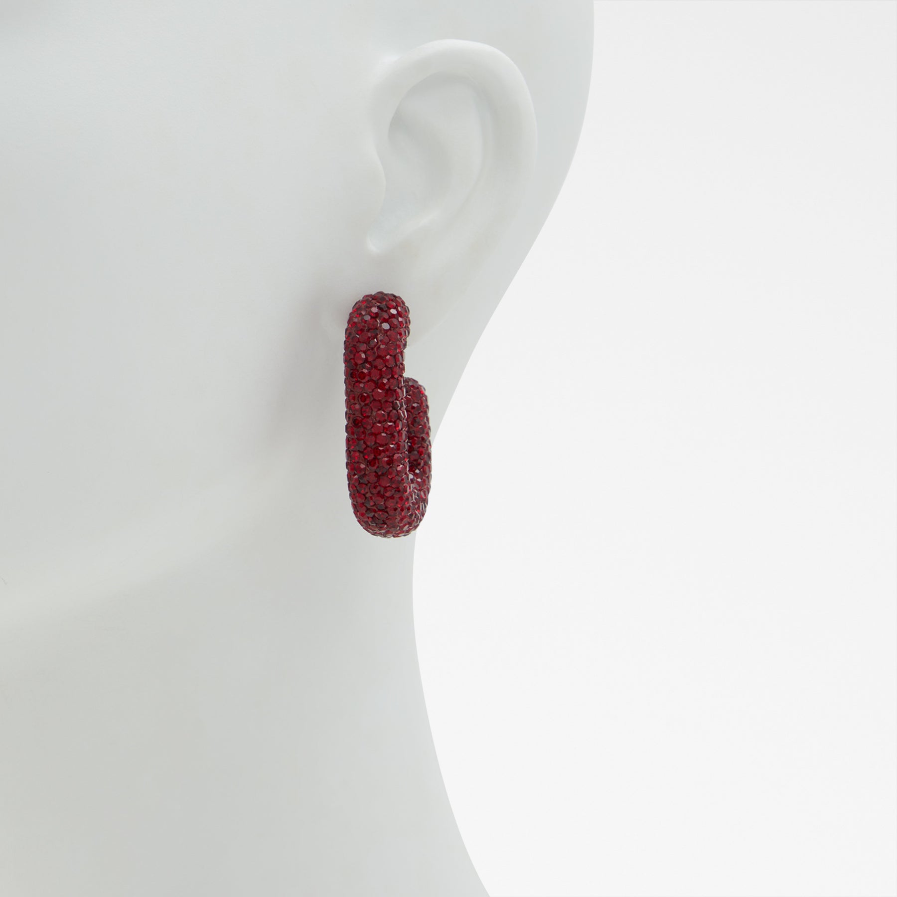 Brincos longos XANDRIA para mulher, em vermelho, com pedras brilhantes.