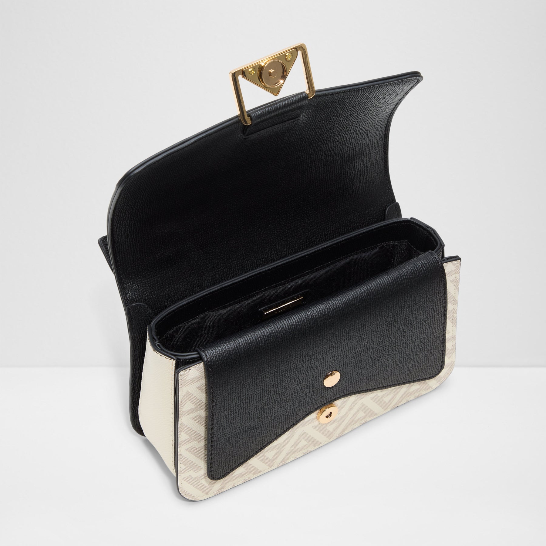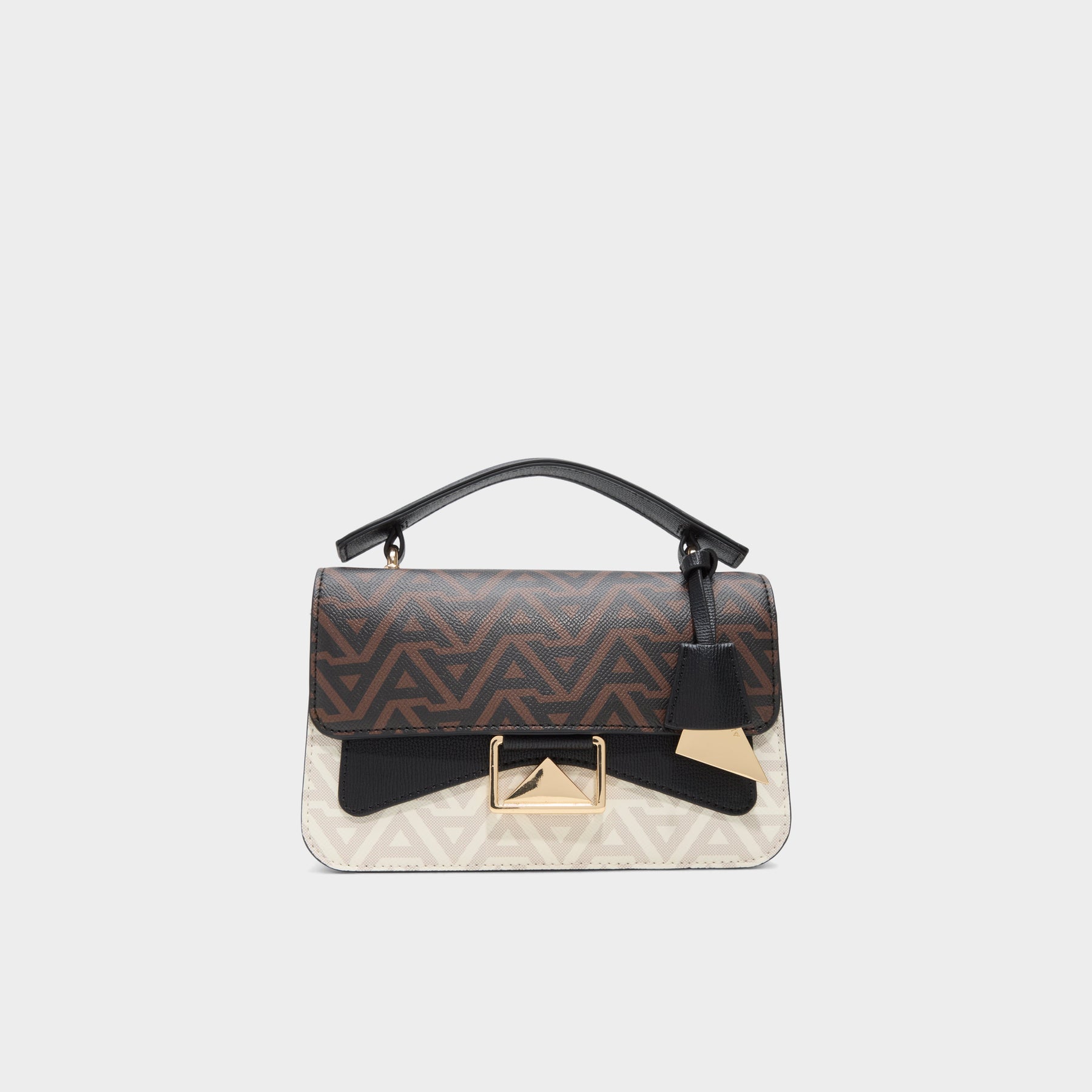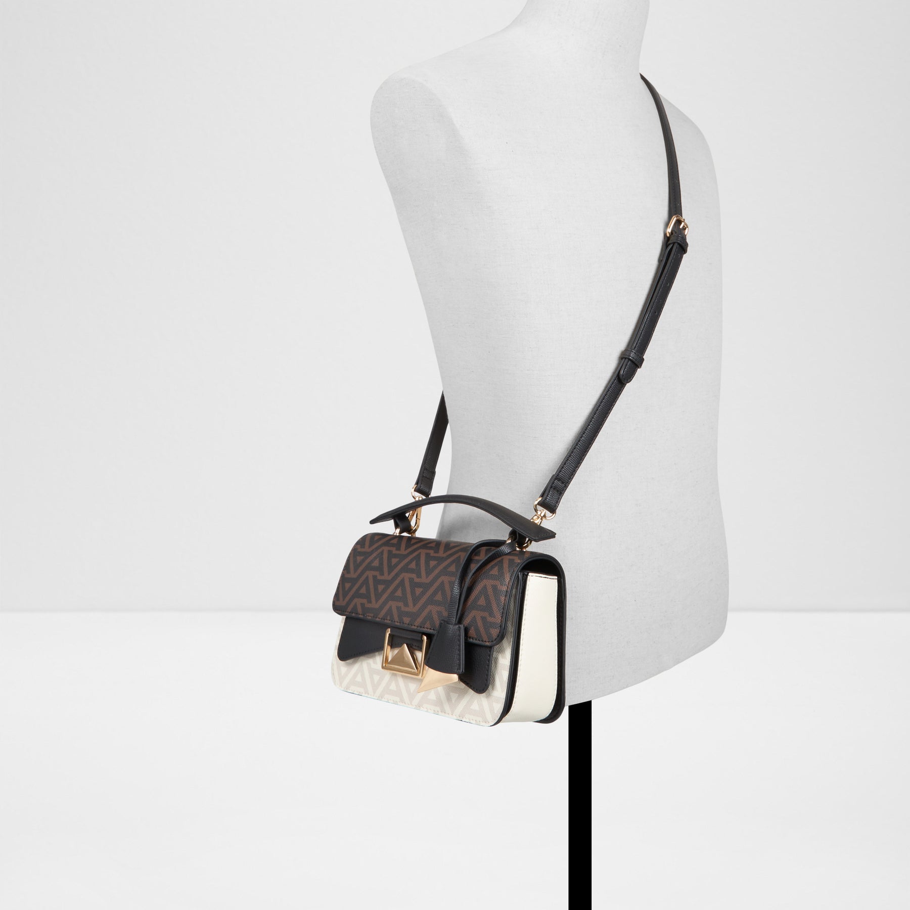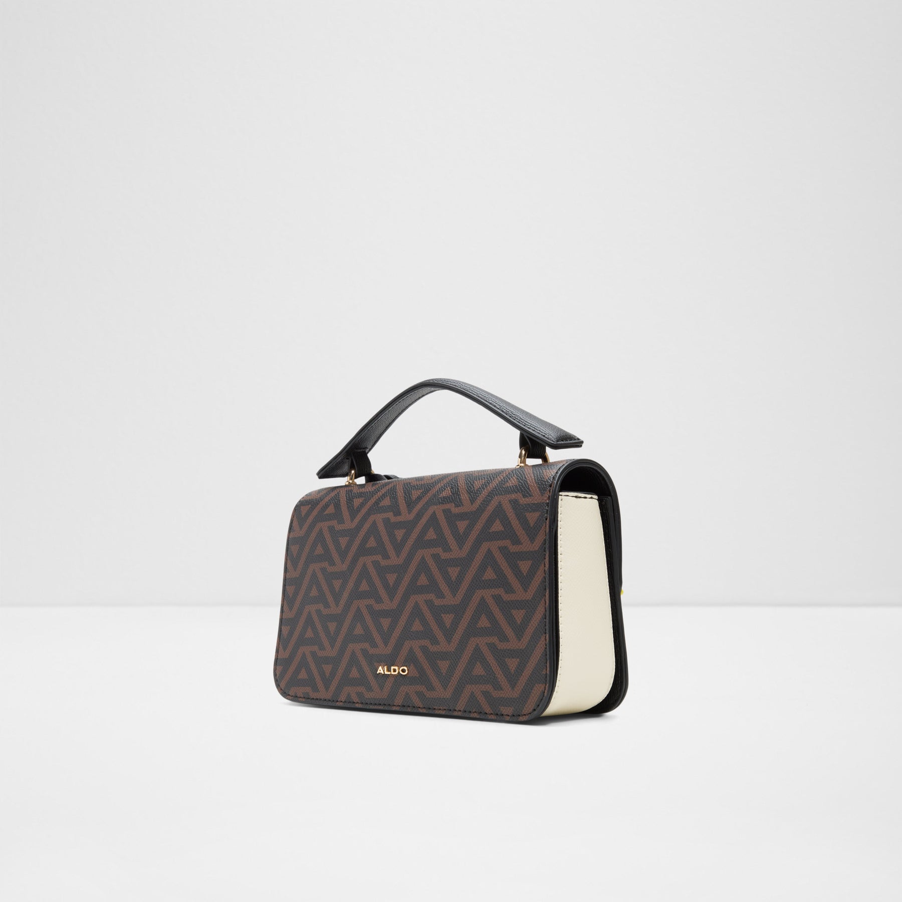 Mala de mão HADDIE para mulher, em castanho, com fecho magnético, alça curta e um acessório removível. Monograma ALDO estampado. Com uma alça extra para uso de tiracolo.