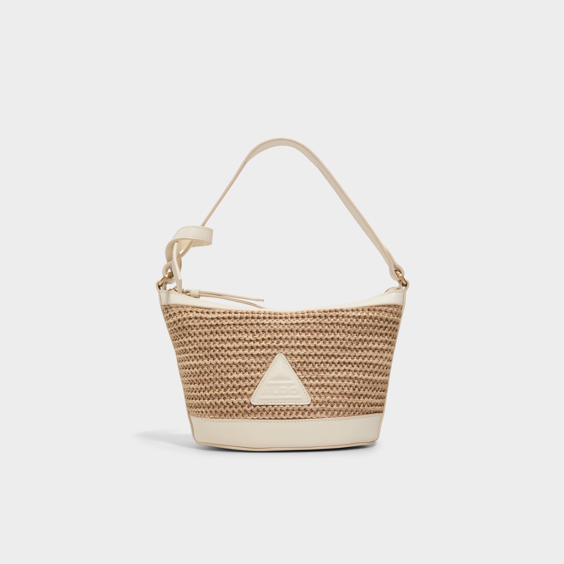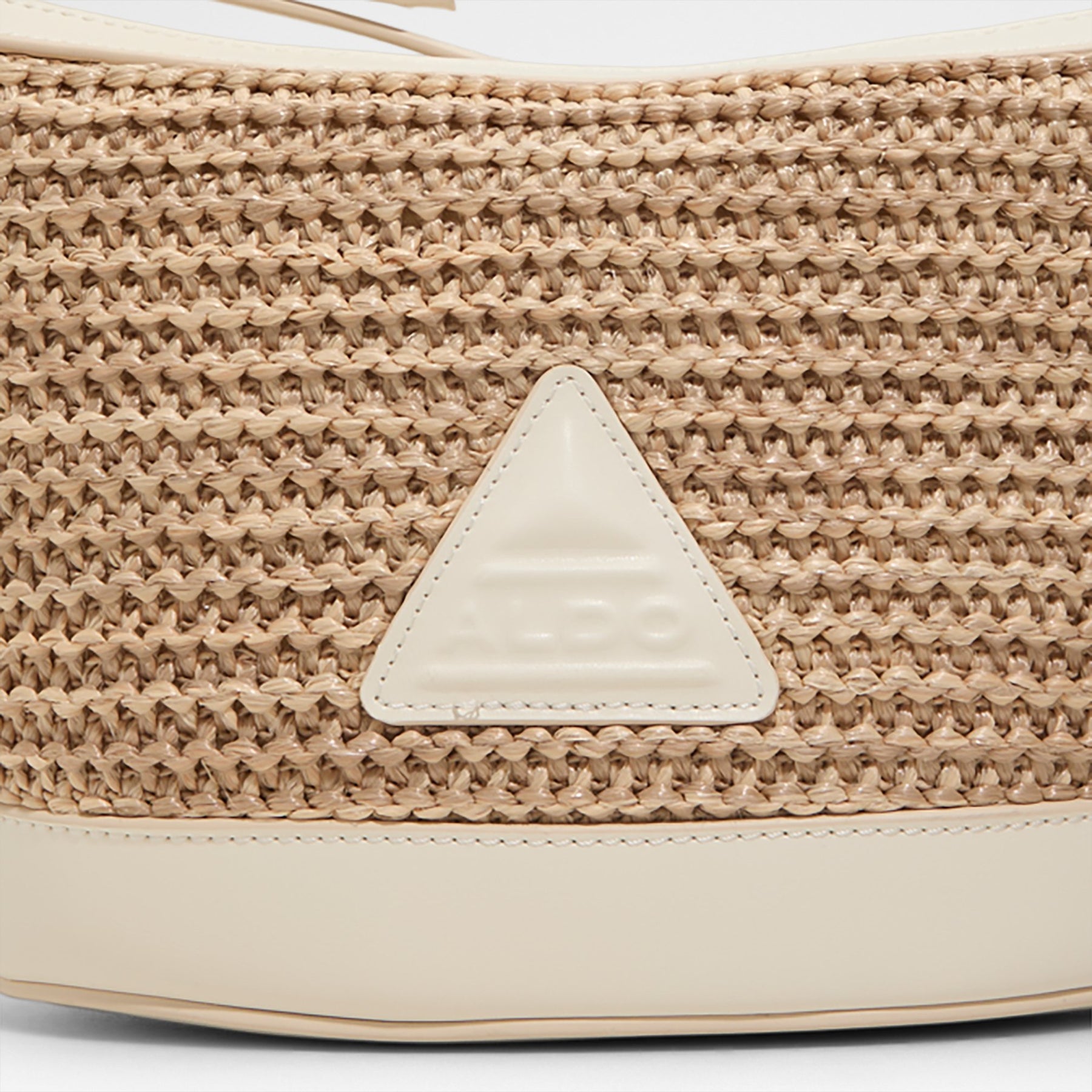 Mala de ombro CONTANY para mulher, em bege, com fecho de correr, alça média e material tipo ráfia.