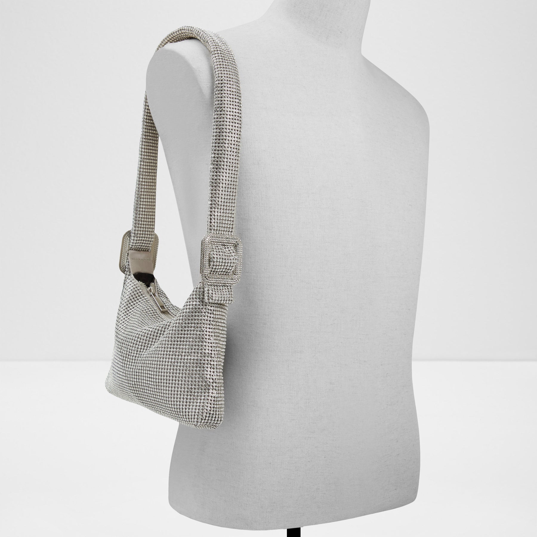 Mala de ombro BANALIA para mulher, em prateado, com fecho de correr, alça média e brilhos.