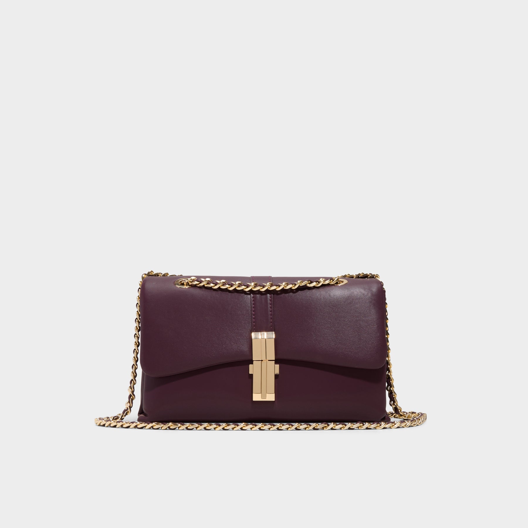 Mala de tiracolo ALICIE para mulher, em bordô, com fecho metálico e alça comprida.