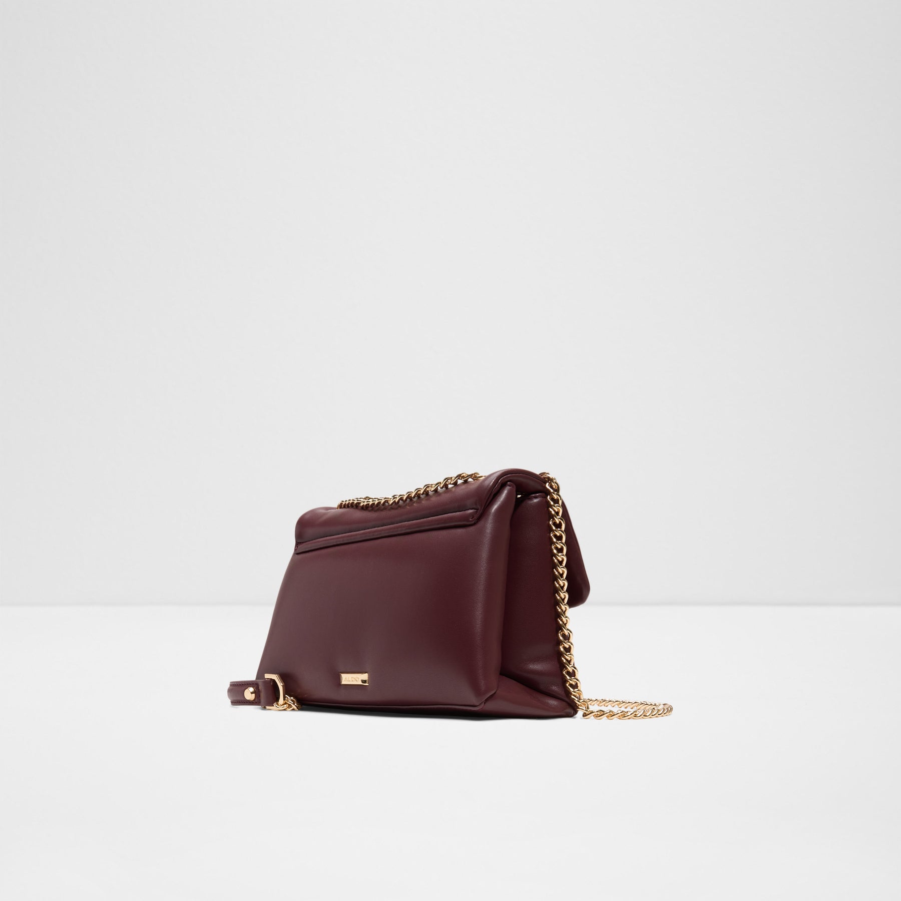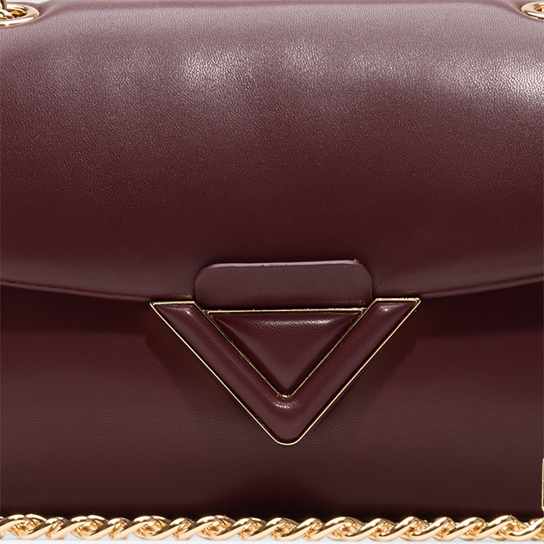 Mala de tiracolo SOFTPUFF para mulher, em bordô, com fecho magnético, alça comprida e um aplique decorativo. Com uma textura acolchoada.
