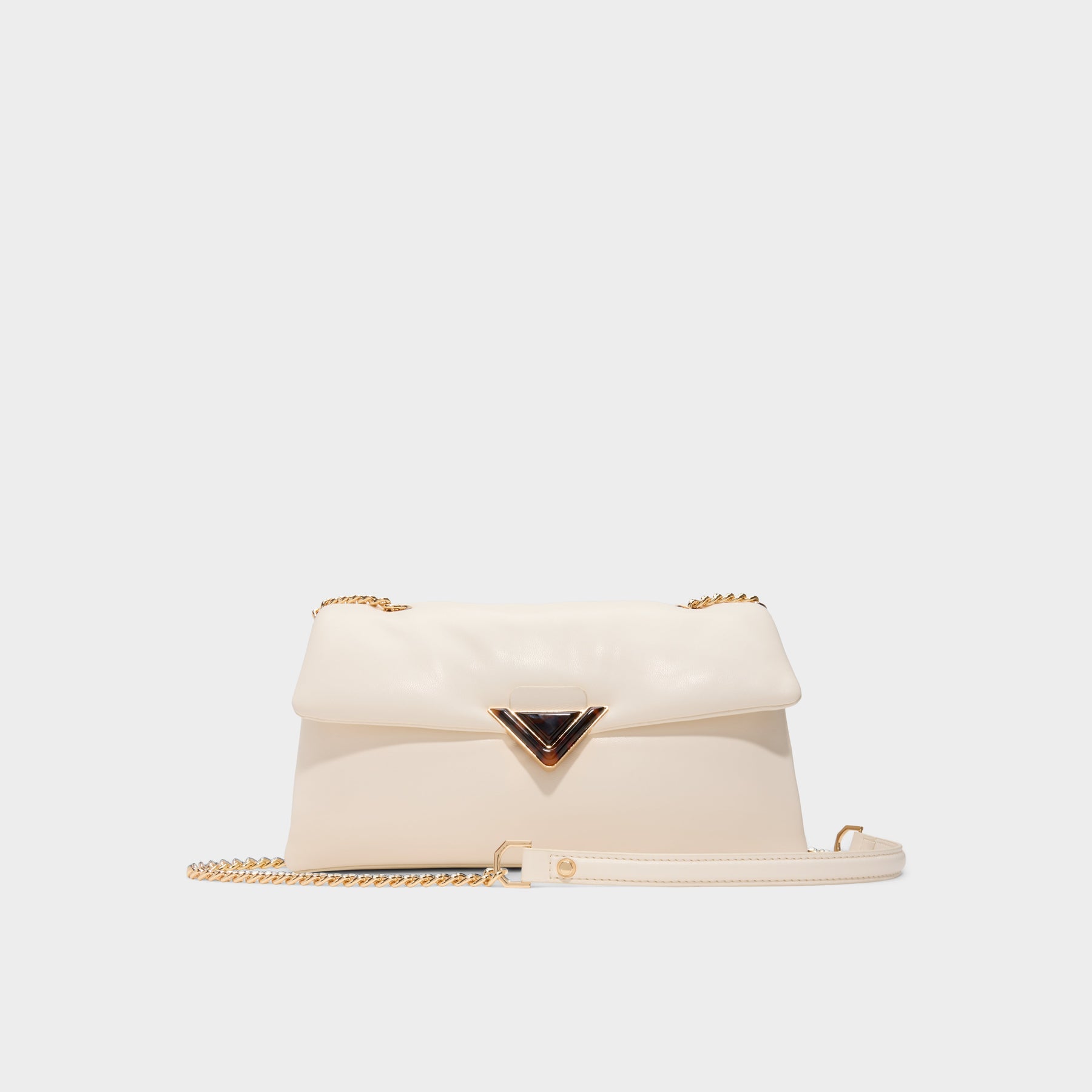 Mala de tiracolo LARGESOFTPUFF para mulher, em branco cru, com fecho magnético, alça comprida e uma textura acolchoada. Pode ser usada como mala de ombro.