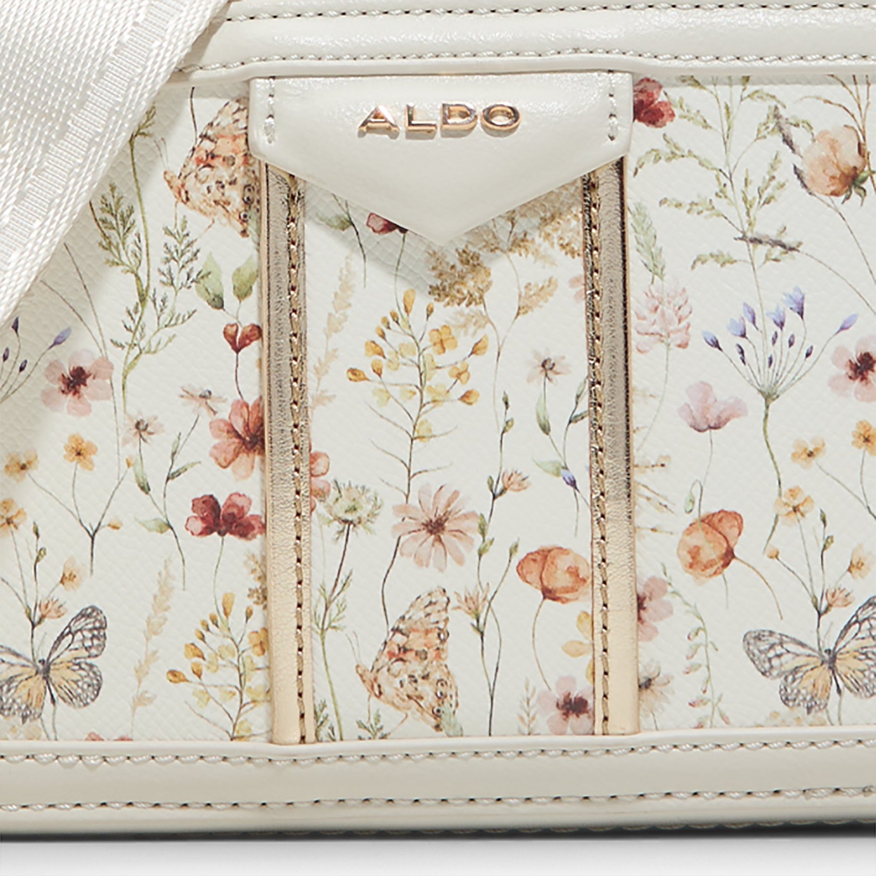 Mala de tiracolo MASUMA para mulher, em branco, com fecho de correr, alça comprida e um padrão de flores e borboletas.
