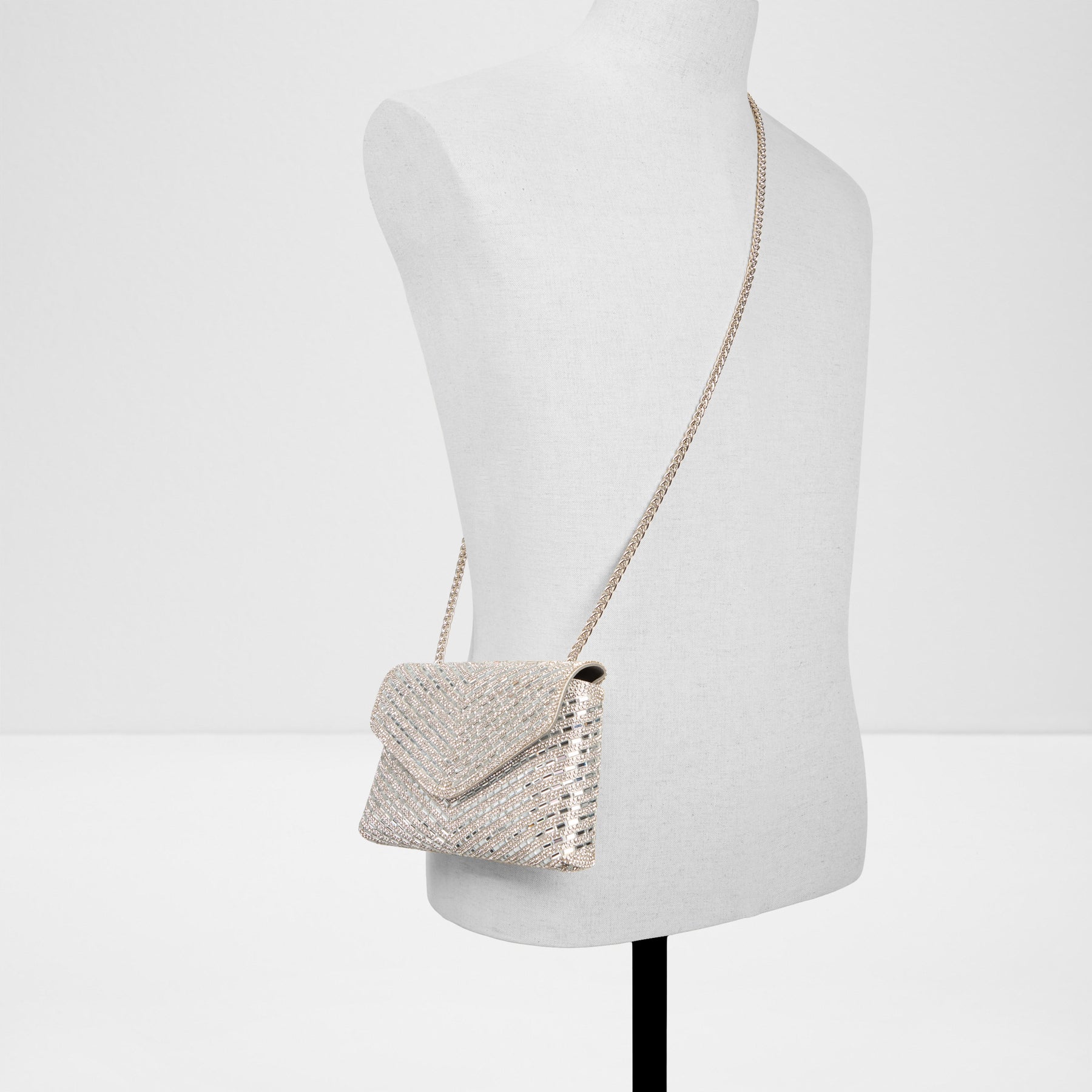Mala de tiracolo SPARKLEBAG para mulher, em prateado, com fecho magnético, alça comprida e pedras brilhantes.