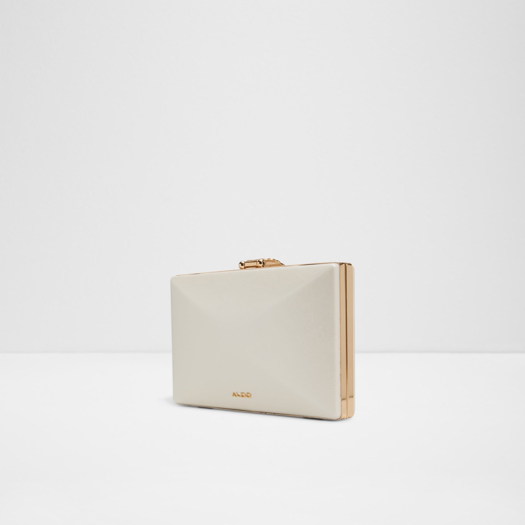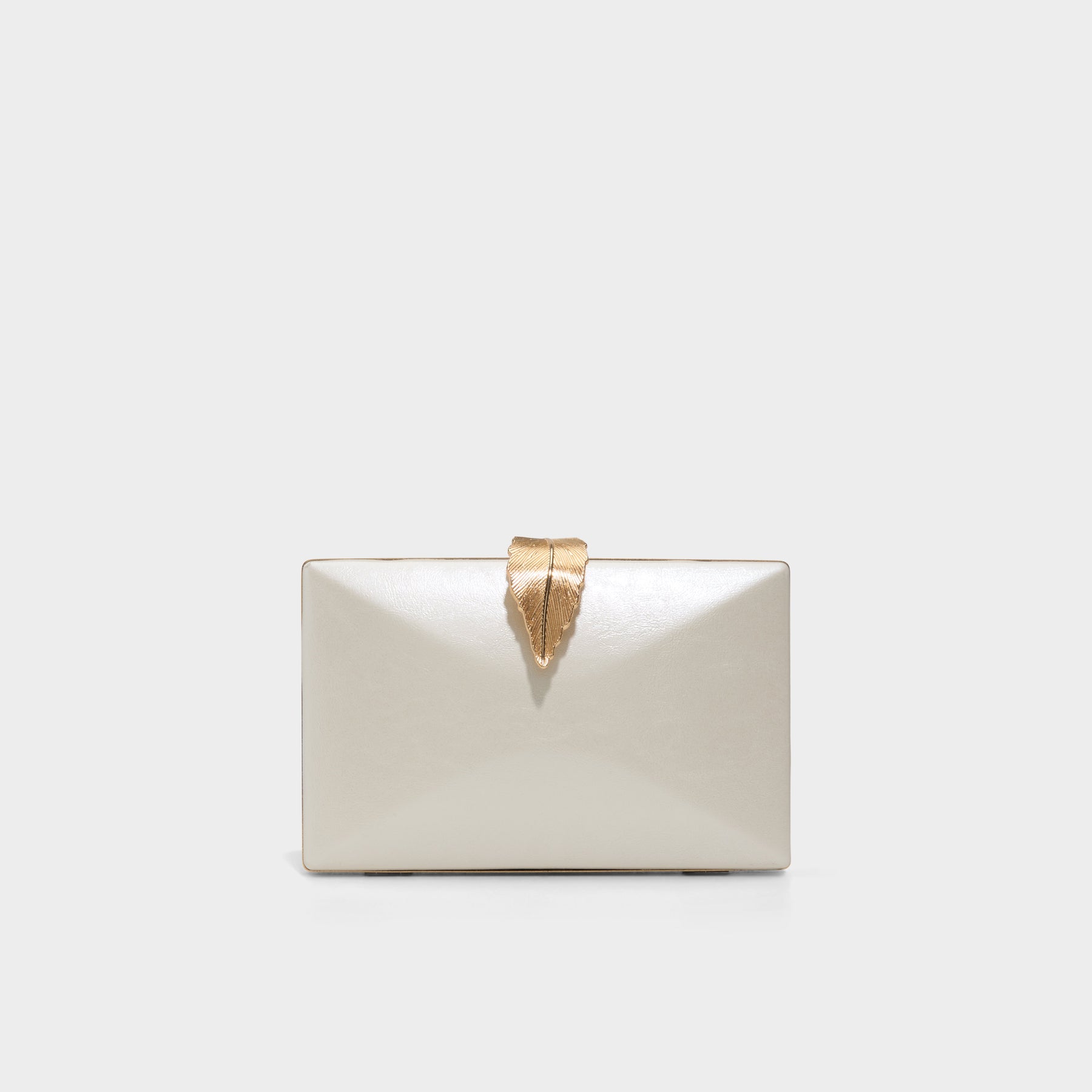 Mala de mão LAYALI para mulher, em branco cru, com fecho metálico, alça curta e uma alça extra para uso de tiracolo.