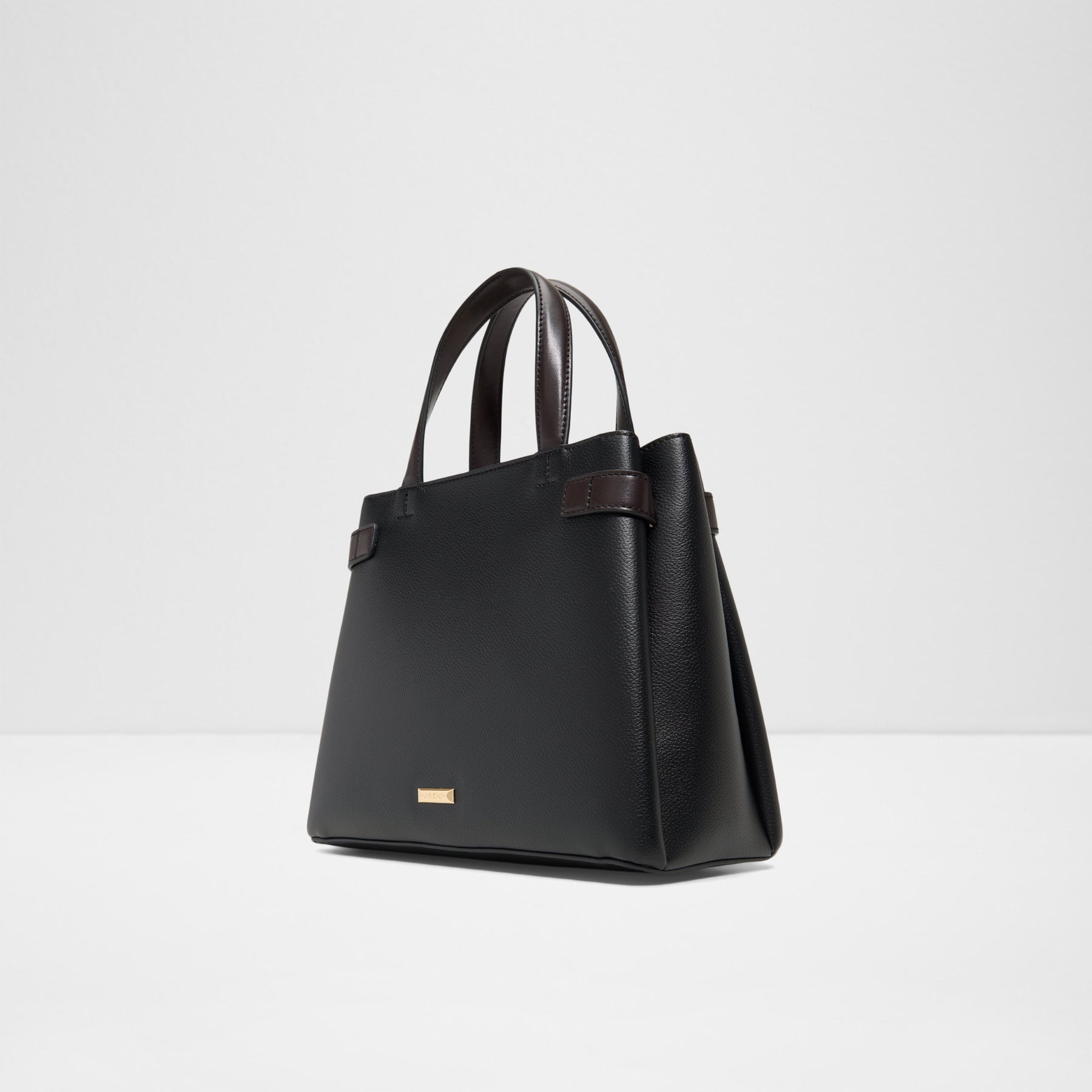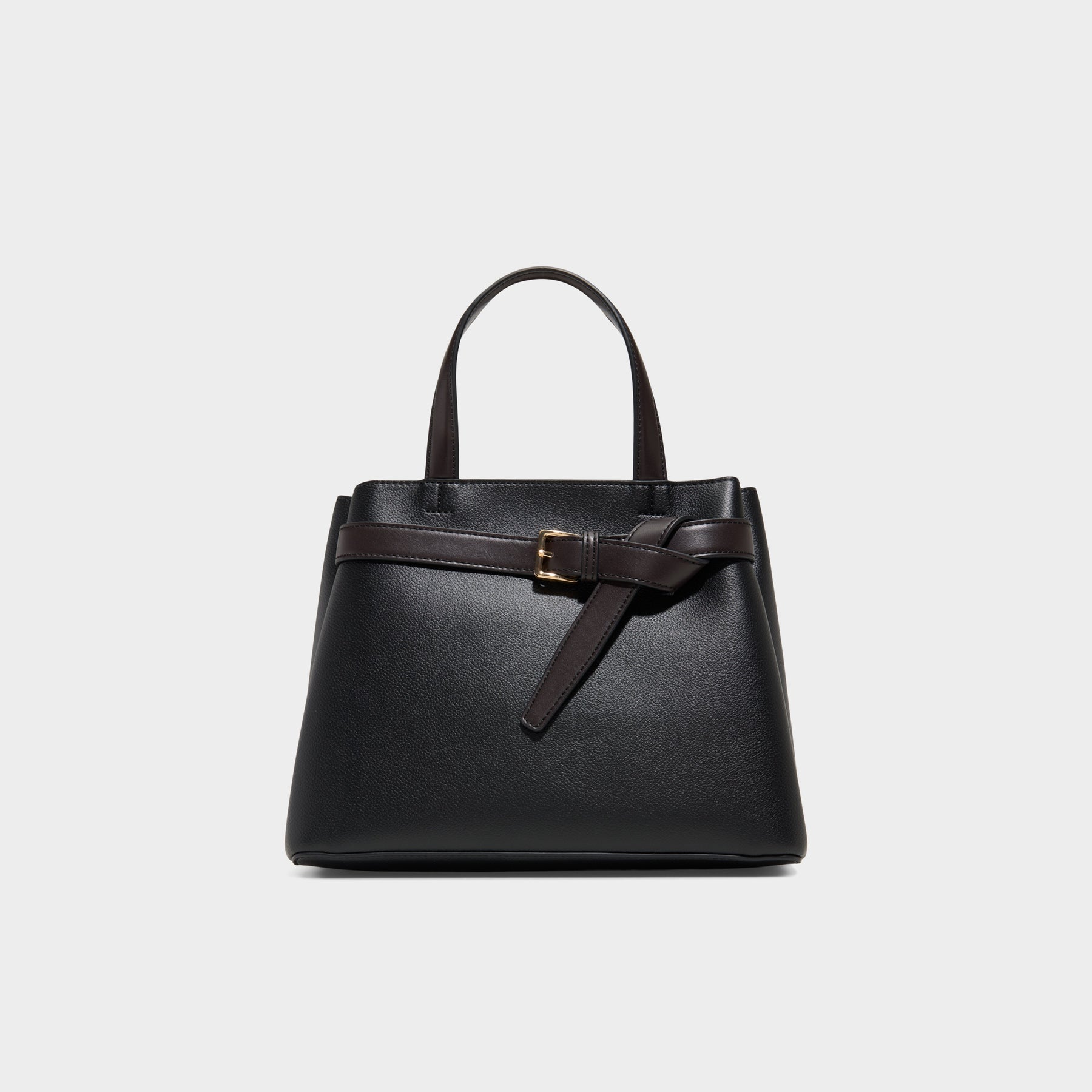 Mala de mão EBAECLYA para mulher, em preto, com fecho de correr, alça curta e um aplique decorativo. Com uma alça extra para uso de tiracolo.