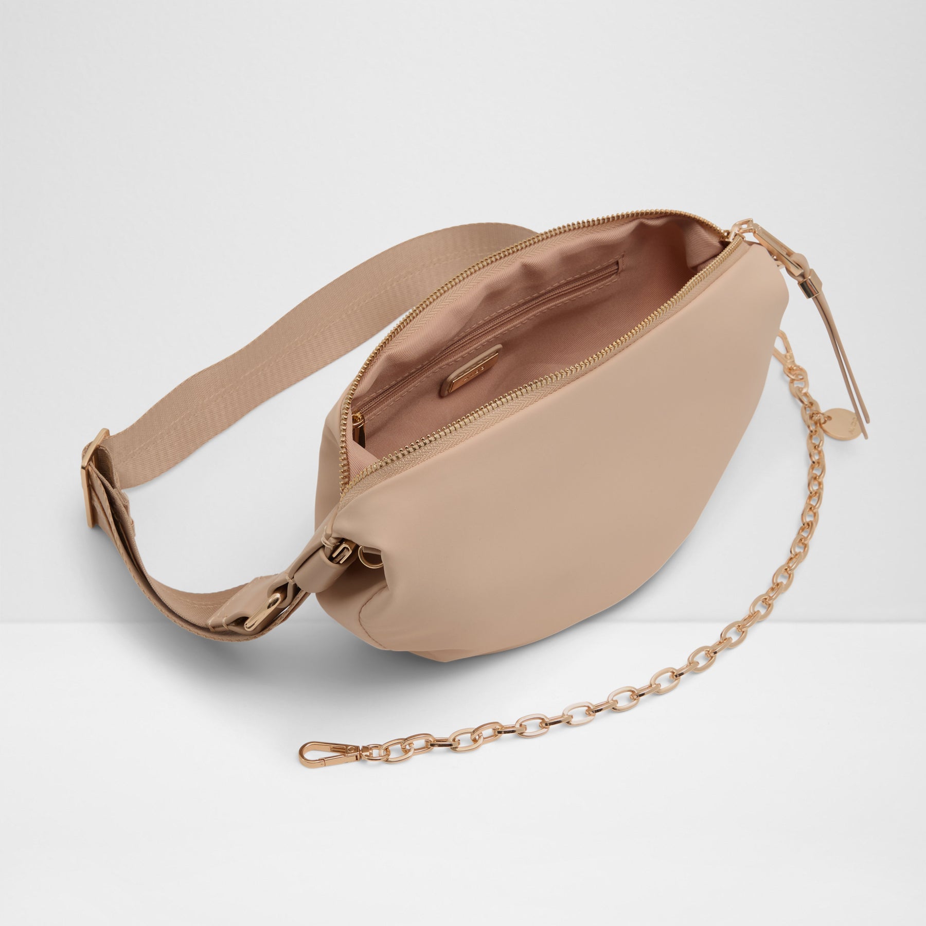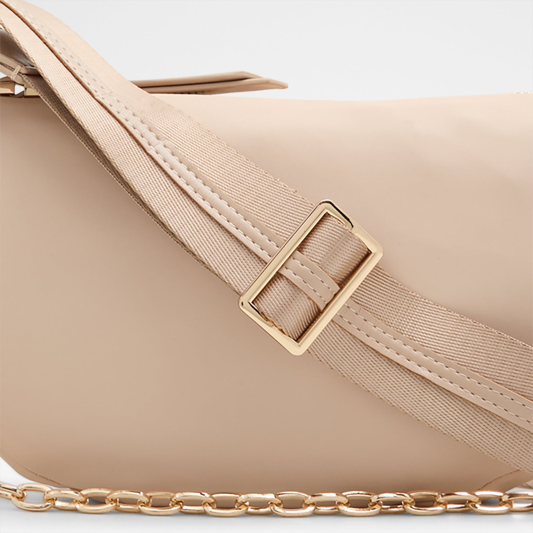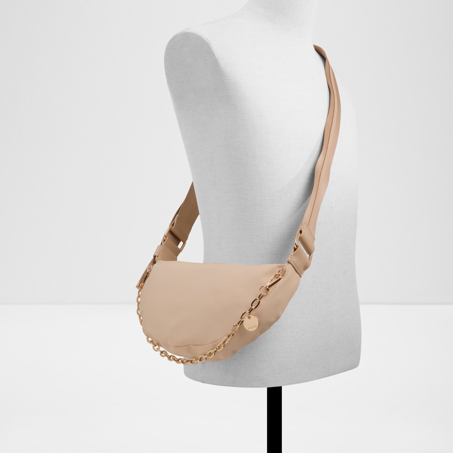 Mala de tiracolo TALLISA para mulher, em bege, com fecho de correr, alça comprida e corrente decorativa.