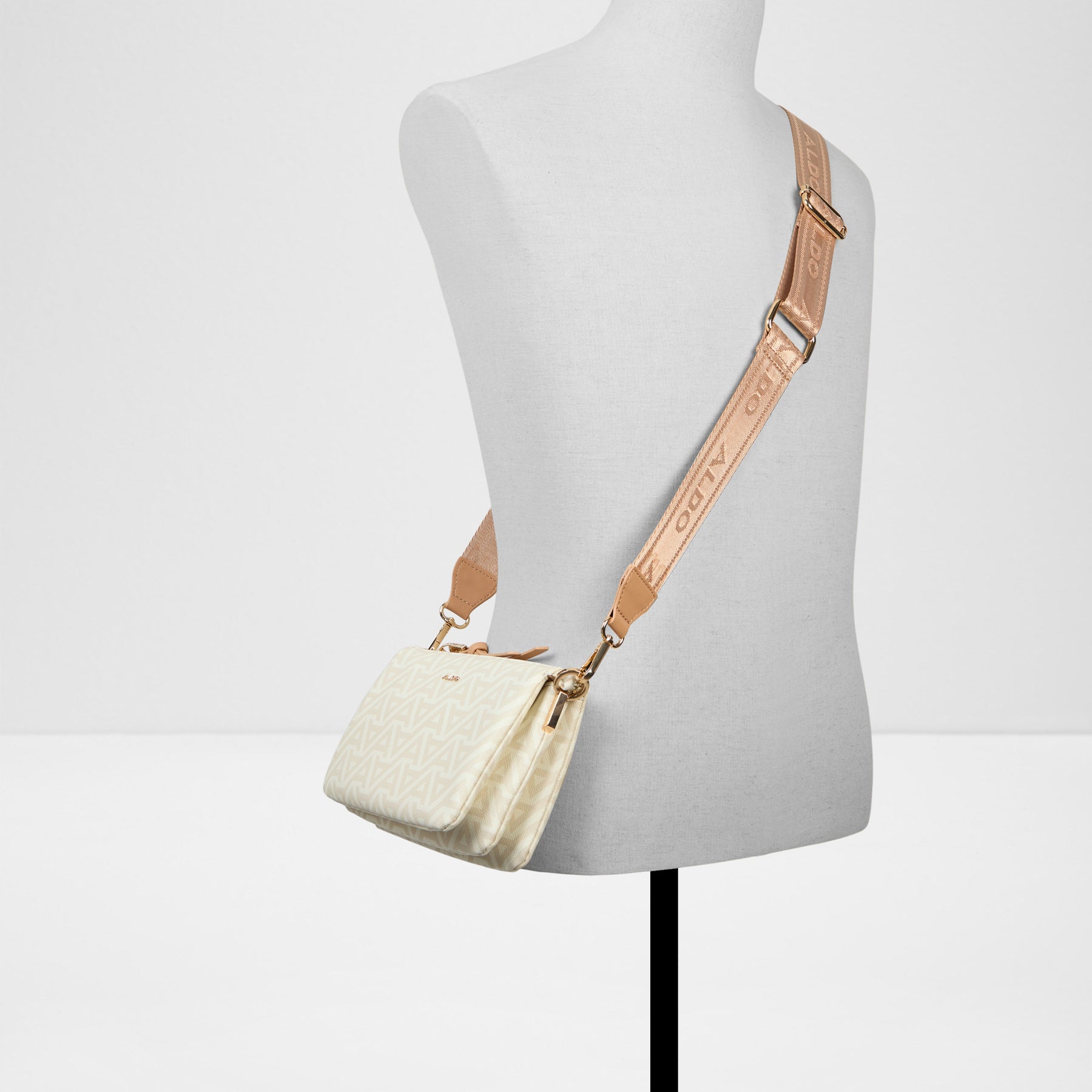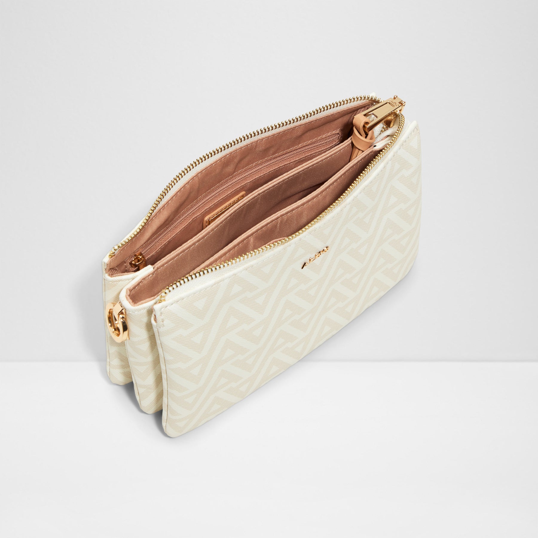 Mala de tiracolo CIALY para mulher, em branco, com fecho de correr, alça comprida e monograma ALDO estampado.