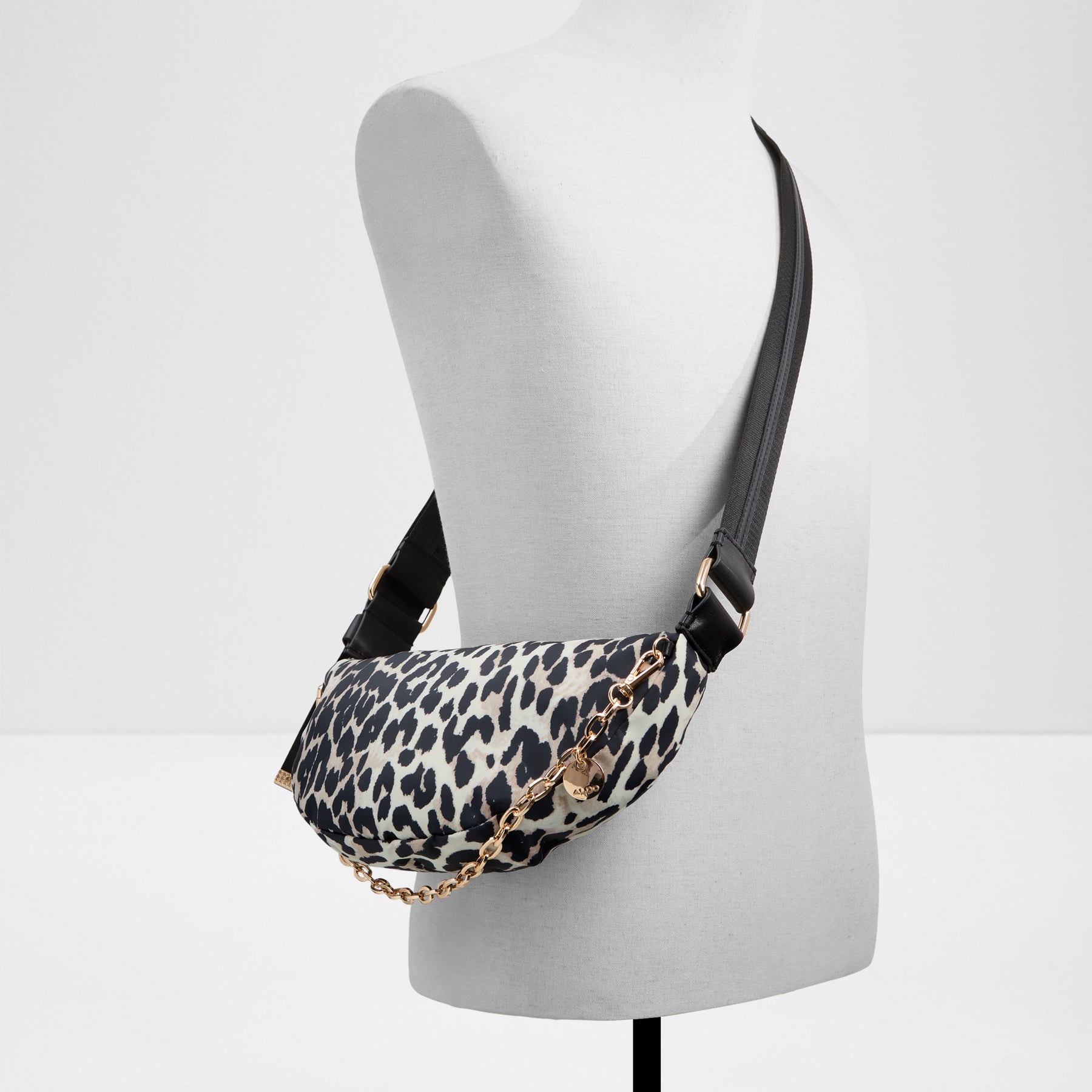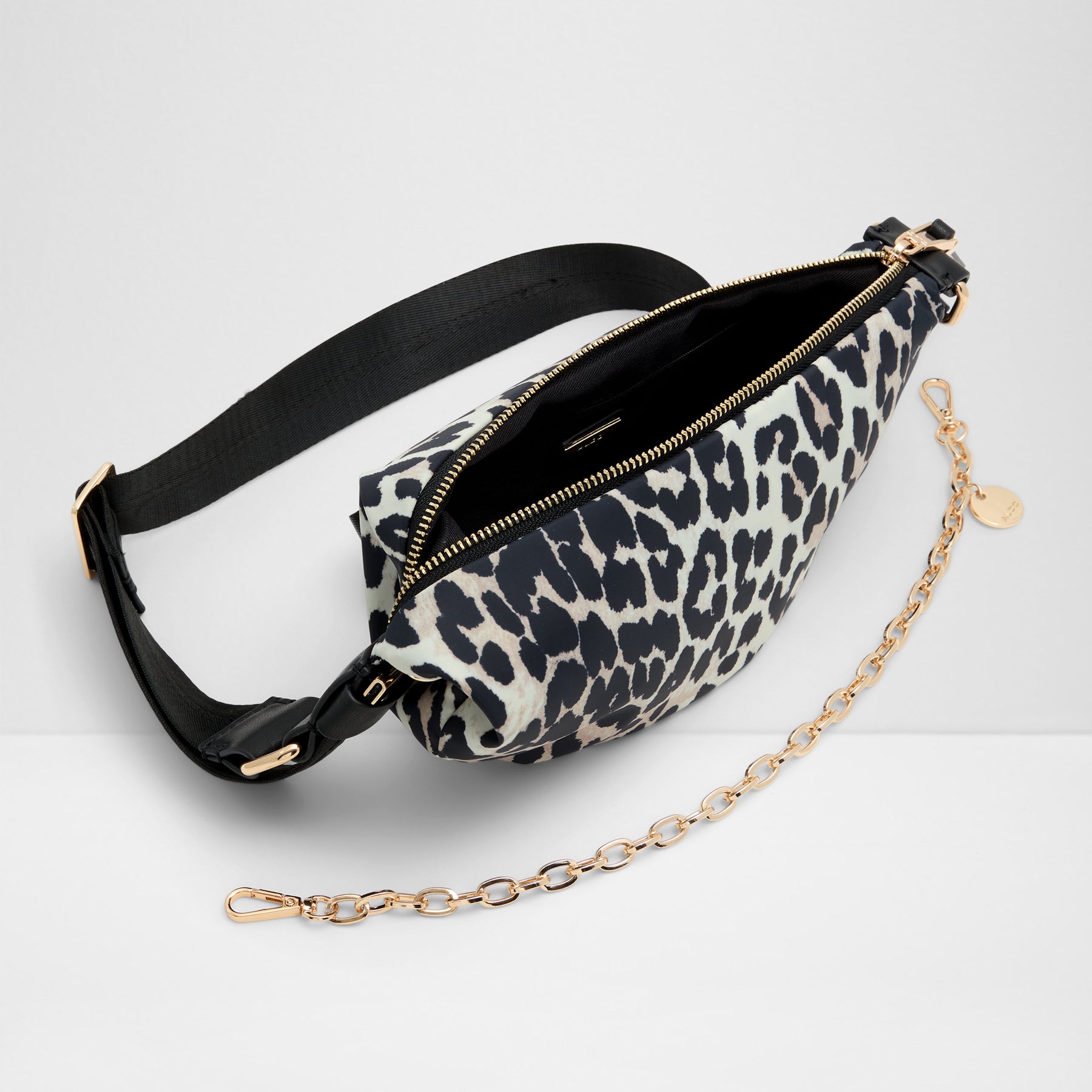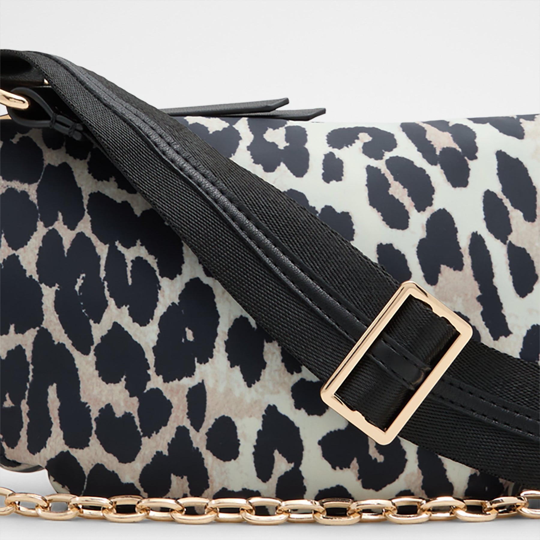 Mala de tiracolo TALLISA para mulher, em preto, com fecho de correr, alça comprida e corrente decorativa. Com um padrão de pele animal.