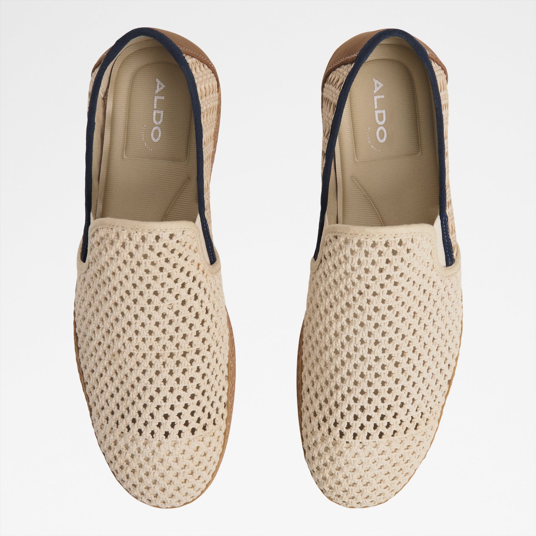 Alpercatas KIANOU para homem, em bege, com biqueira amendoada e têxtil tipo rede. Com aperto de elástico e sola branca.