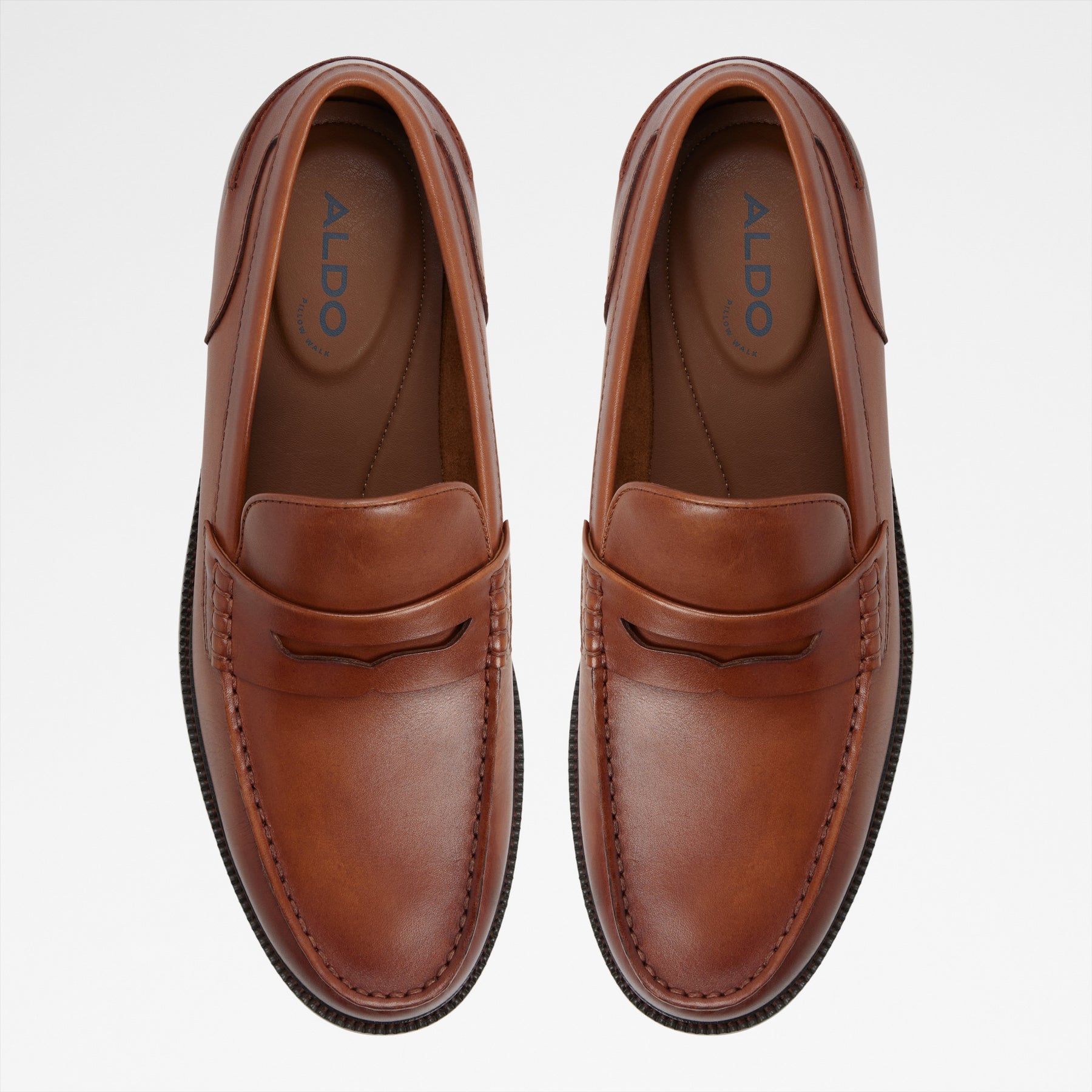 Mocassins KIERAN para homem, em pele, em cognac, com biqueira redonda e um aplique decorativo.
