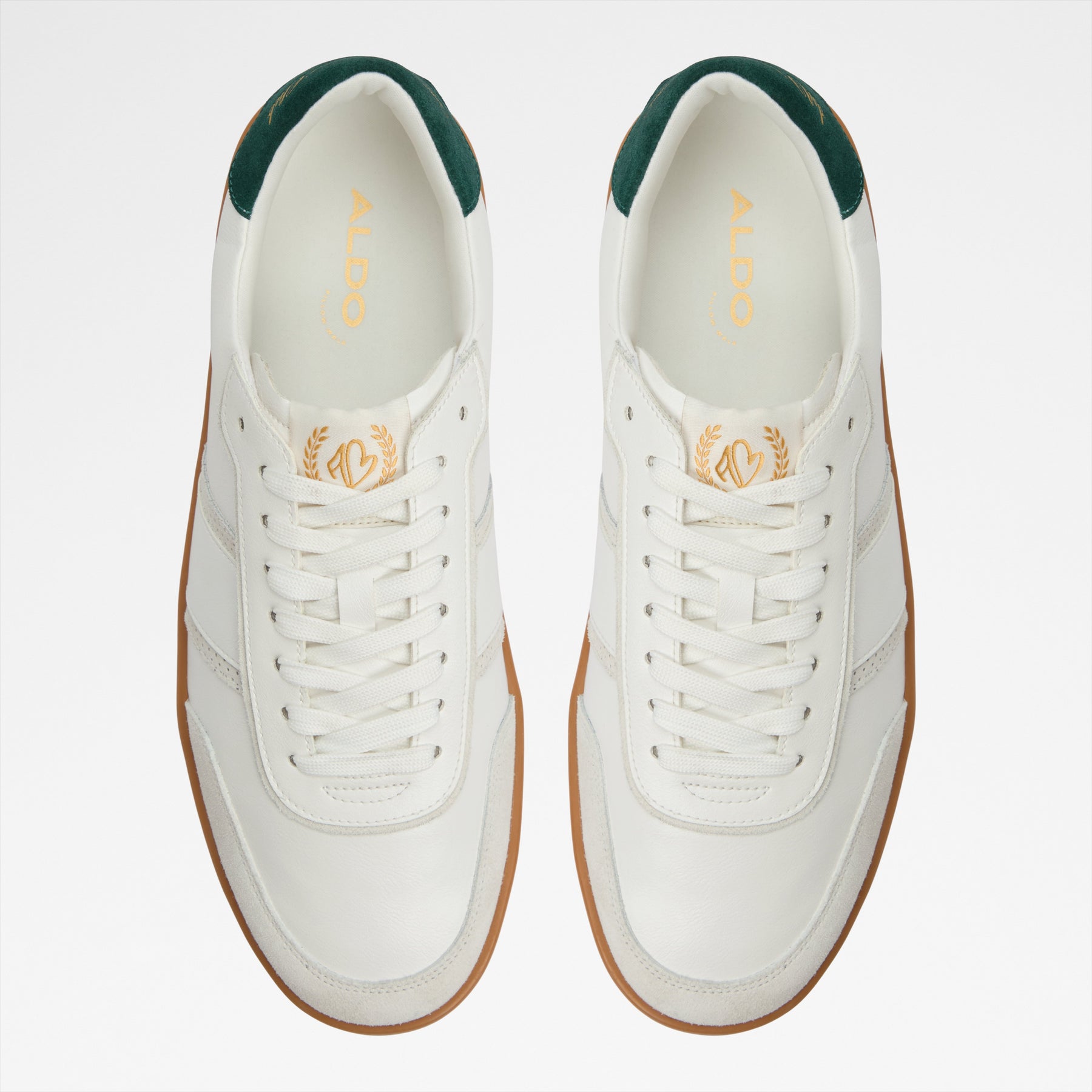 Sapatilhas UPTOWN para homem, em branco, com biqueira amendoada e com diferentes texturas. Com fecho de cordões e sola em contraste de cor.