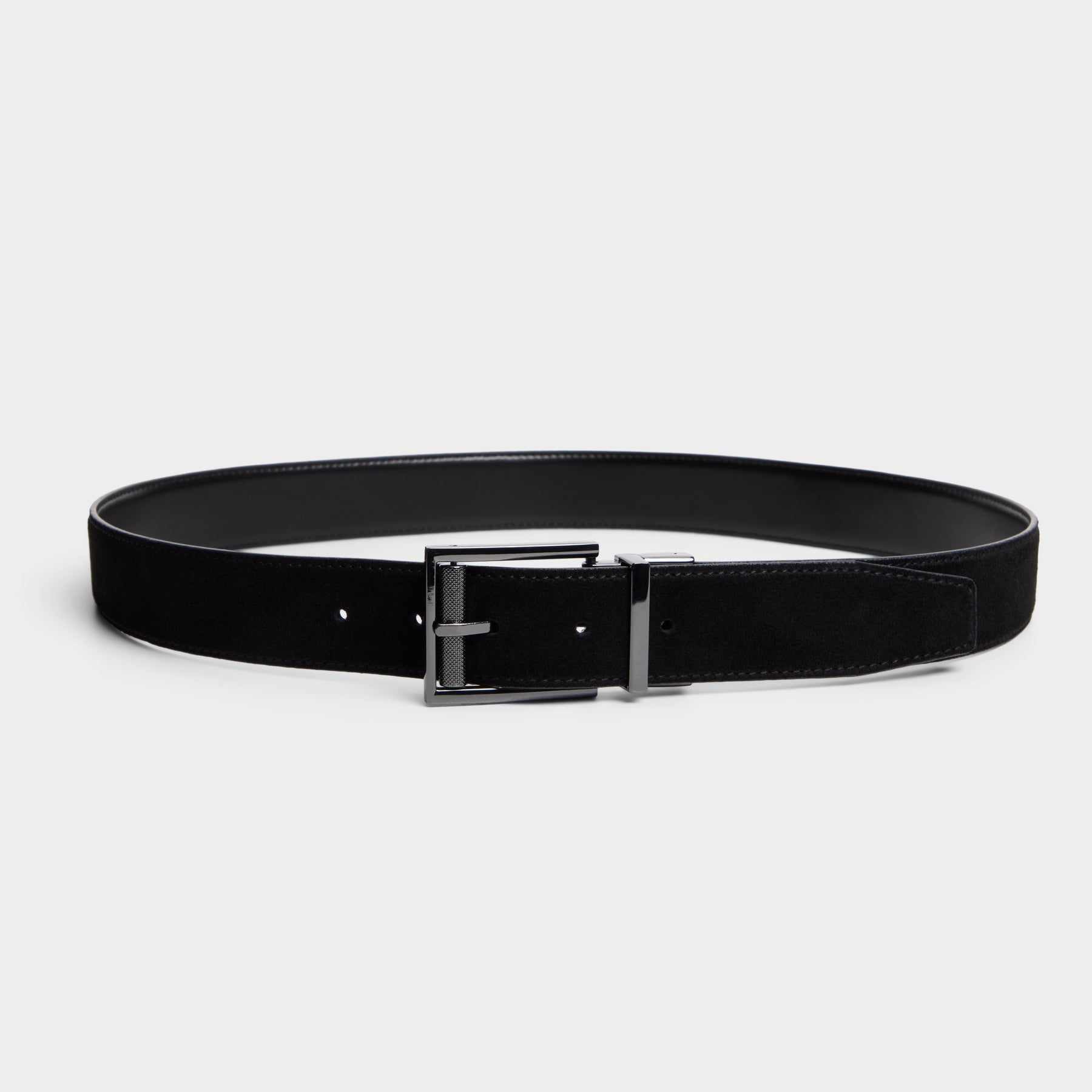 Cinto BENJJAMIN para homem, em pele, em preto e com fecho de fivela metálica ajustável em prateado. Reversível: com diferentes texturas.