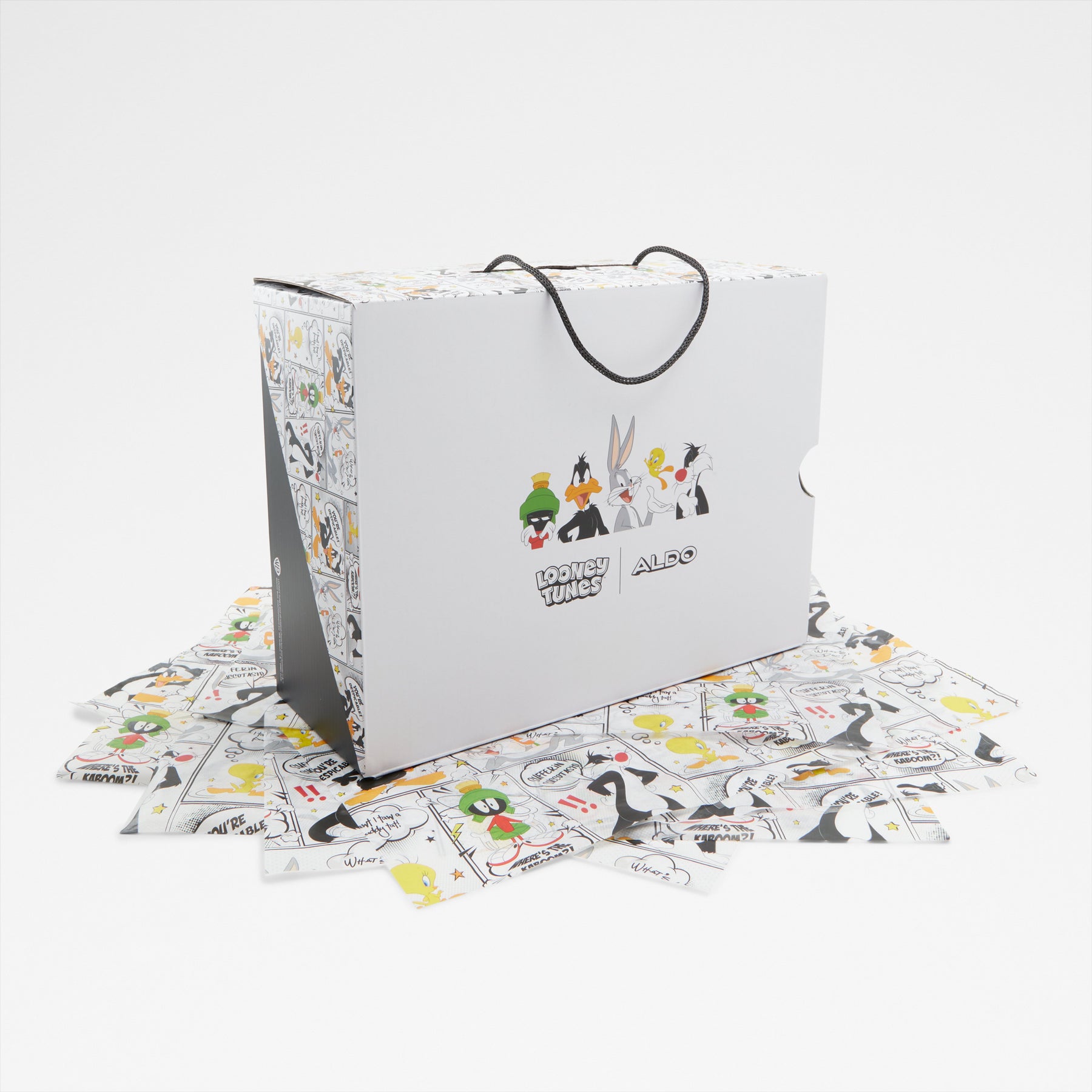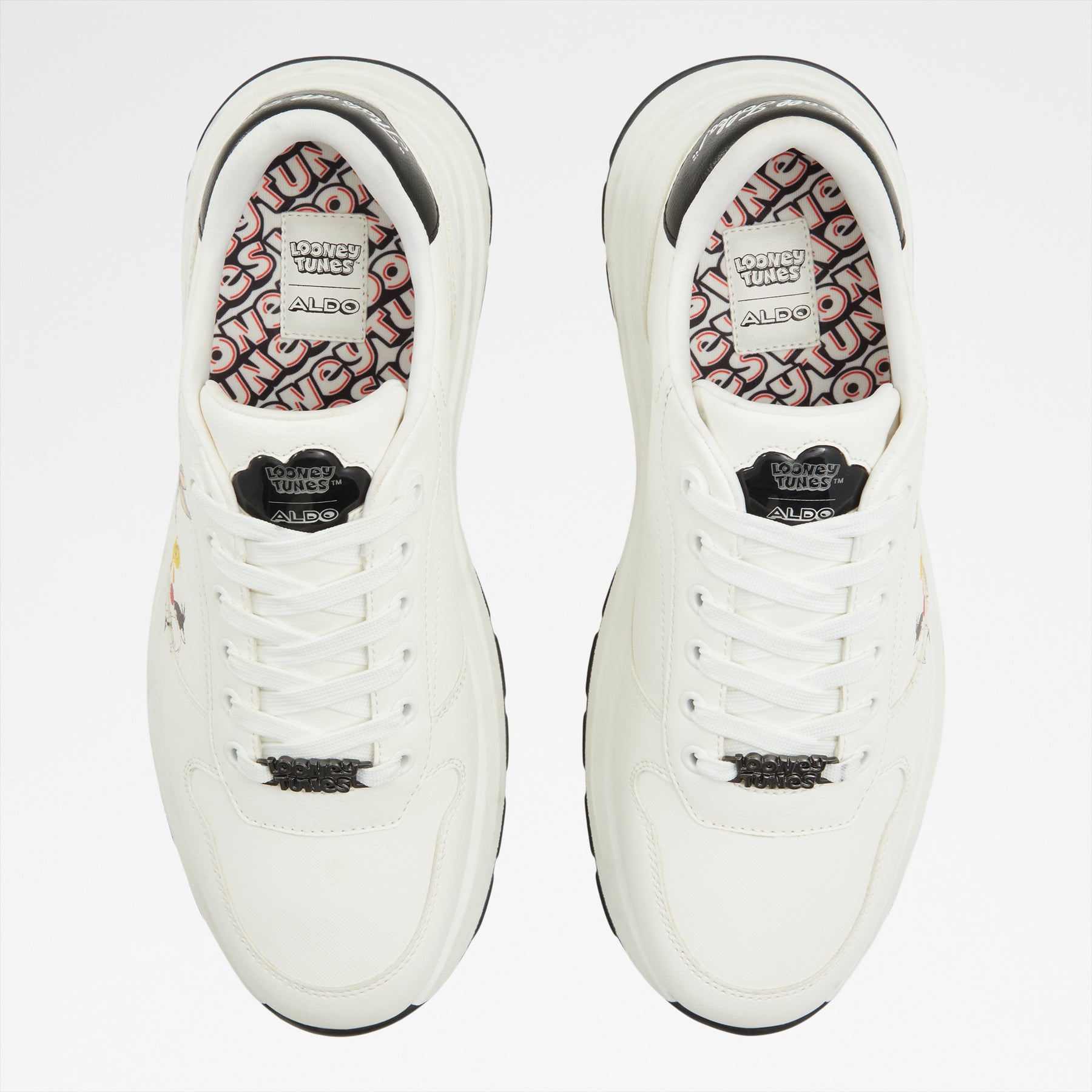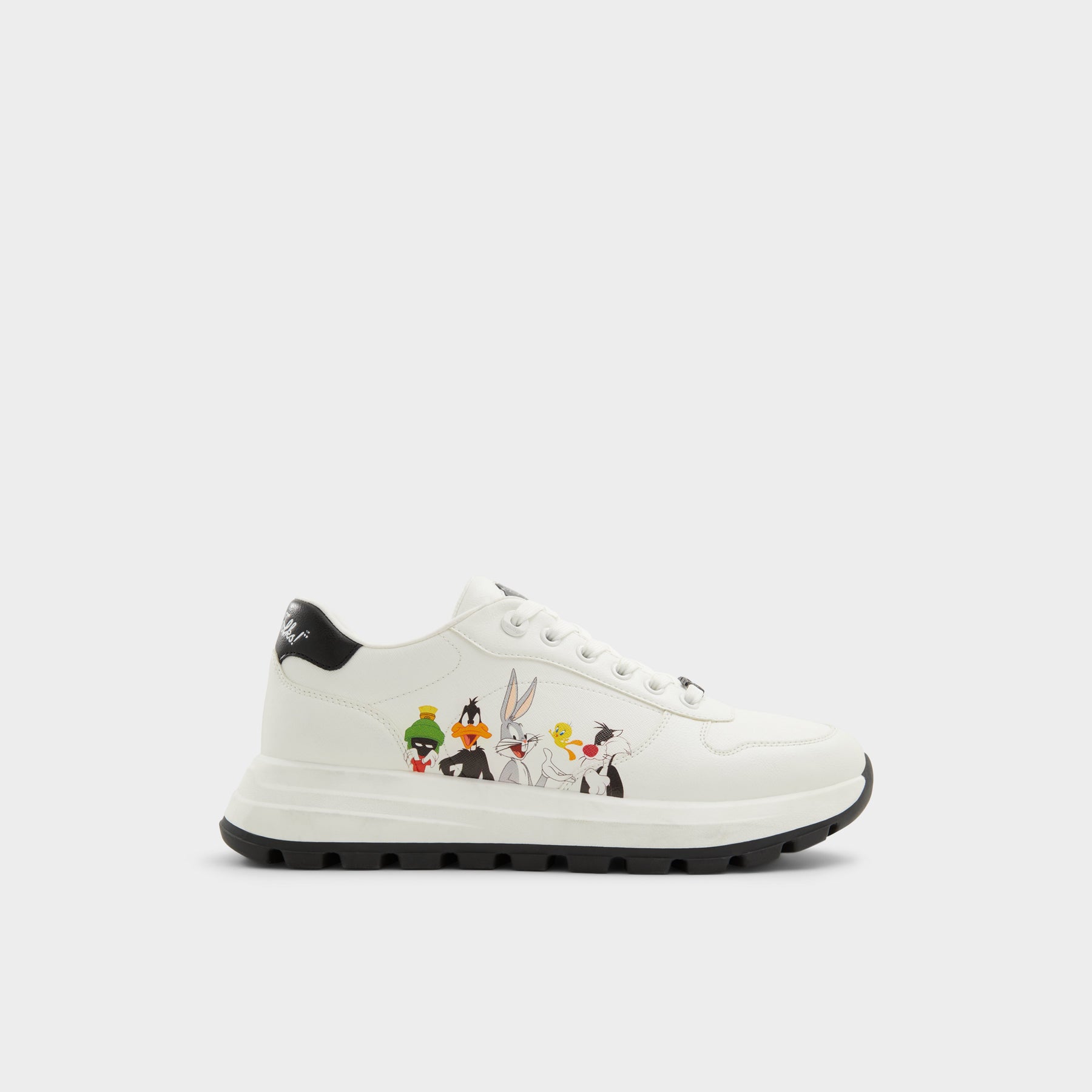 Sapatilhas LTSNEAKER para homem, em branco, com biqueira redonda e um estampado colorido. Com fecho de cordões e sola com combinação de cores. Coleção exclusiva Looney Tunes x ALDO. Complete o seu look aqui.