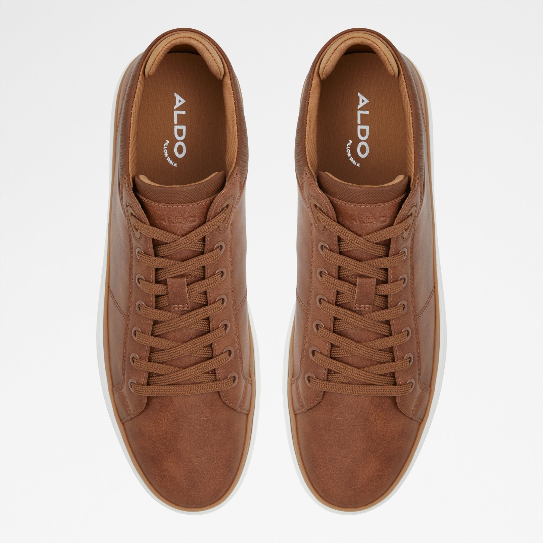 Sapatilhas FINESPEC para homem, em cognac e com biqueira redonda. Com fecho de cordões e sola branca.