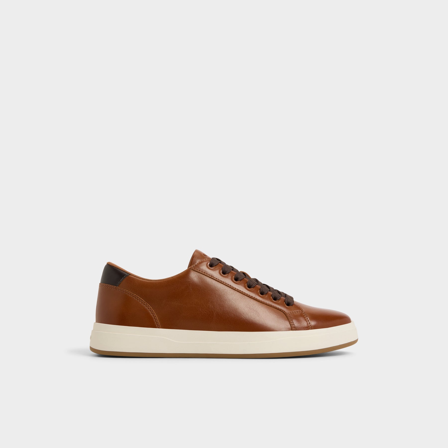 Sapatilhas SCOTTIEE para homem, em cognac, com biqueira redonda e sola branca. Com fecho de cordões.