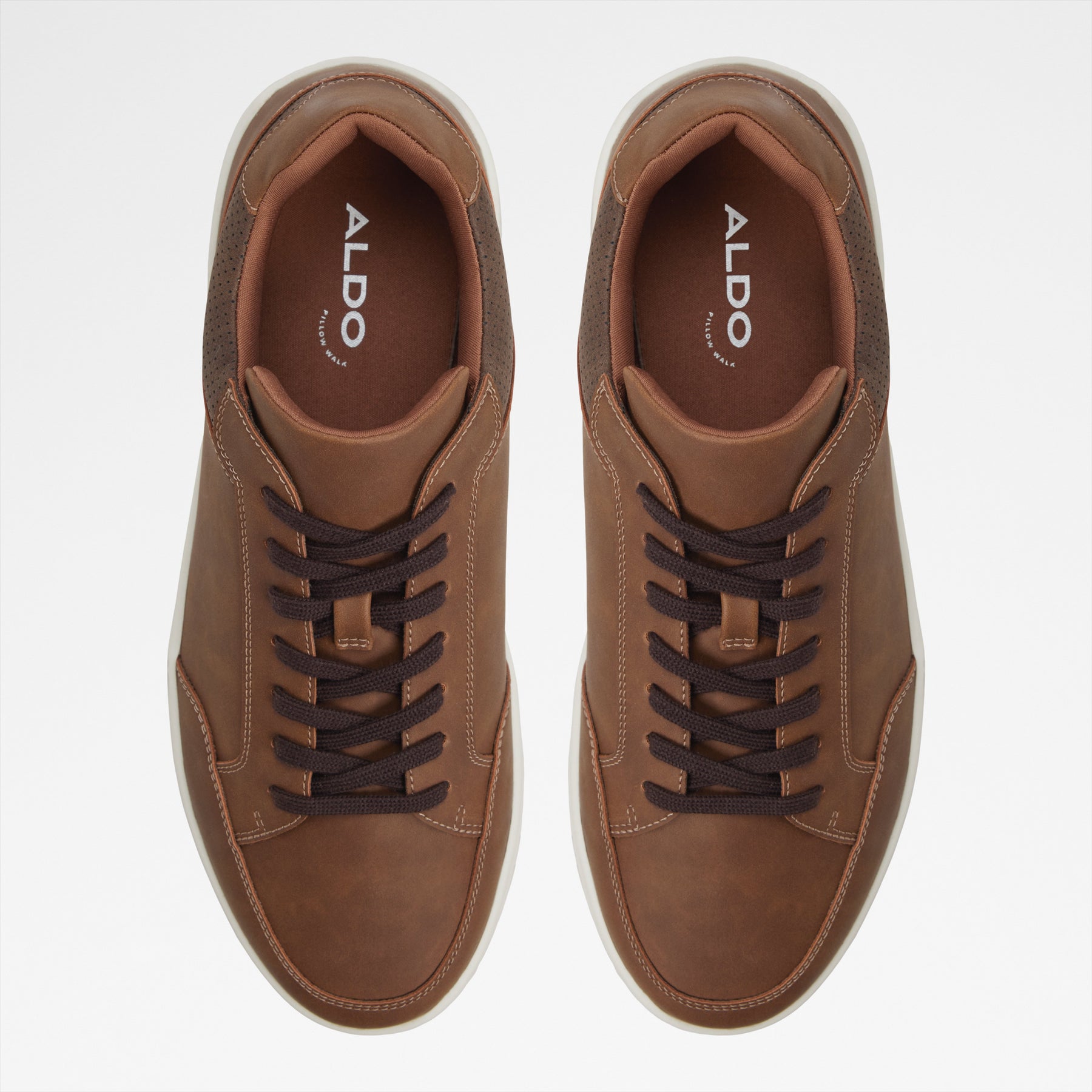 Sapatilhas ZAIDEN para homem, em cognac, com biqueira redonda e sola branca. Com fecho de cordões.