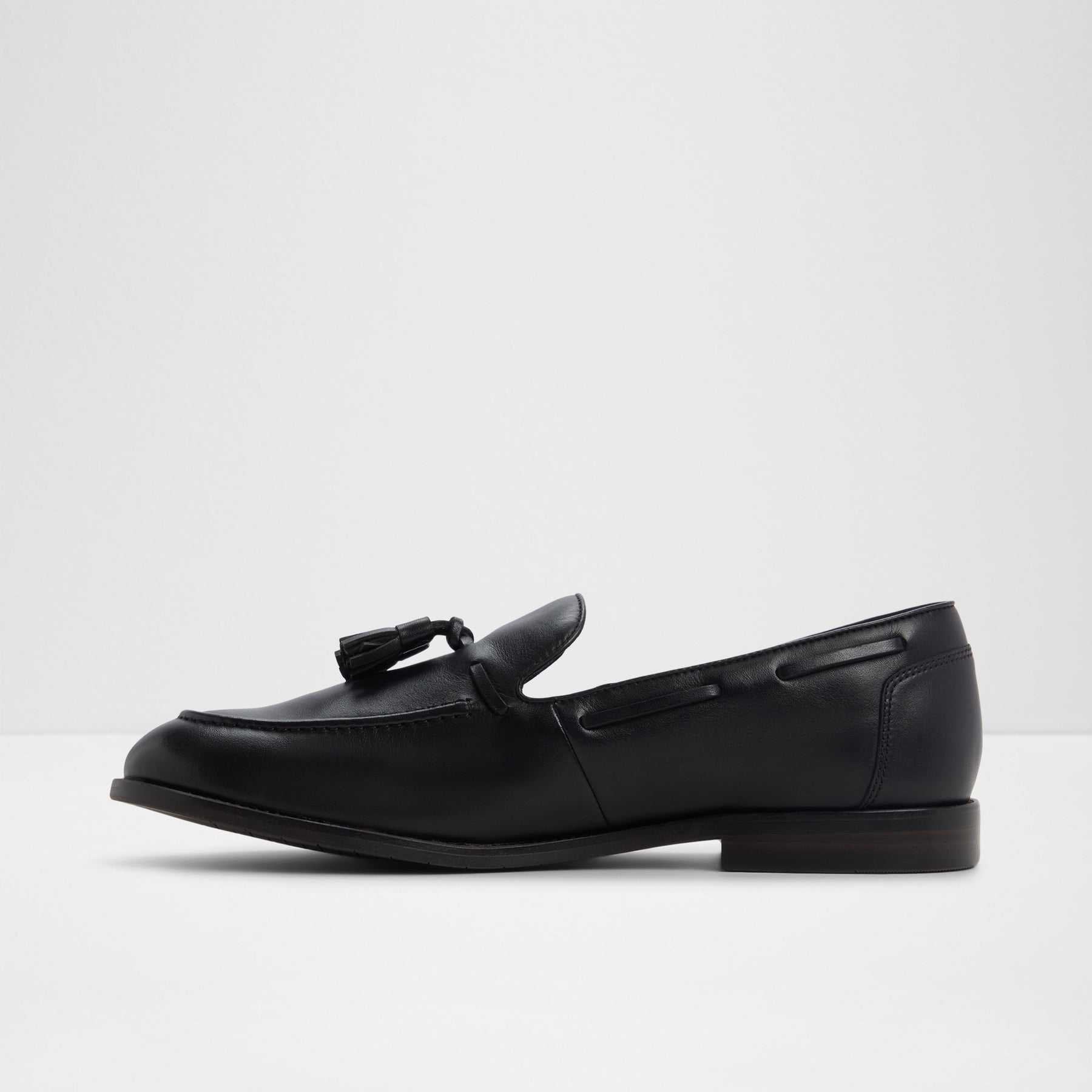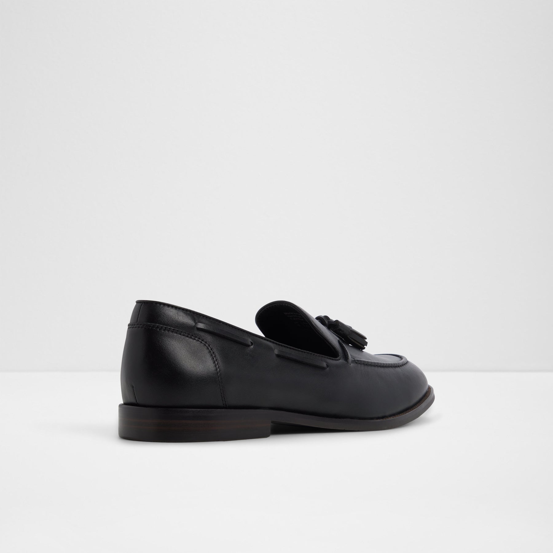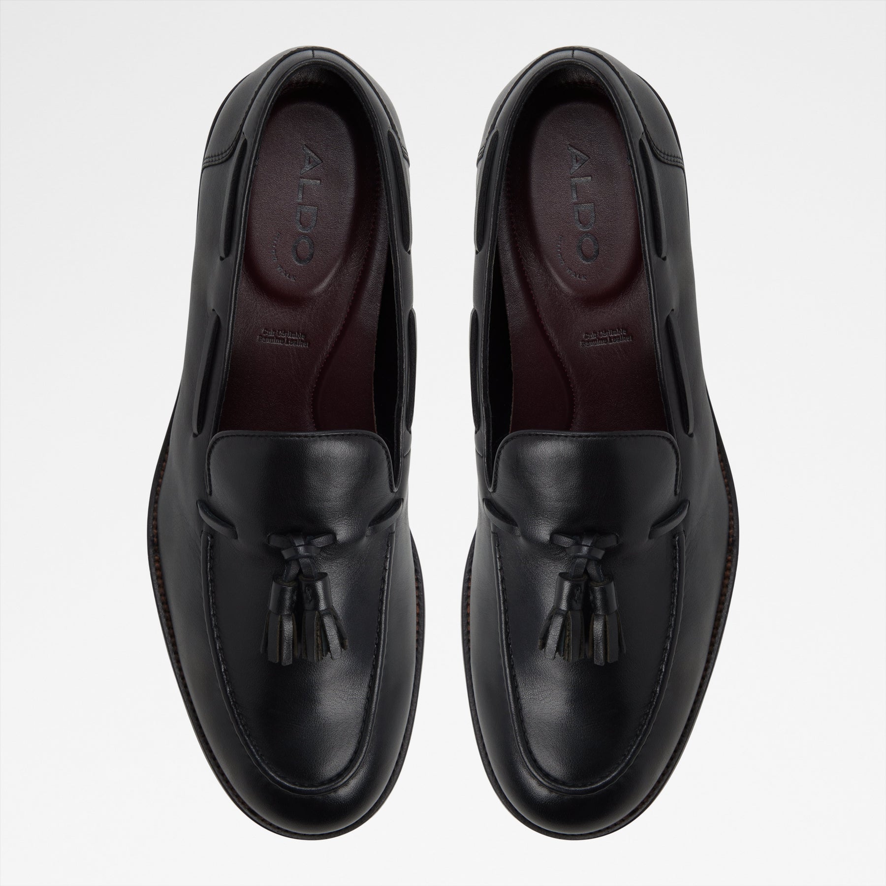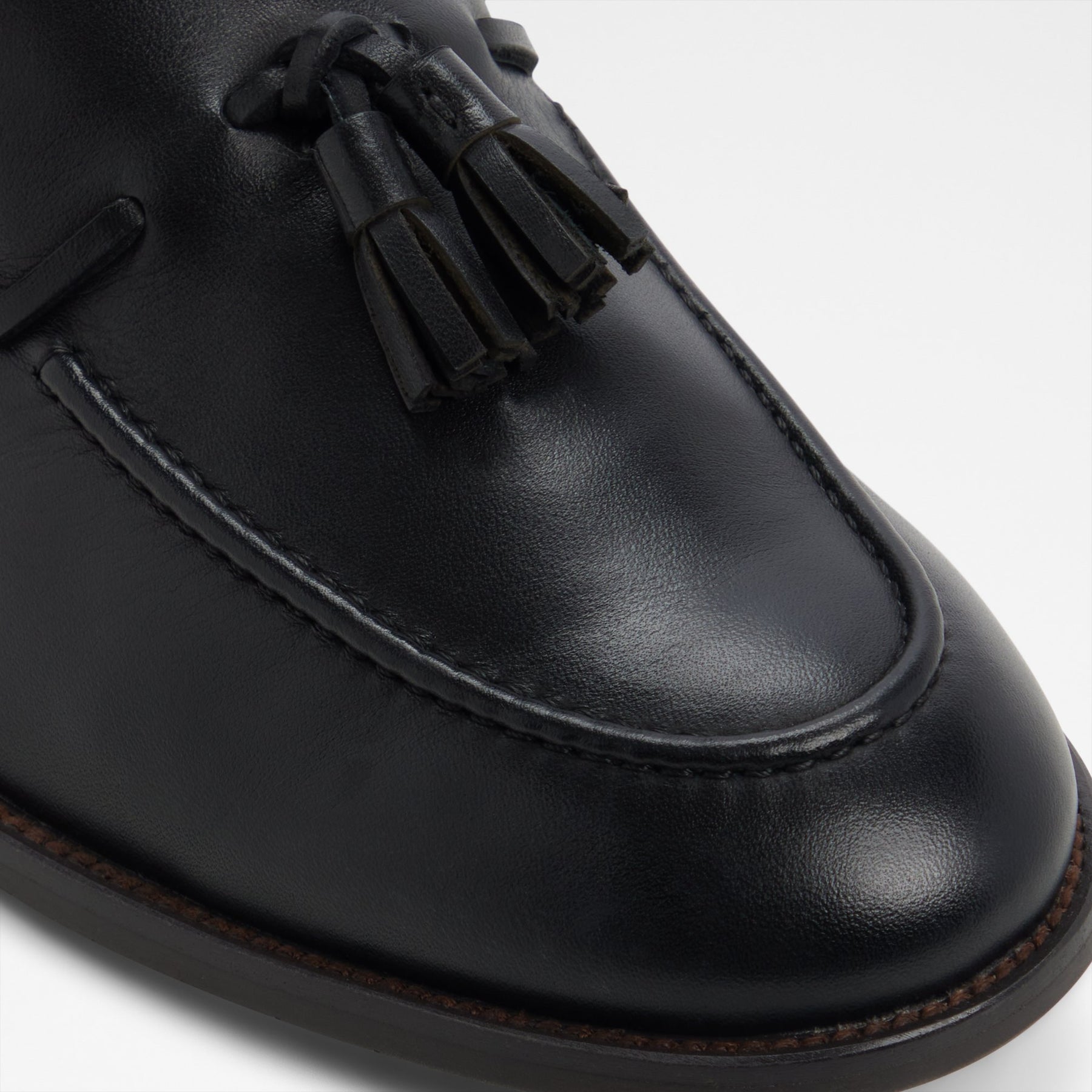 Mocassins NUNEZ para homem, em pele, em preto, com biqueira redonda e uma borla decorativa.