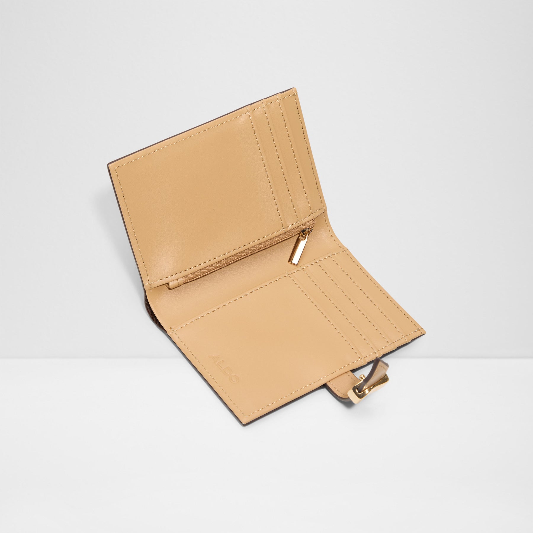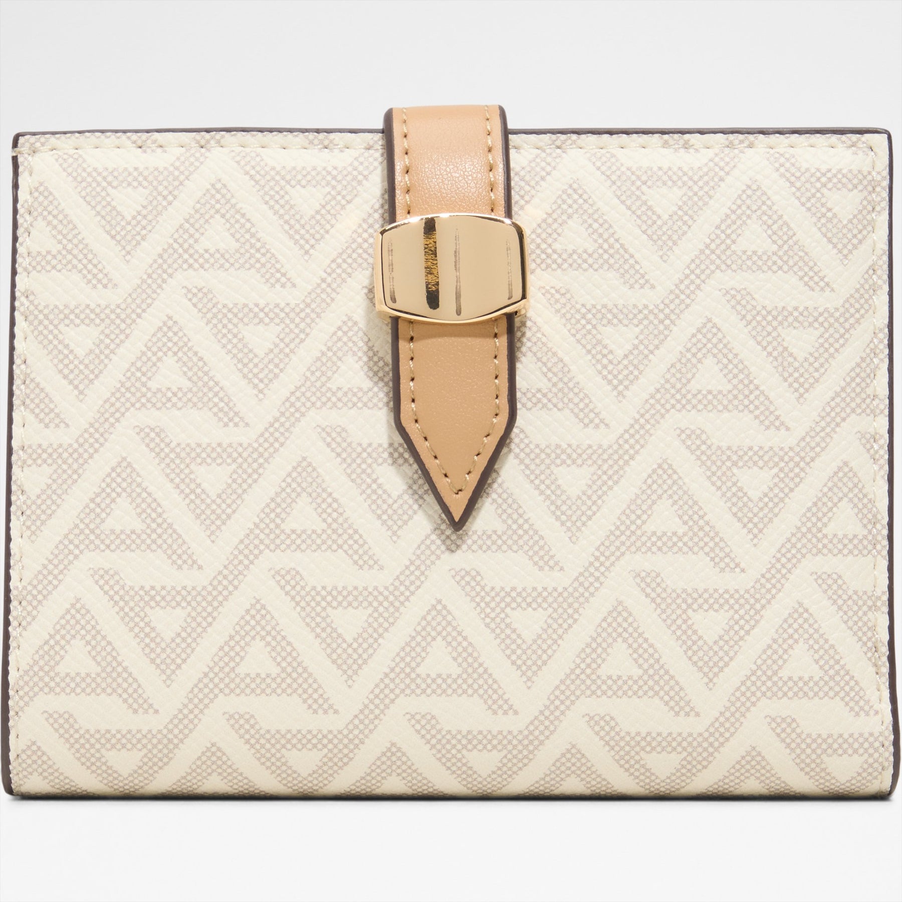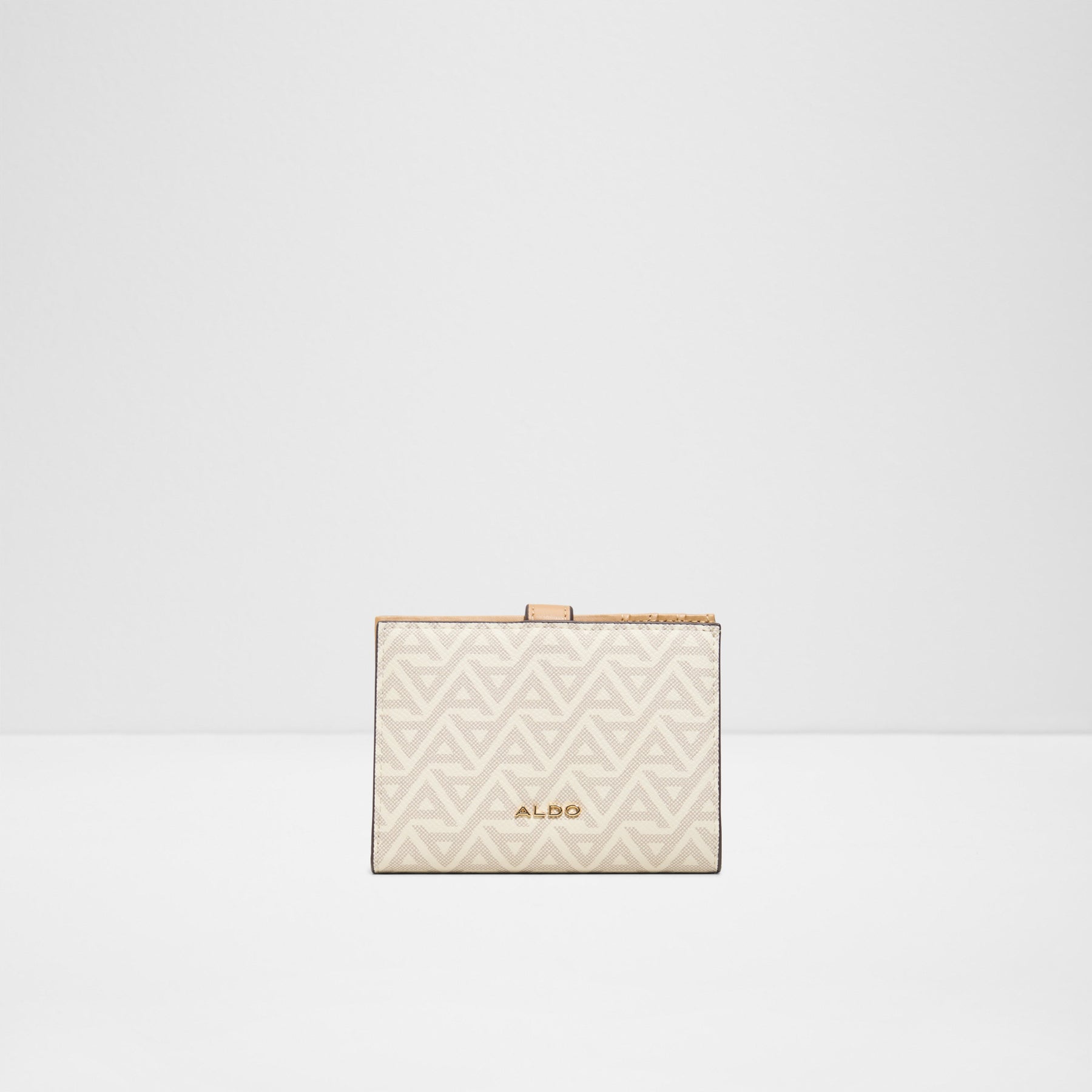 Carteira MERAESSI para mulher, em bege e com fecho magnético. Com bolsos para cartões e compartimento para moedas com fecho de correr.