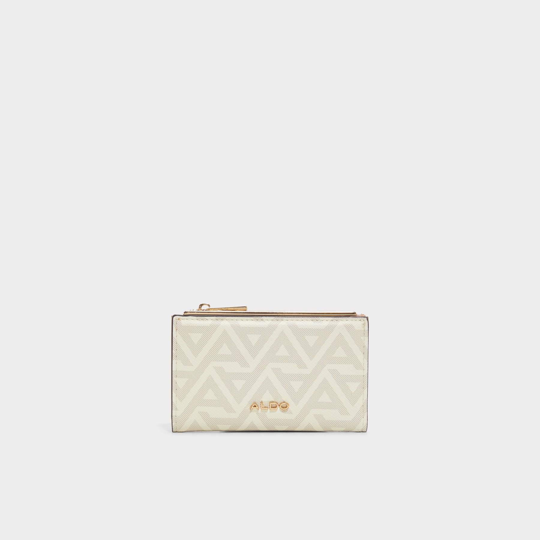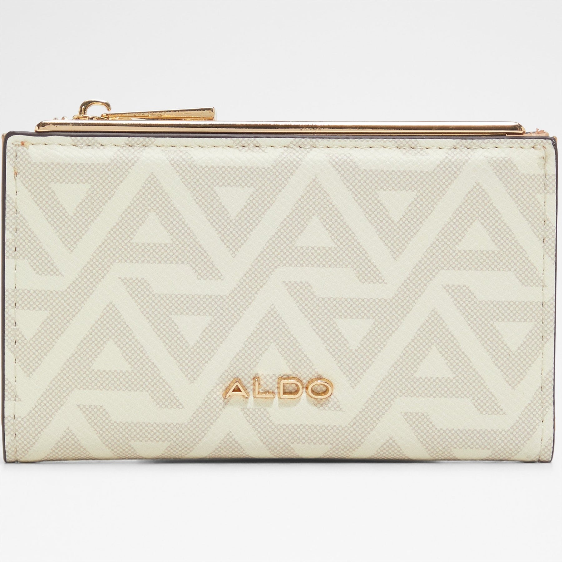 Carteira MERECLYA para mulher, em bege e com fecho de mola. Com bolsos para cartões e compartimento para moedas com fecho de correr. Com monograma ALDO estampado.