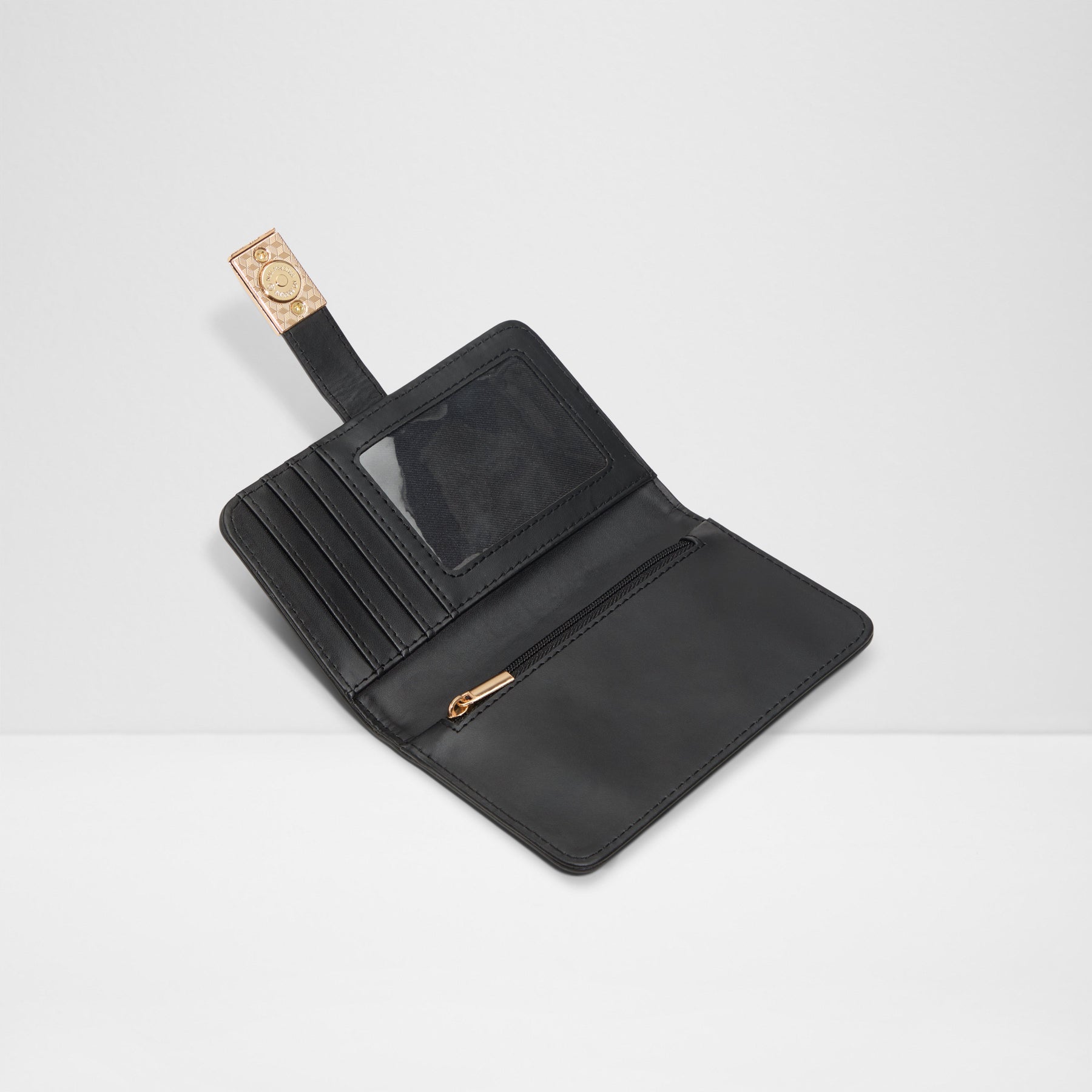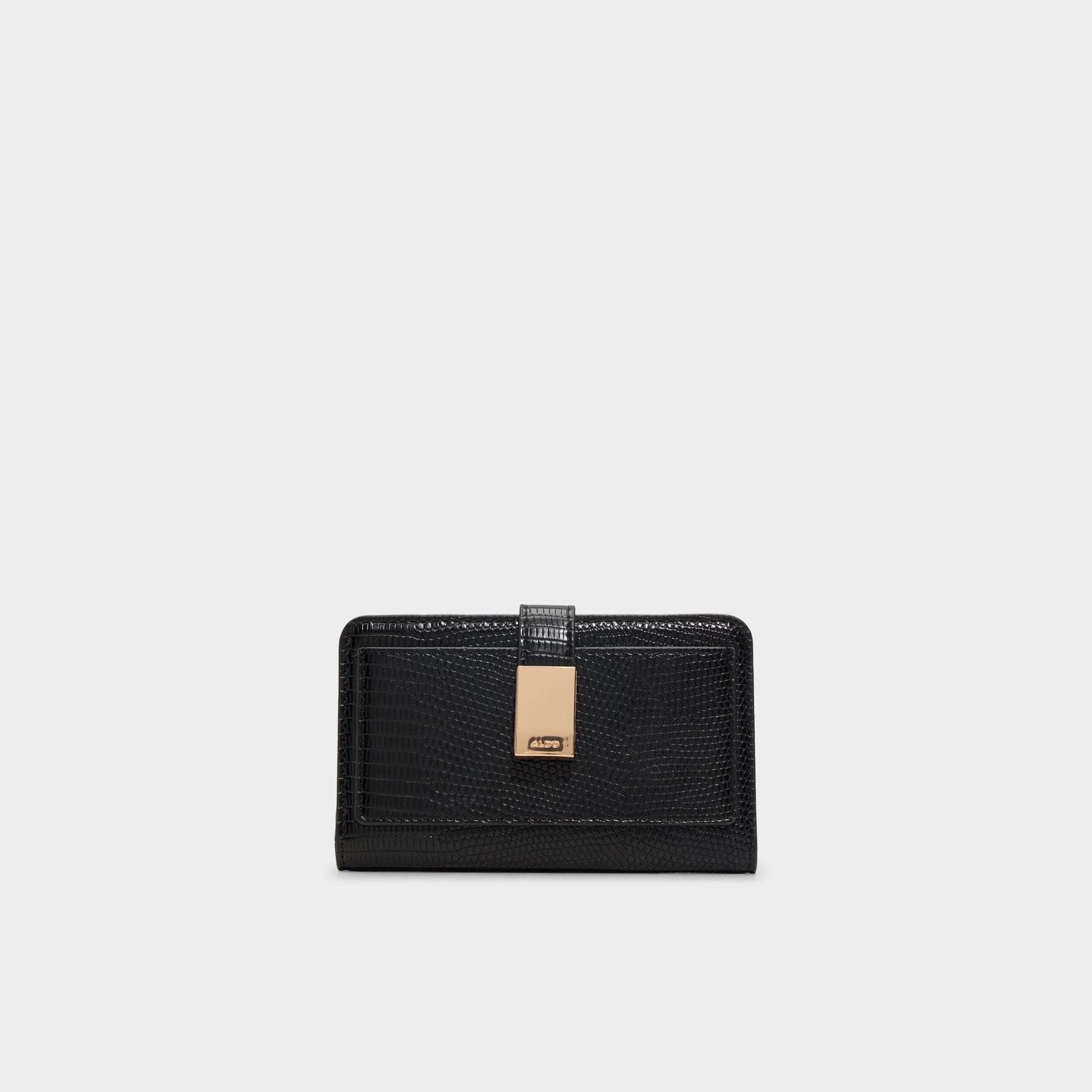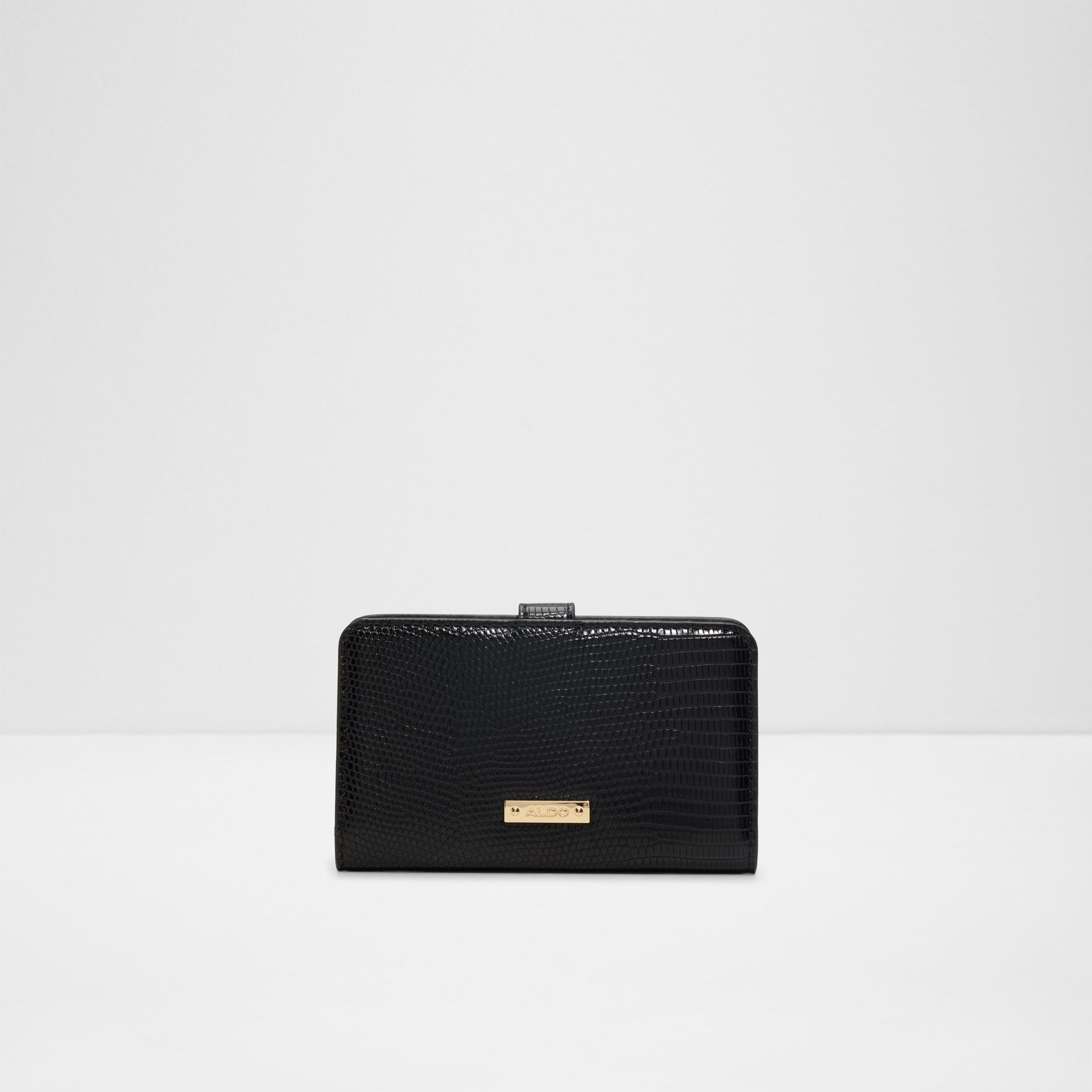 Carteira SANDGATE para mulher, em preto e com fecho magnético. Com bolsos para cartões e cartão de identificação e compartimento para moedas com fecho de correr. Com textura de pele animal.