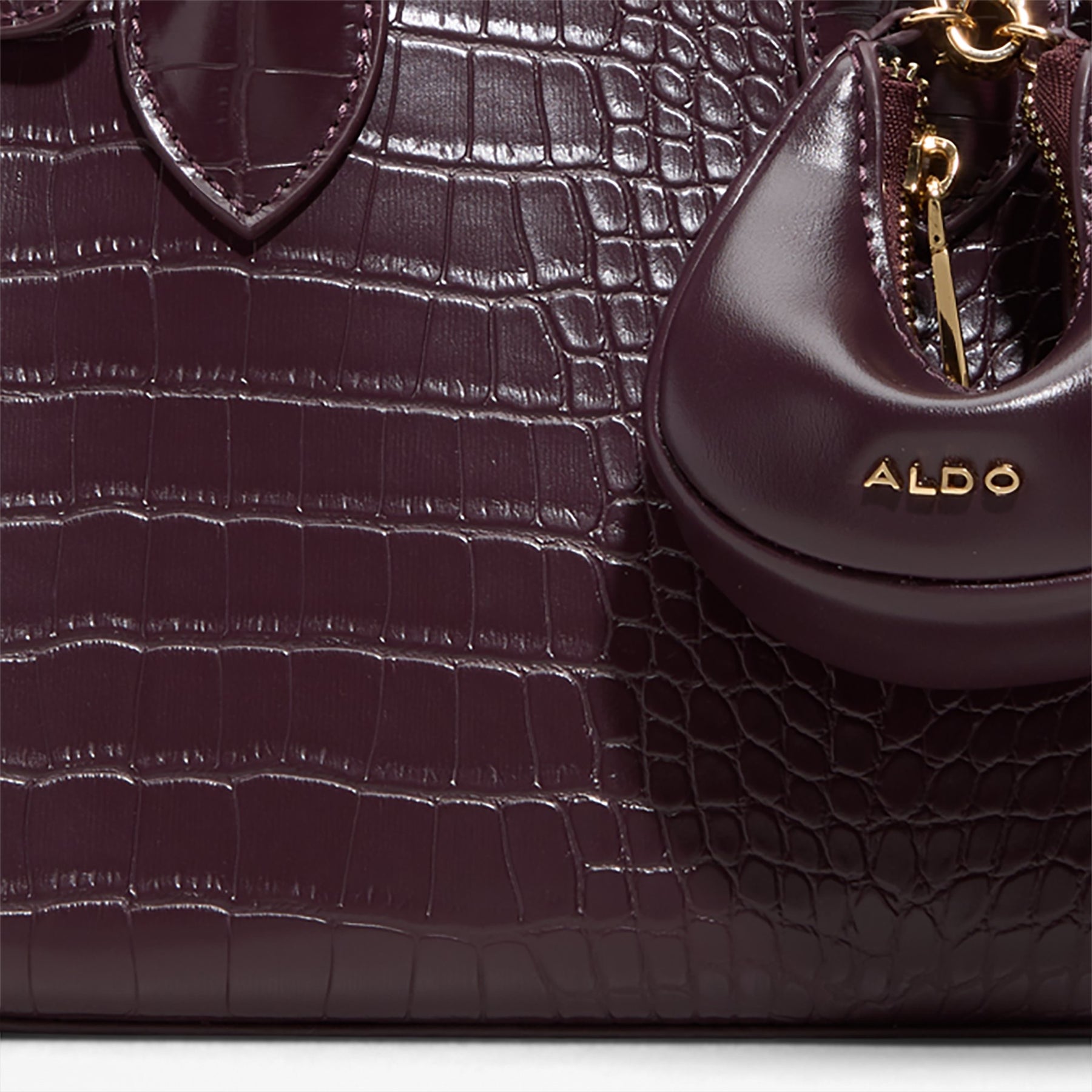 Mala de mão AURALIE para mulher, em bordô, com fecho de correr, alça curta e um acessório removível. Com uma alça extra para uso de tiracolo.