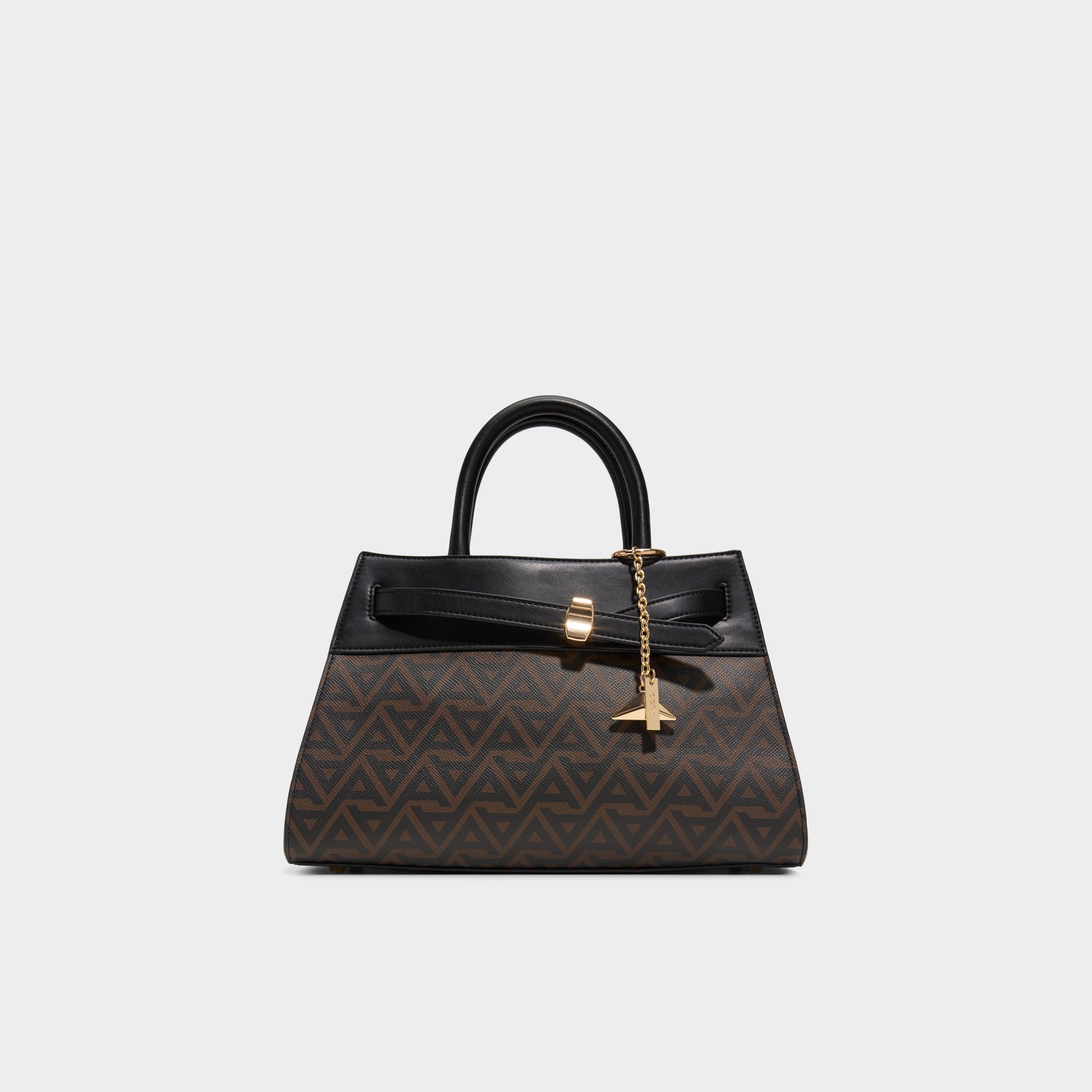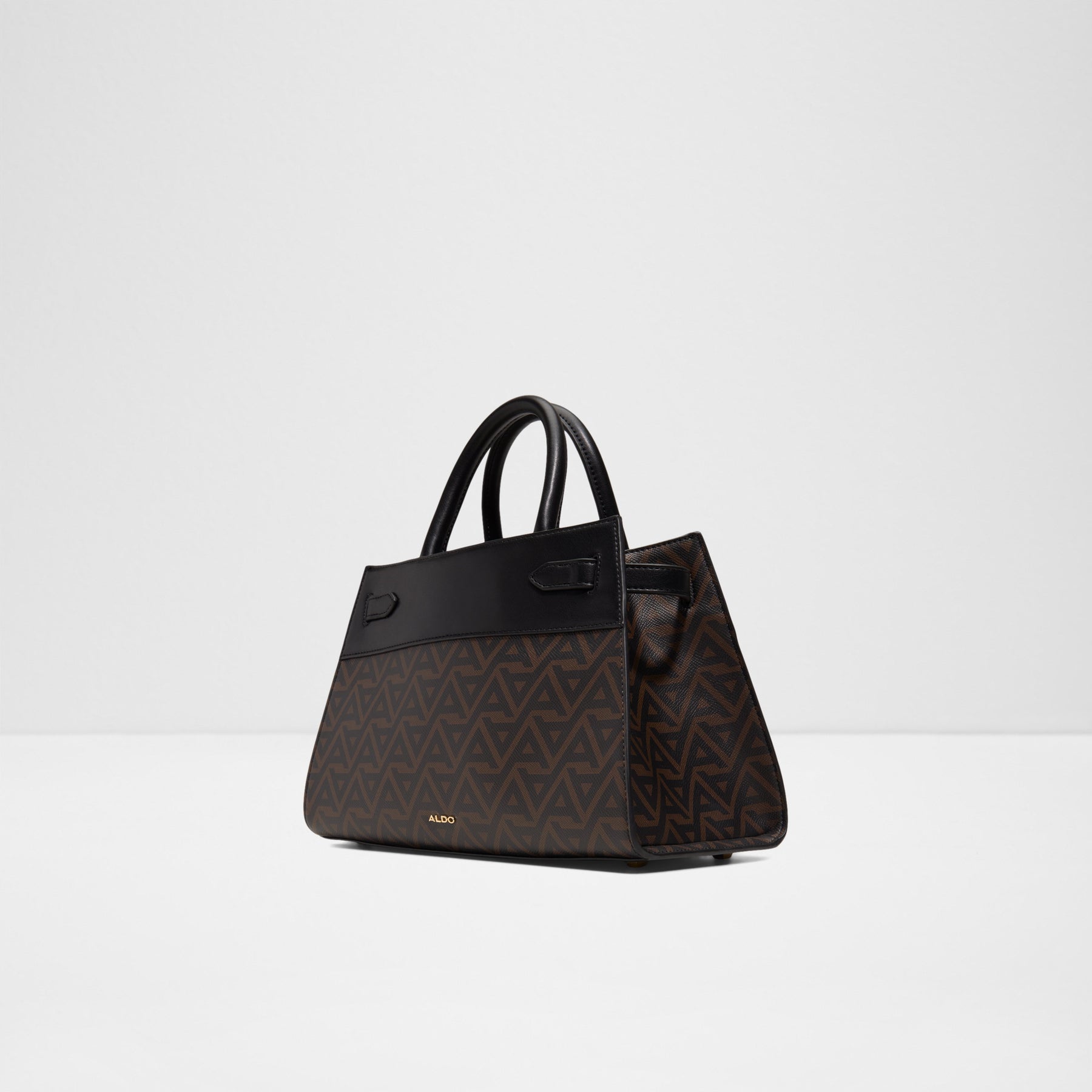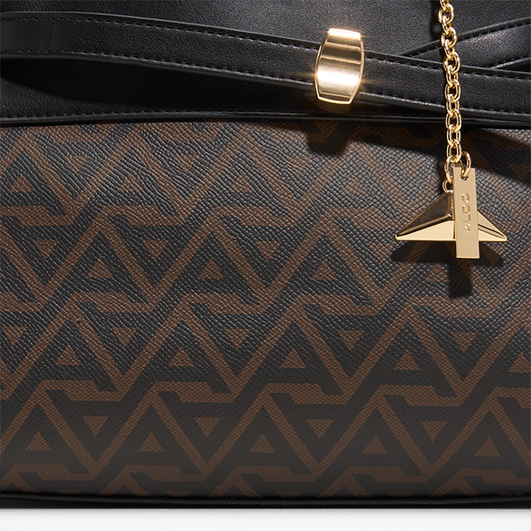 Mala de mão VASILIA para mulher, em castanho, com fecho de correr, alça curta e monograma ALDO estampado. Com uma alça extra para uso de tiracolo.