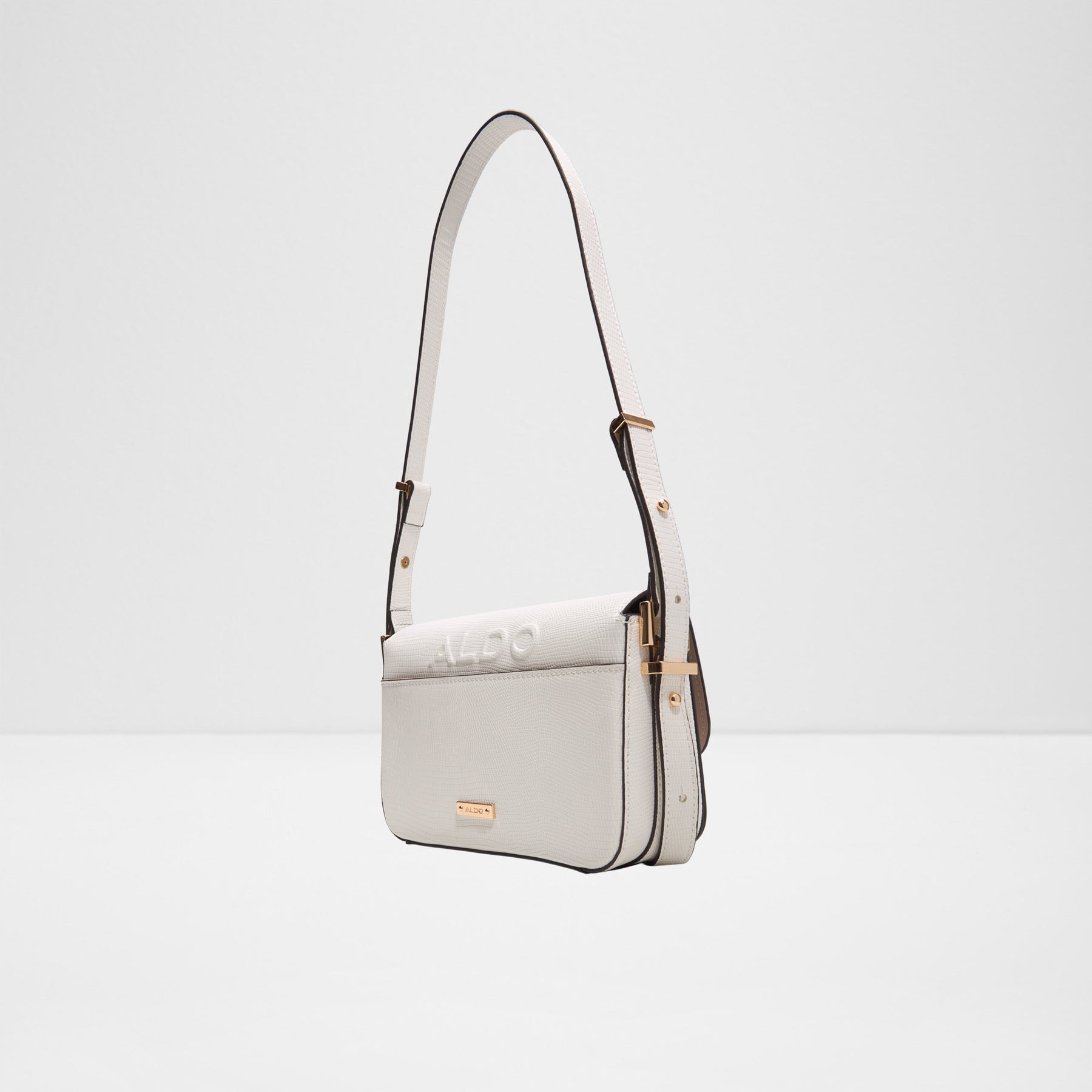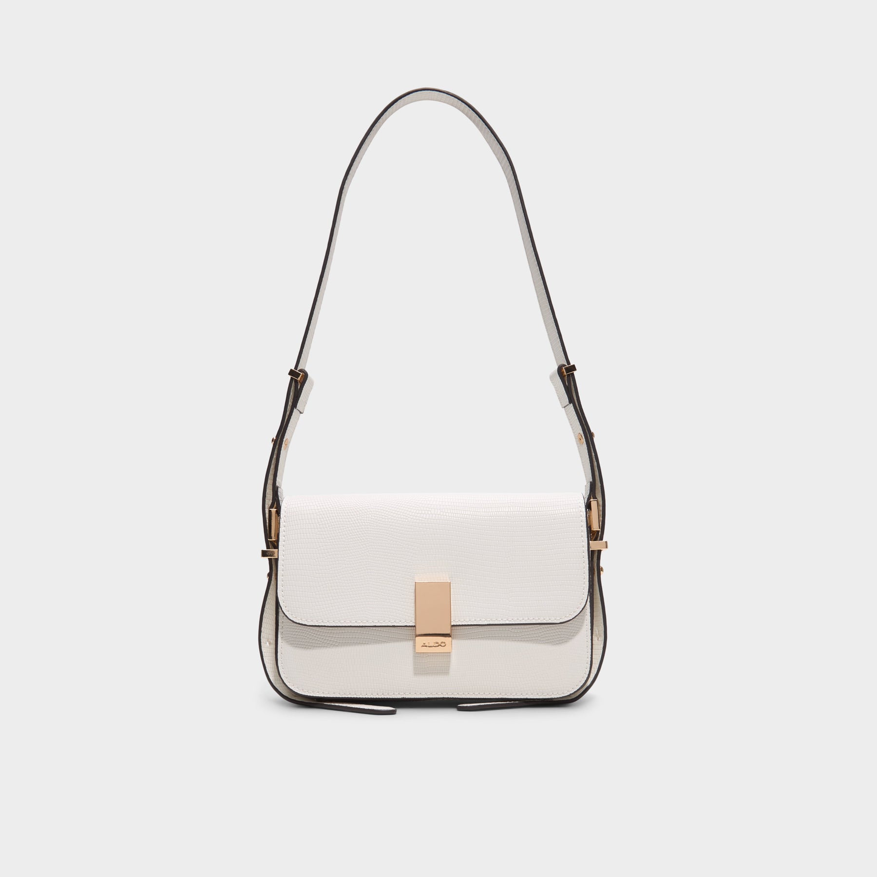 Mala de ombro ETEINI para mulher, em branco, com fecho magnético, alça e com uma alça regulável para uso de tiracolo. Com textura de pele animal.