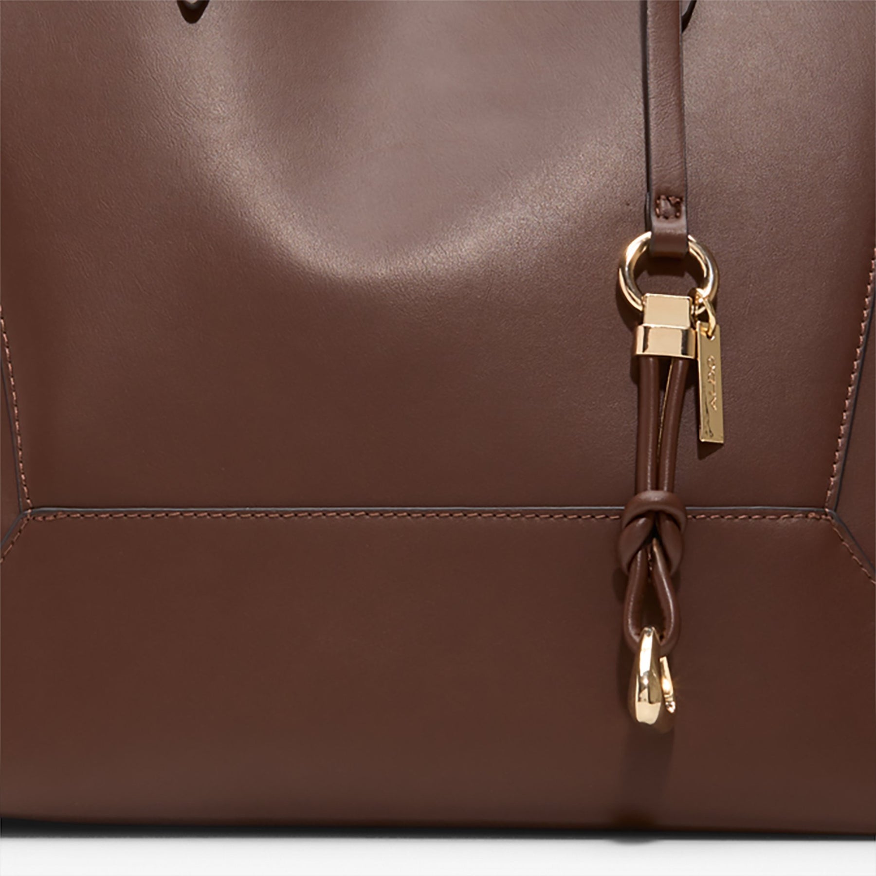Mala de ombro SALUBRIS para mulher, em castanho, com fecho magnético, alça média e uma bolsa extra removível.