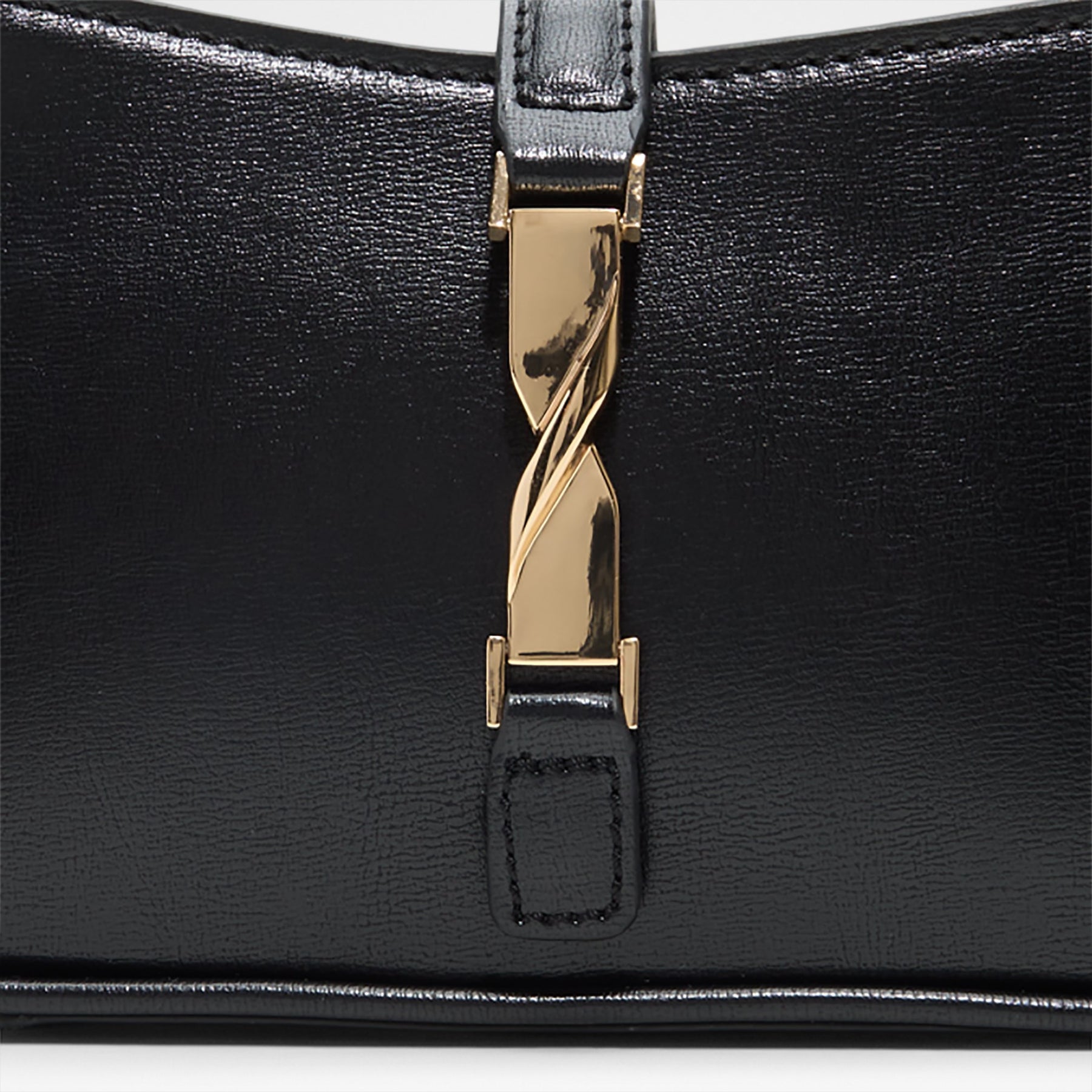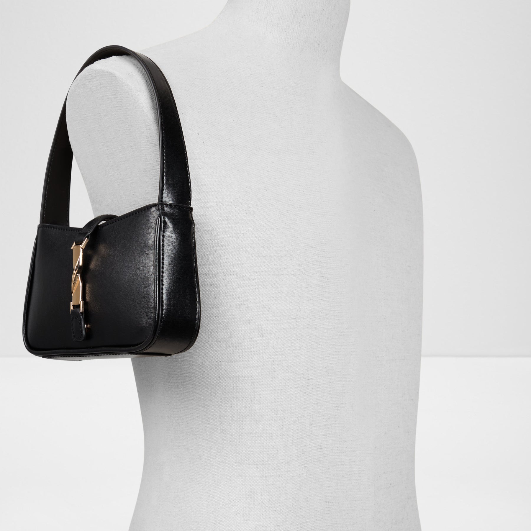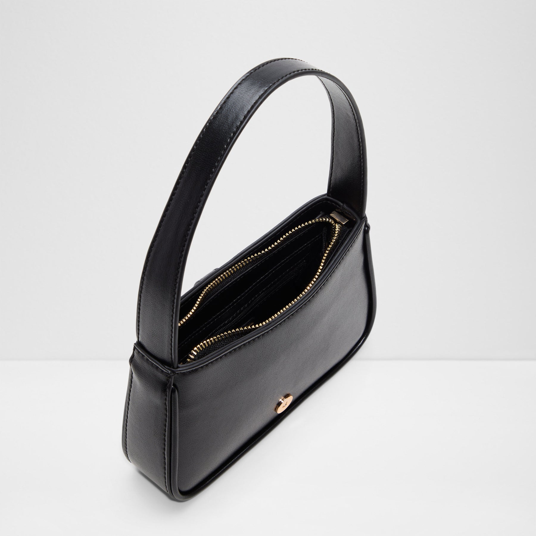 Mala de ombro ABRIELLE para mulher, em preto, com fecho de correr, alça média e um aplique metálico.