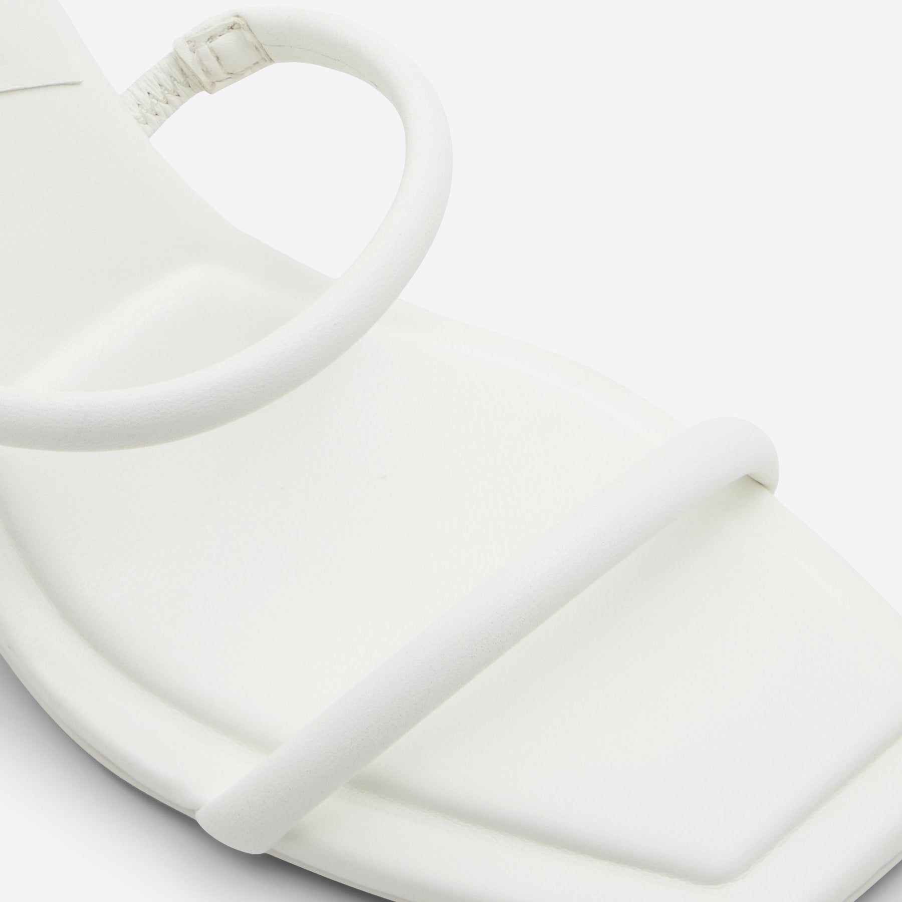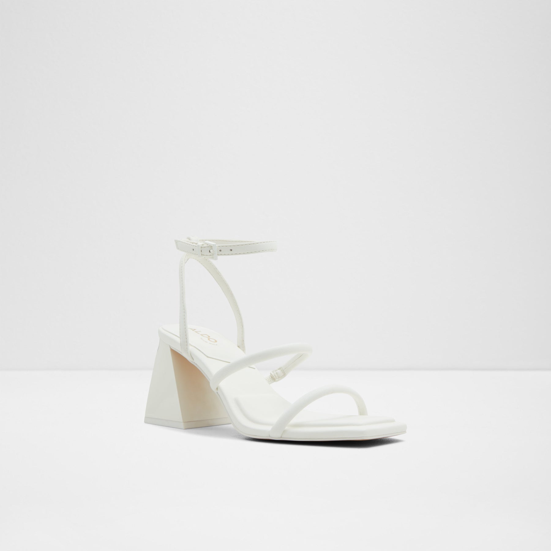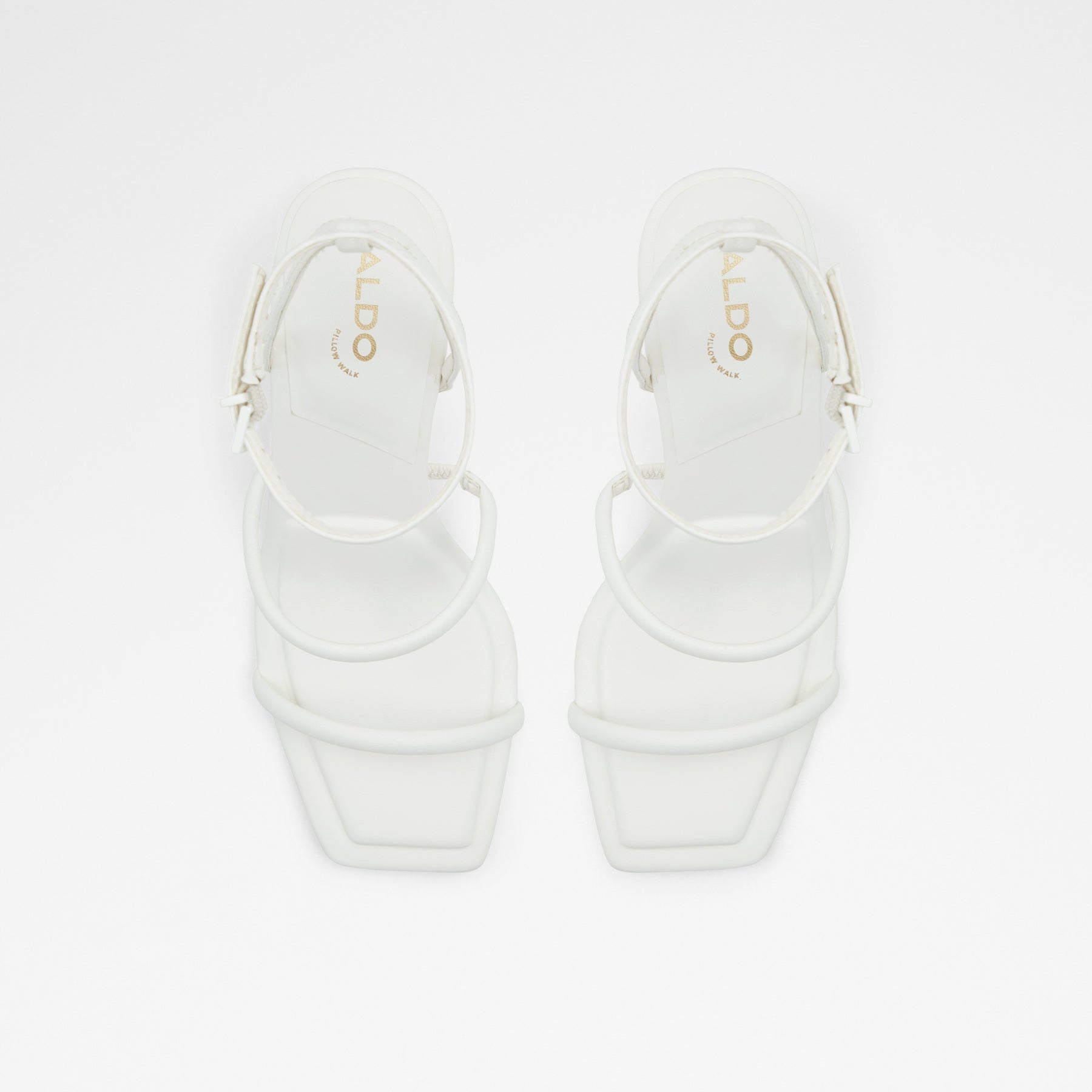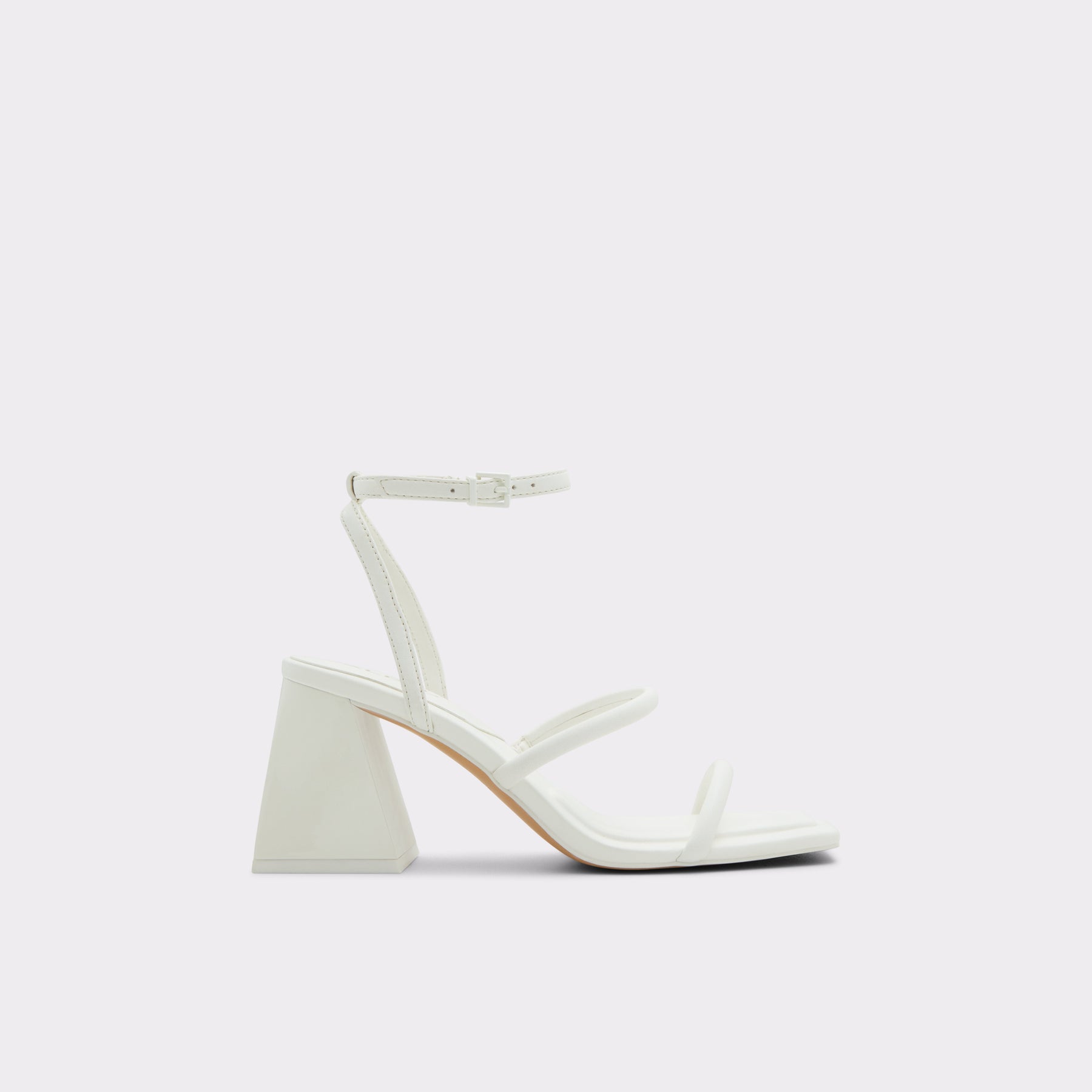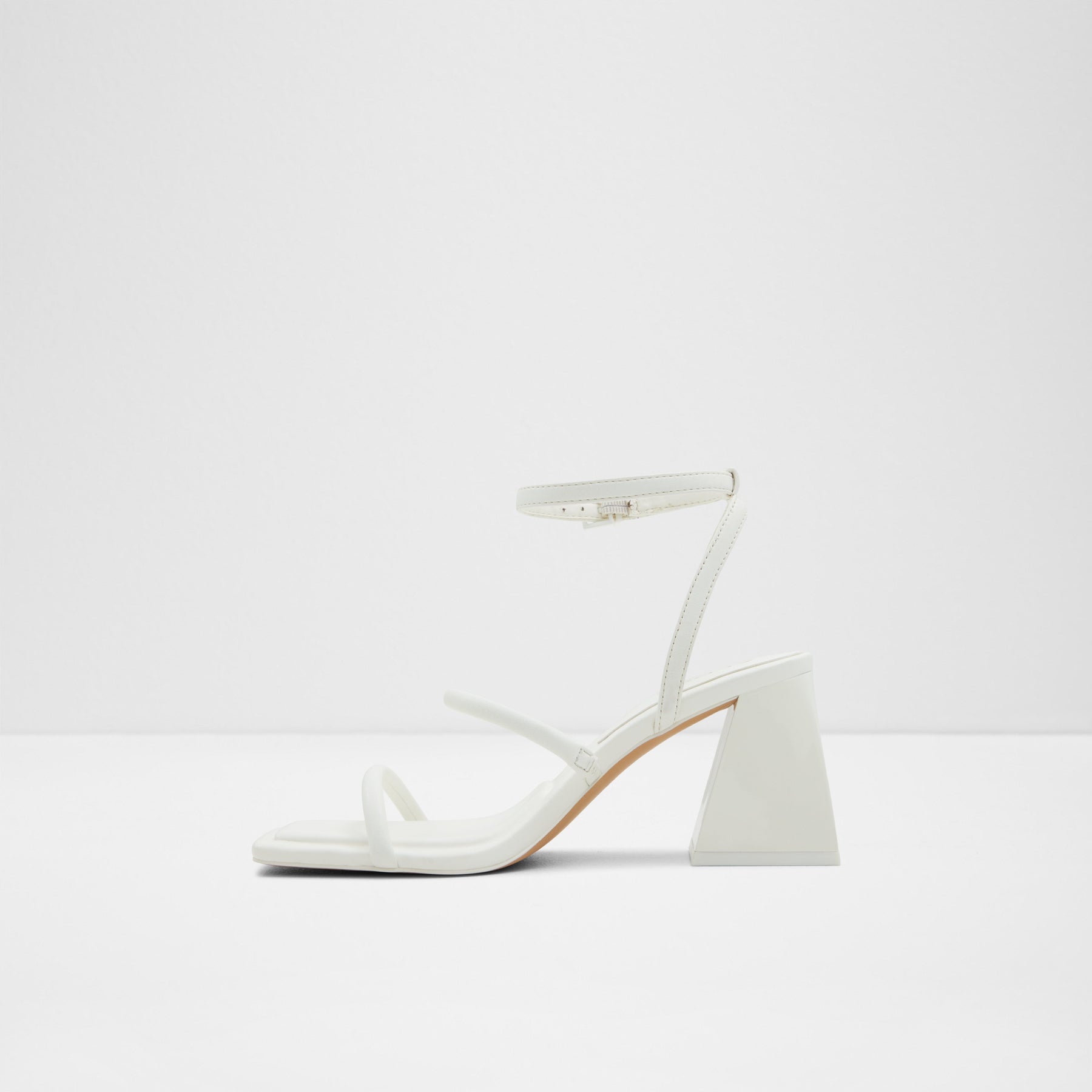 Sandálias MIRAN para mulher, em branco, de salto em bloco e com biqueira quadrada. Com fecho de fivela no tornozelo.