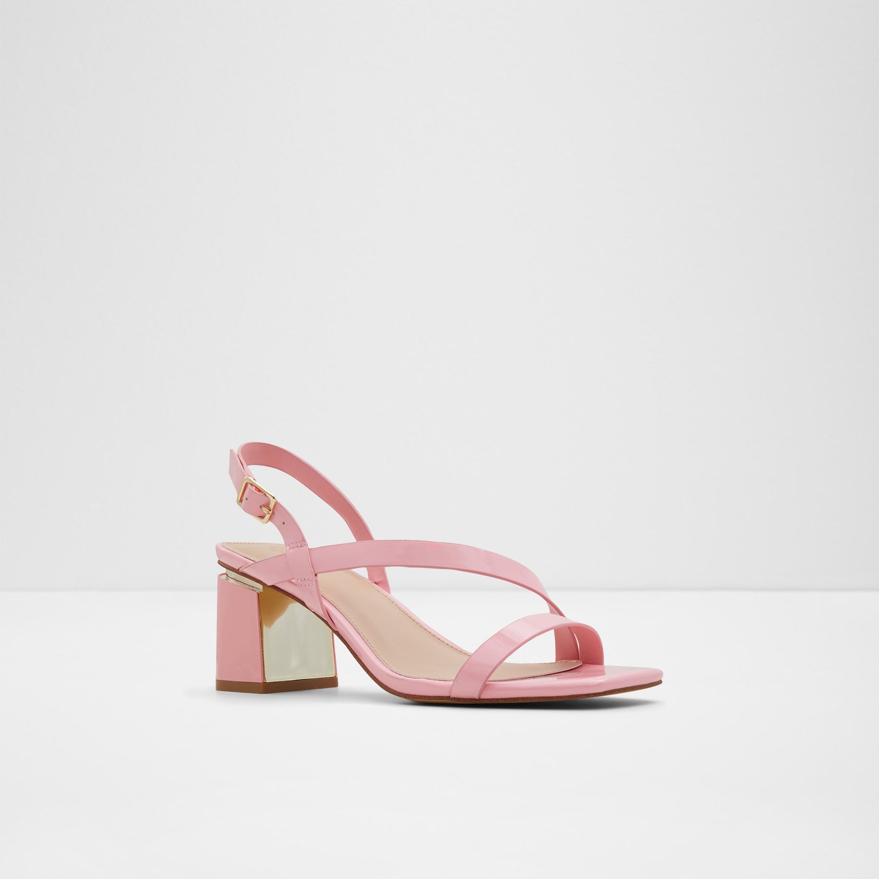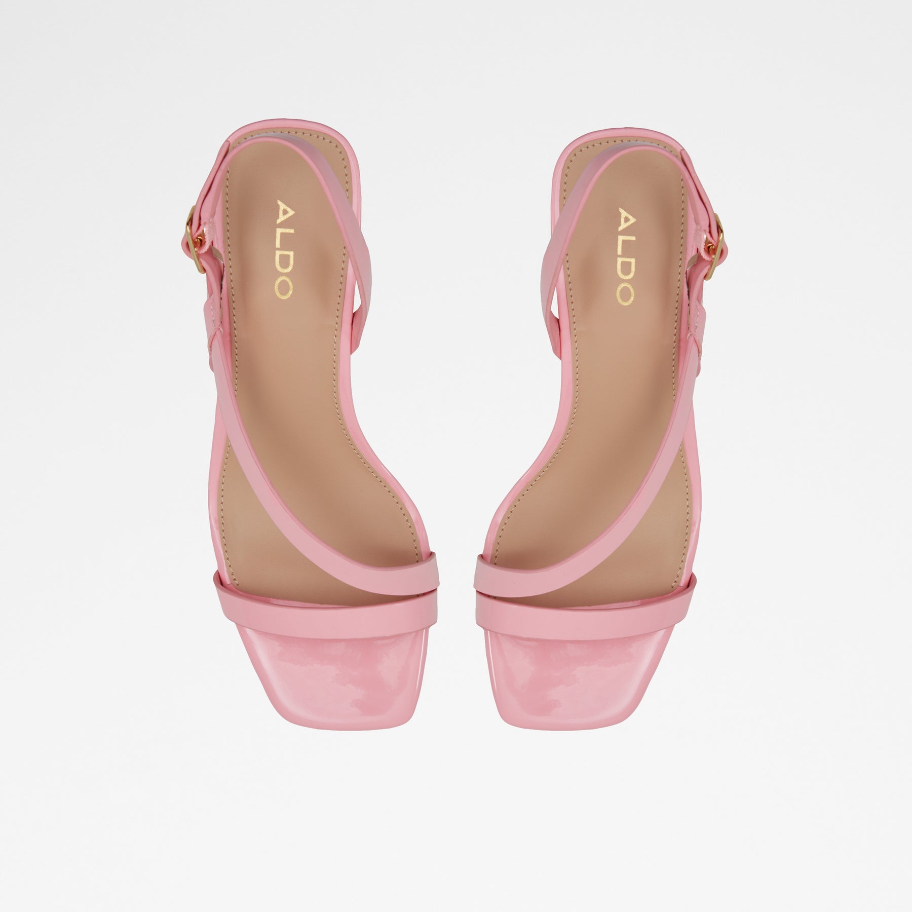 Sandálias SHENNA para mulher, em verniz rosa, de salto em bloco, com biqueira quadrada e um pormenor sofisticado no salto. Com fecho de fivela no tornozelo.