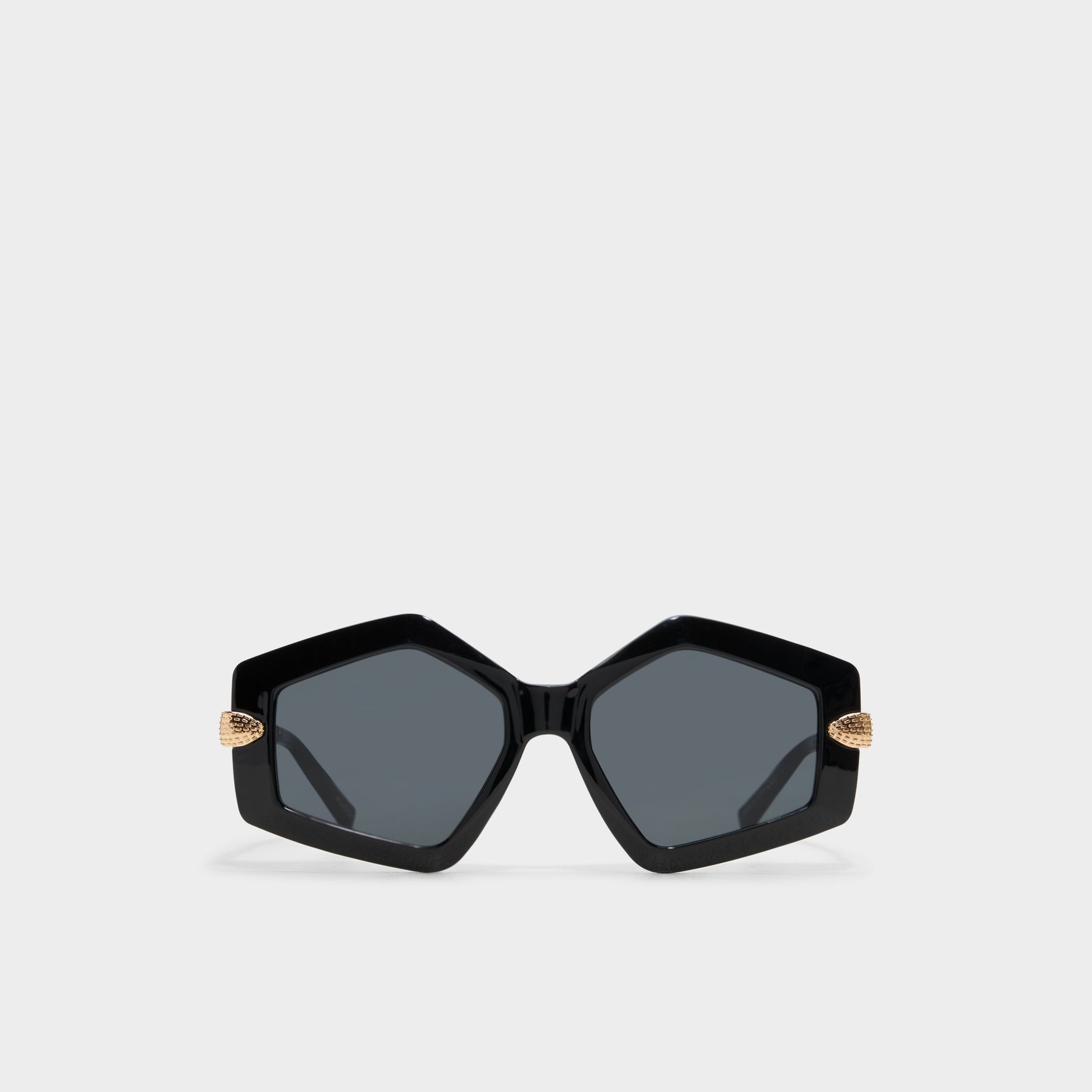 Óculos de sol BIWIA para mulher, com armação em massa em preto e lentes escurecidas. Com haste dourada em formato de serpente.