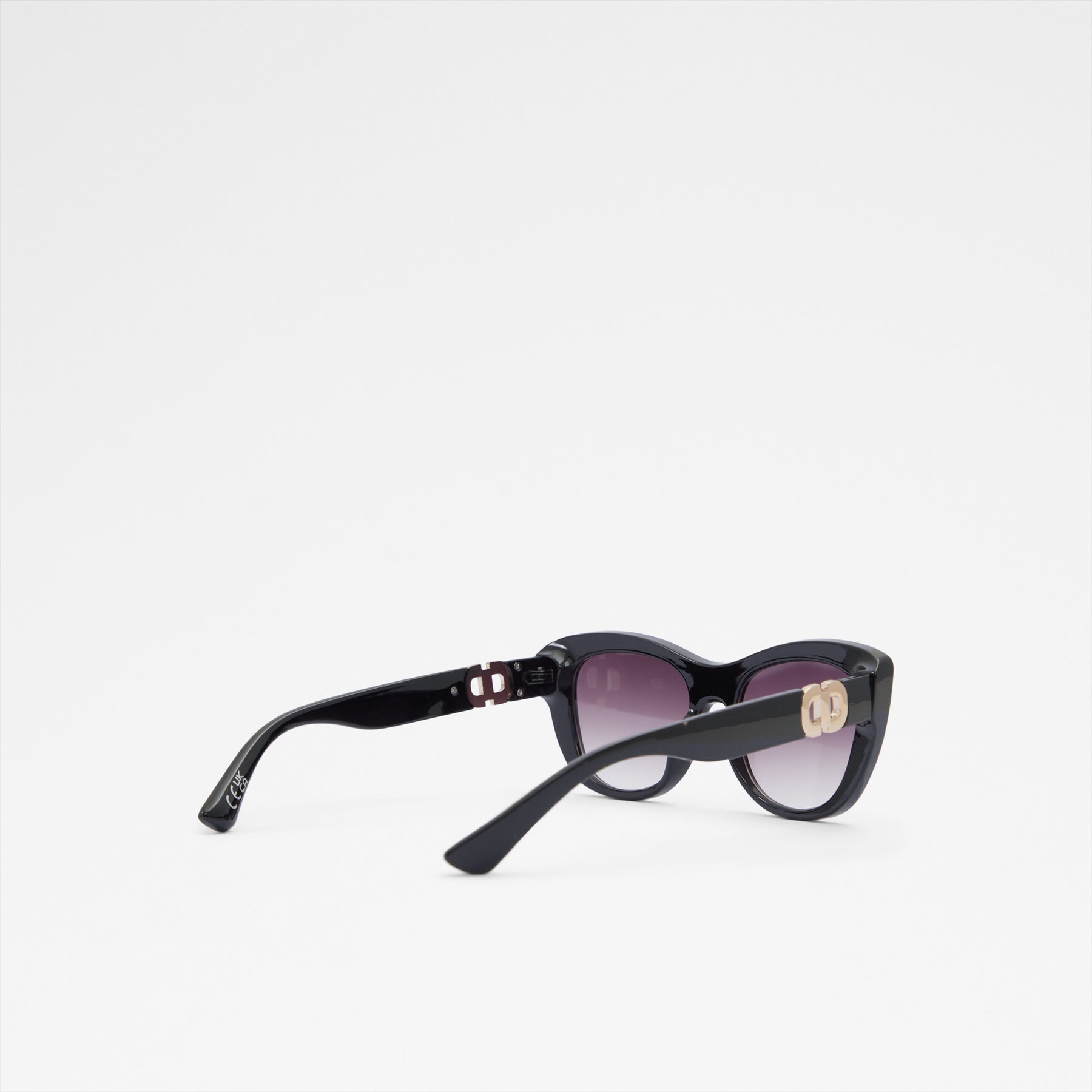Óculos de sol RAMZY para mulher, com armação em massa em preto e lentes escurecidas em degradê, com aplique metálico em dourado.