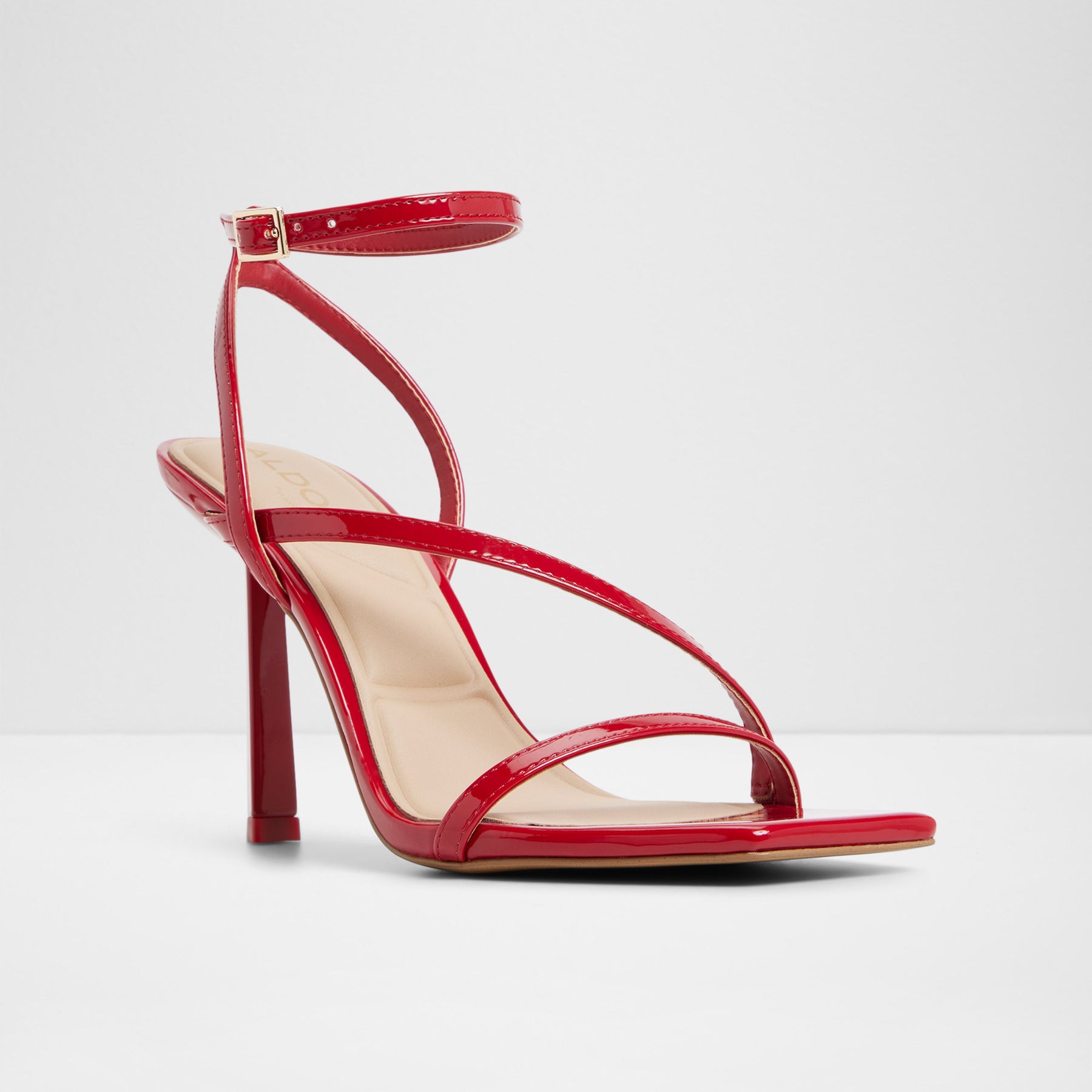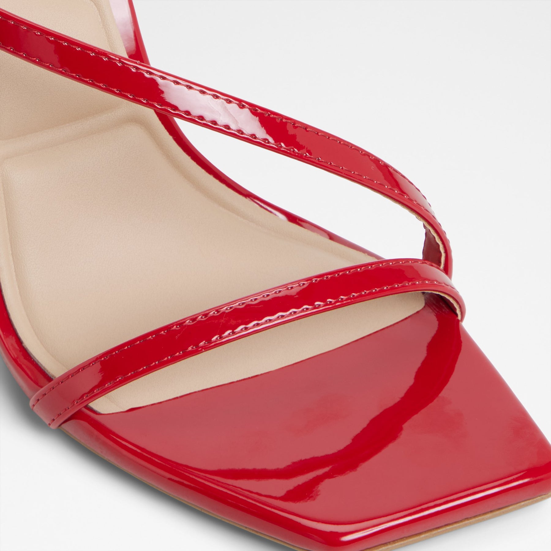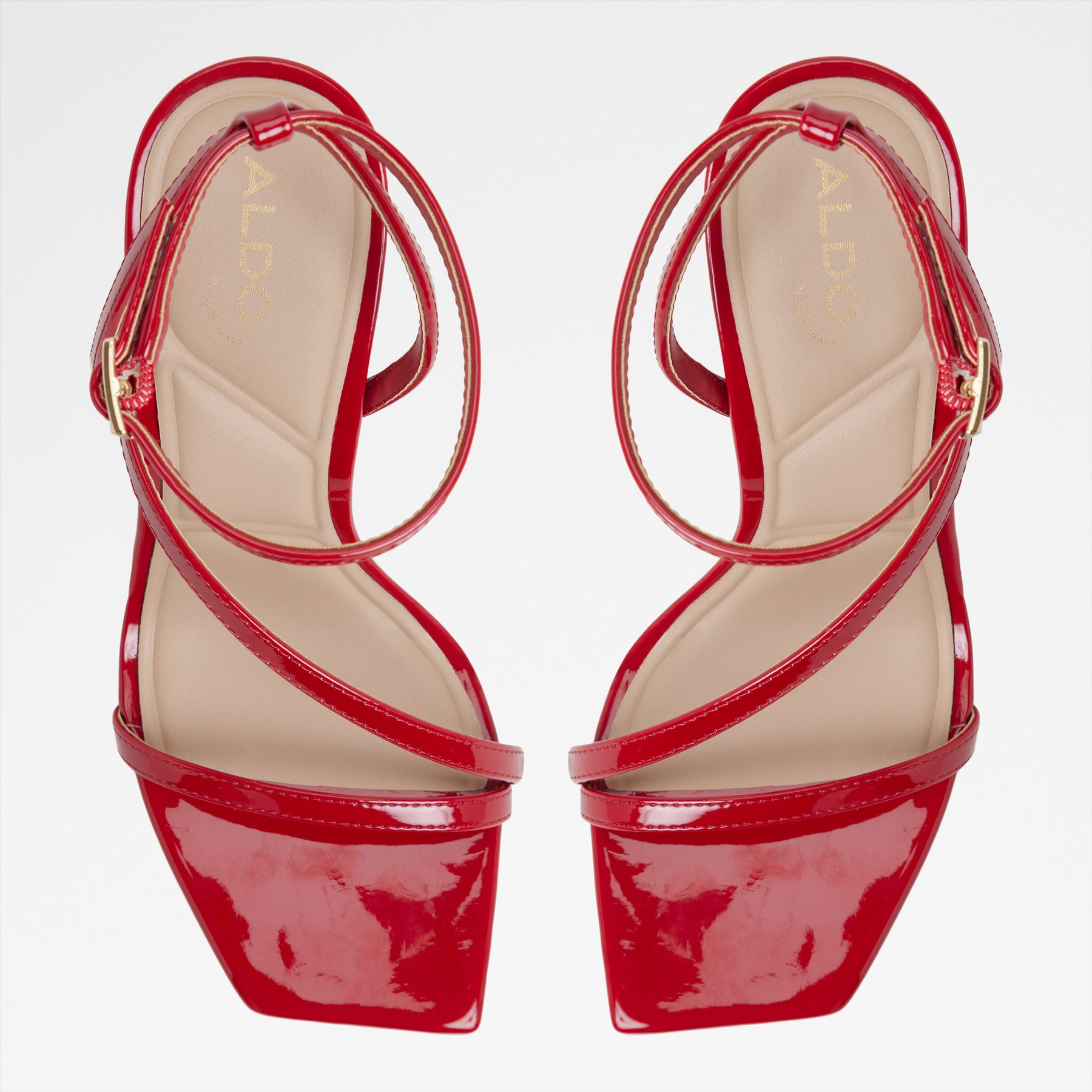 Sandálias SCINTILLA para mulher, em verniz vermelho, de salto fino e com biqueira quadrada. Com fecho de fivela no tornozelo.
