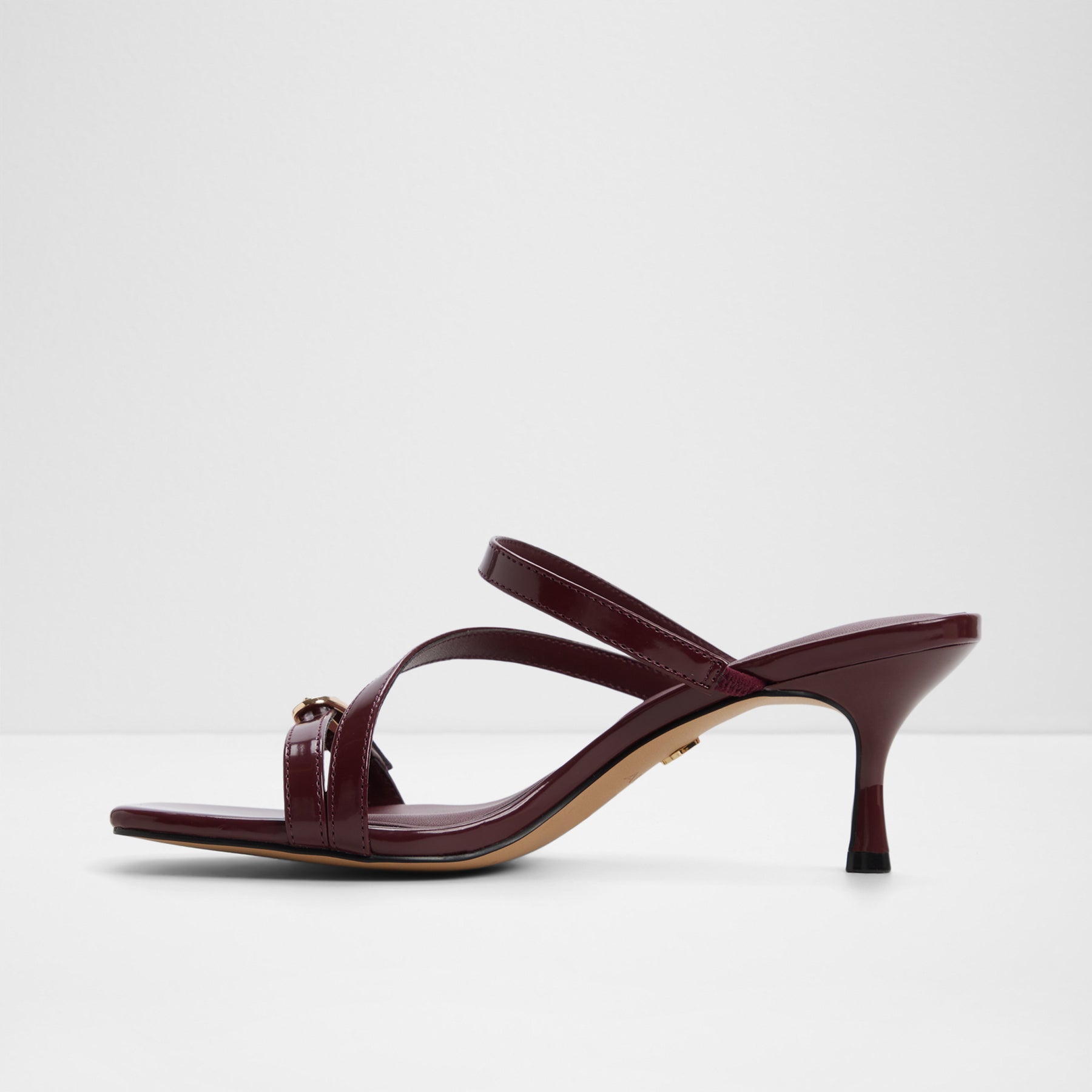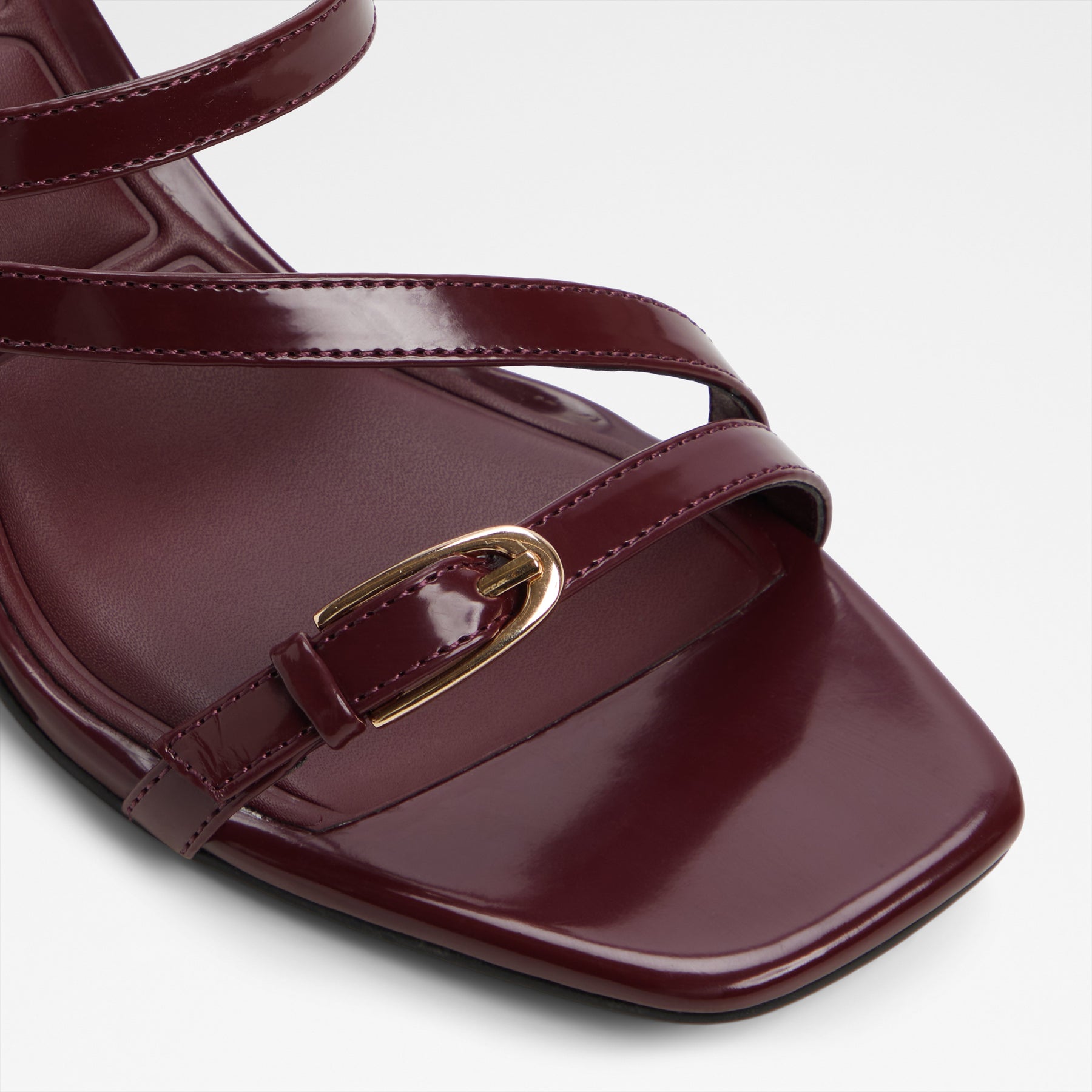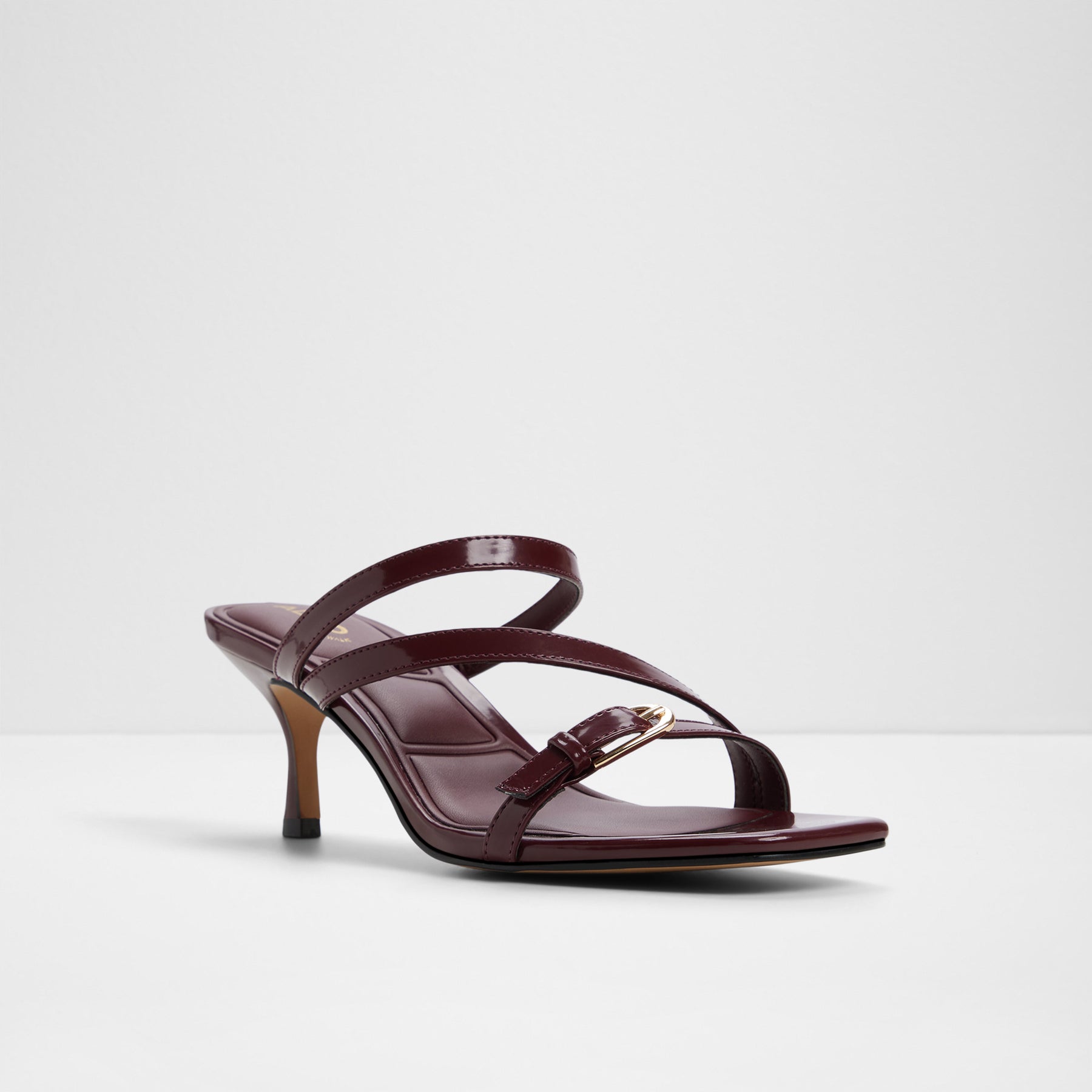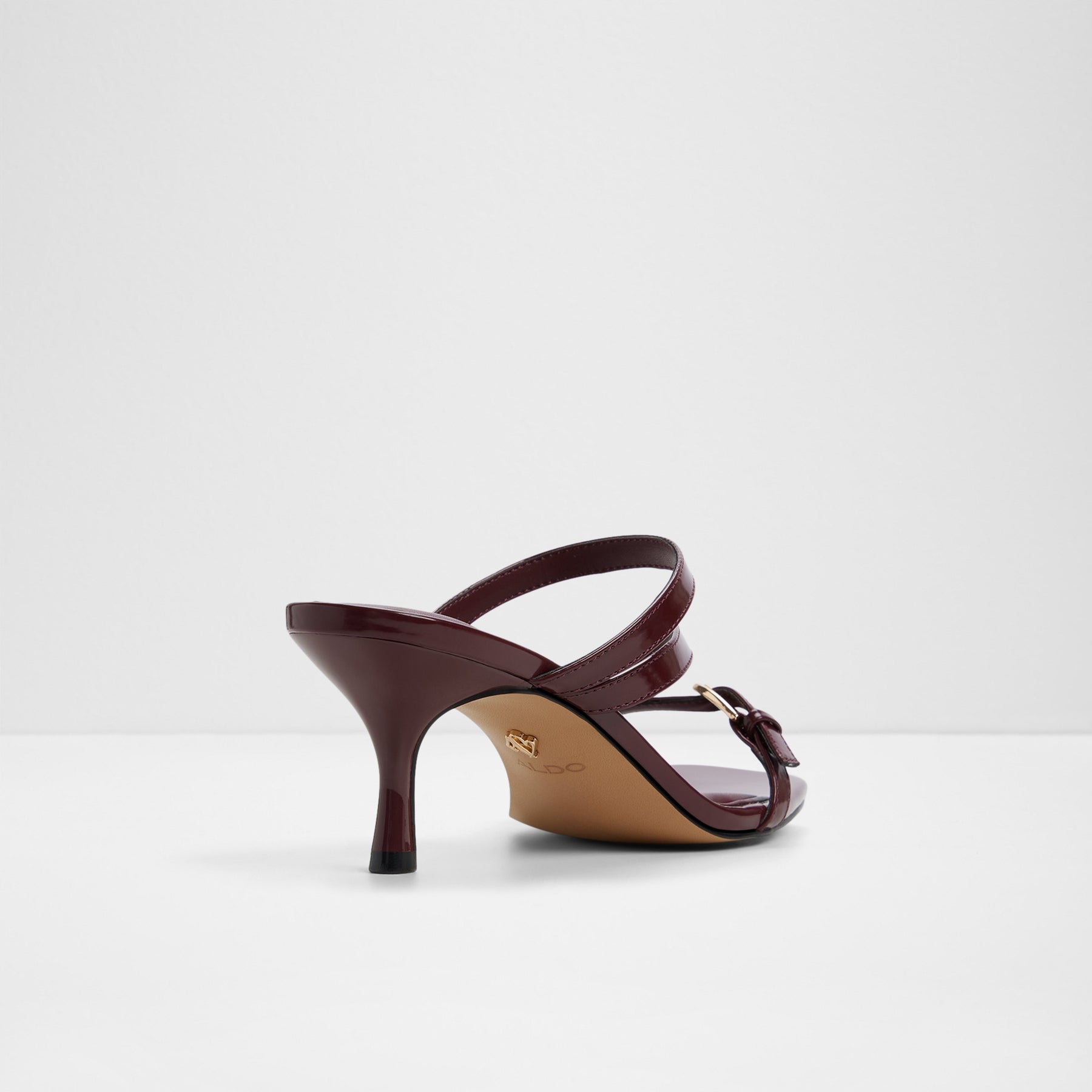 Sandálias CITYVERSE para mulher, em bordô, de salto fino, com biqueira quadrada e uma fivela decorativa.