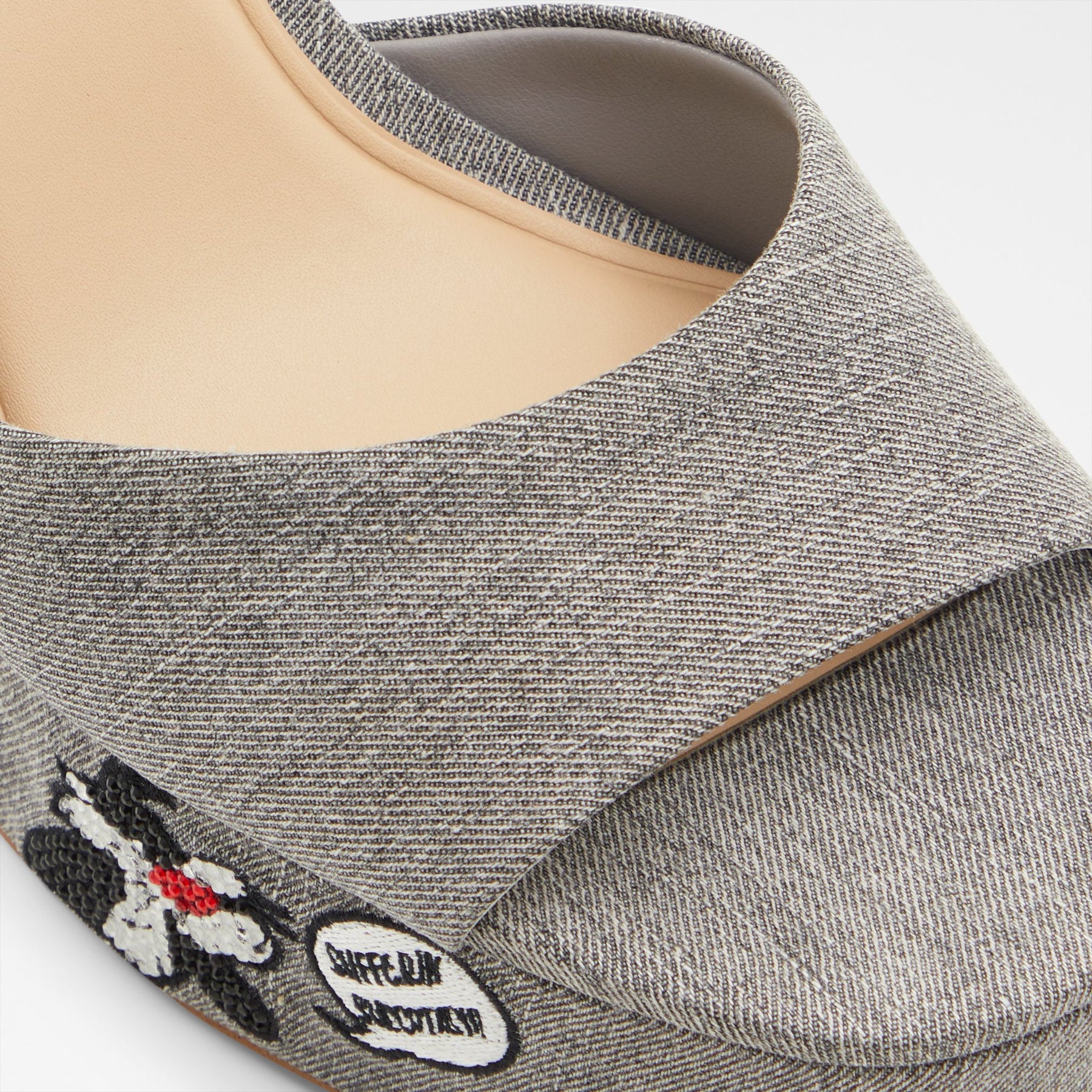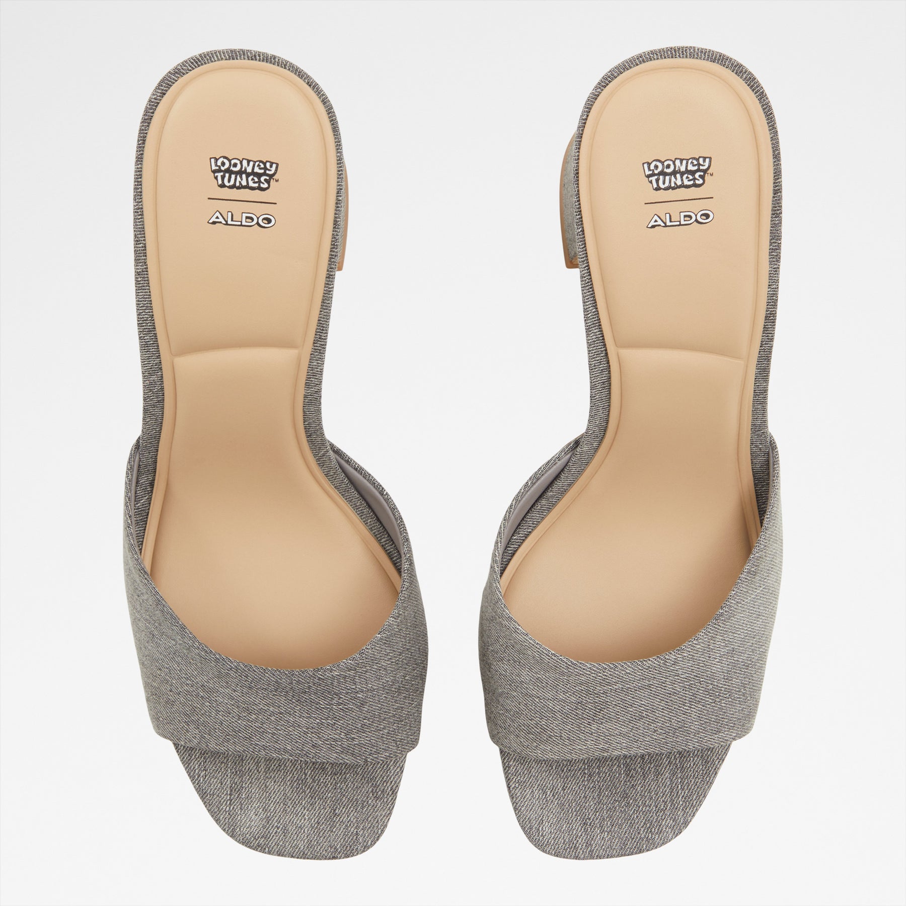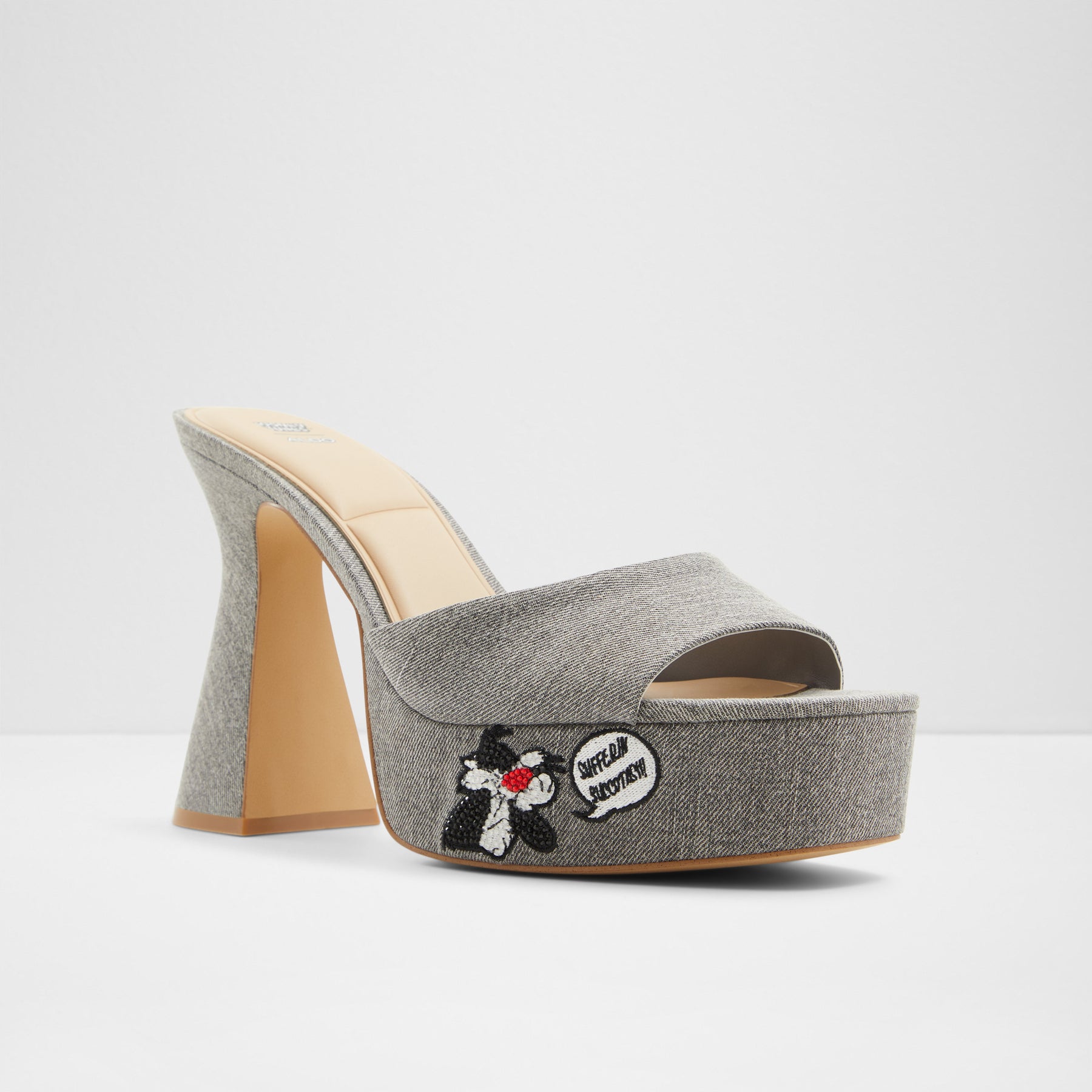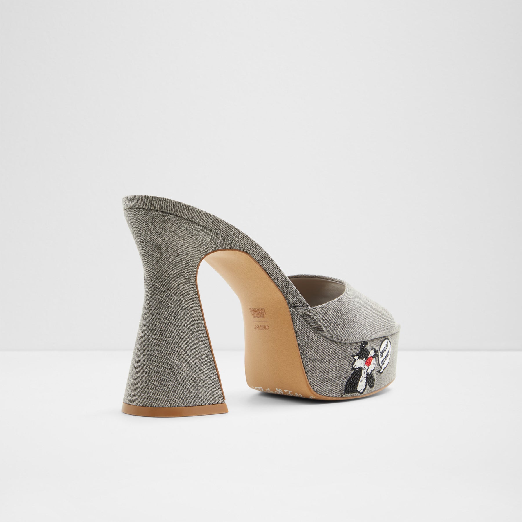 Sandálias LTPLATFORM para mulher, em cinzento, de salto em bloco com plataforma e com biqueira quadrada. Coleção exclusiva Looney Tunes x ALDO. Complete o seu look aqui.